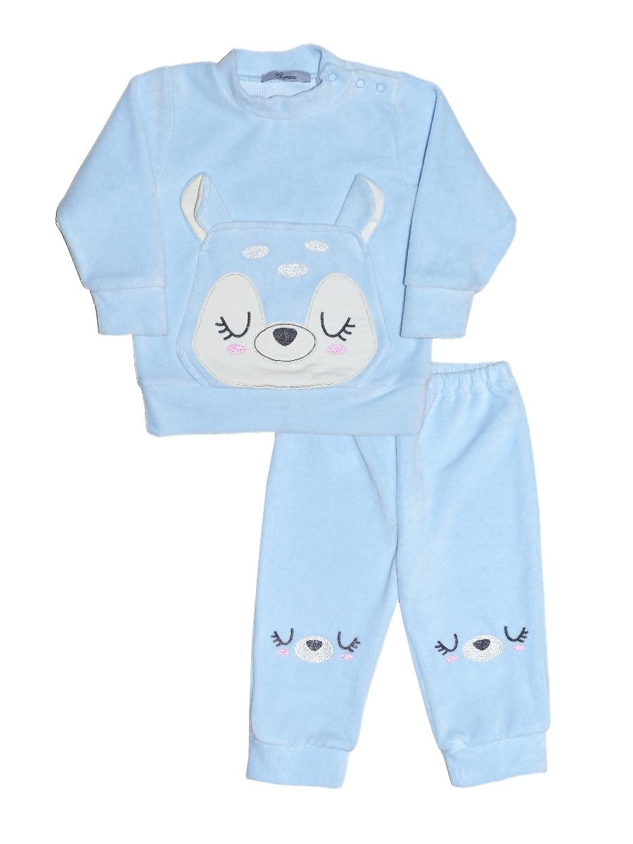 Костюм детский теплый из велюра ( 80% хлопок, 20% полиэстер) состоит из лонгслива и брюк на резинке. Модель с длинным рукавом на манжете и воротником-стойкой. На лонгсливе накладной карман с вышивкой-аппликацией. Застежка на кнопках существенно облегчает переодевание ребенка. В таком костюме малыш будет чувствовать себя свободно и комфортно