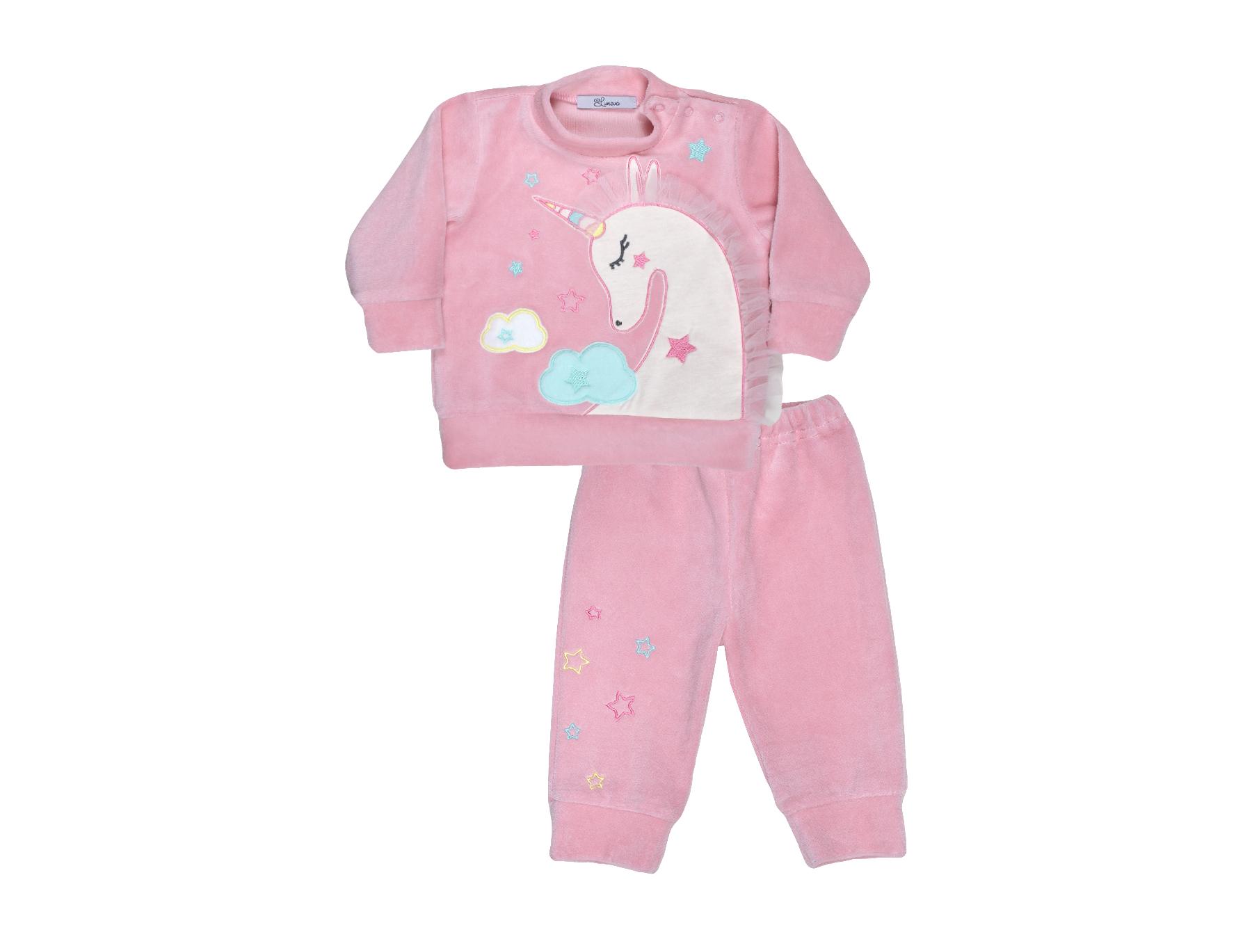 Костюм детский теплый из велюра ( 80% хлопок, 20% полиэстер) состоит из лонгслива и брюк на резинке. Лонгслив с длинным рукавом на манжете и воротником-стойкой. Модель декорирована оригинальным принтом с вышивкой-аппликацией. Застежка на кнопках существенно облегчает переодевание ребенка. В таком костюме малыш будет чувствовать себя свободно и комфортно.