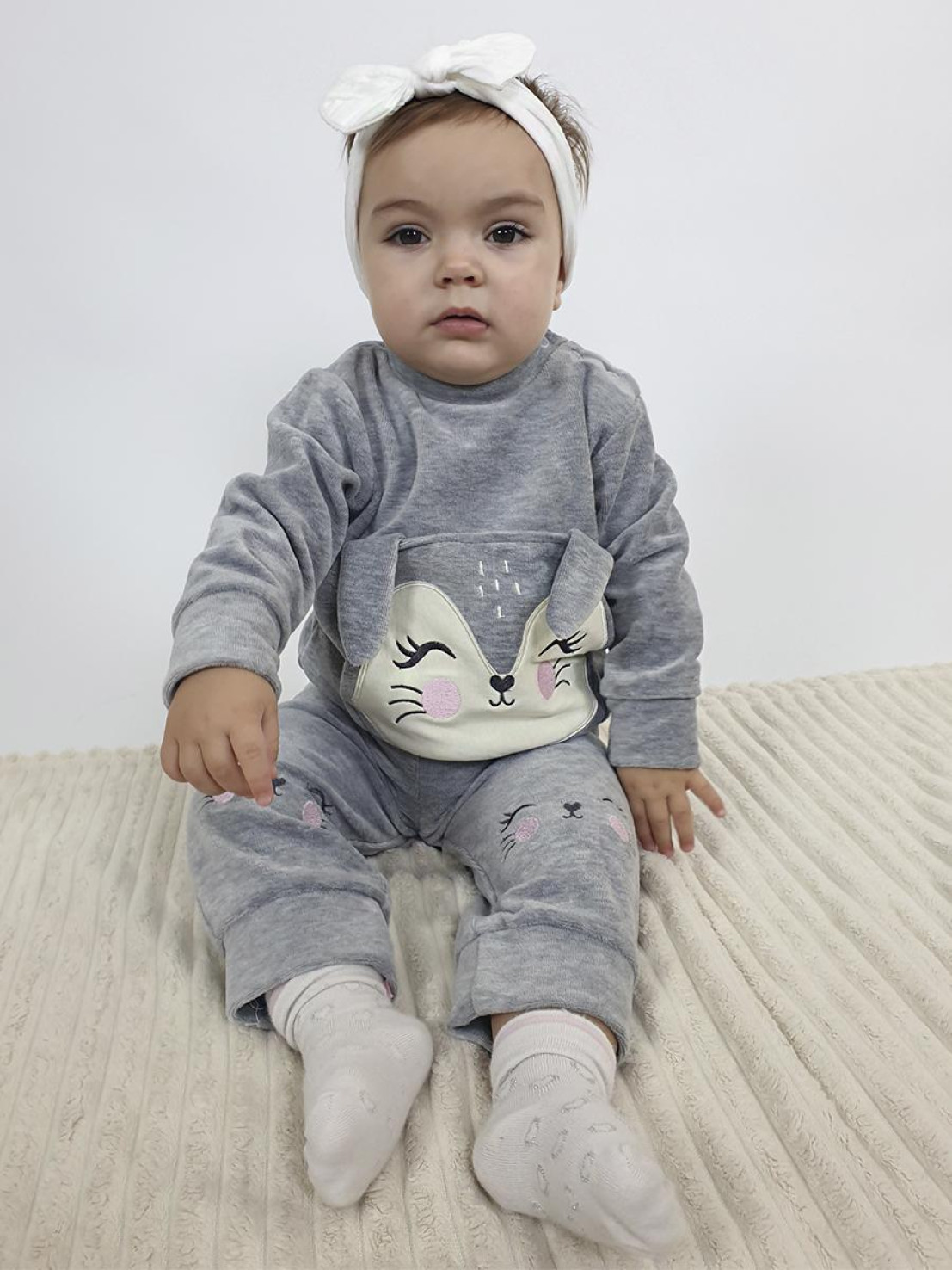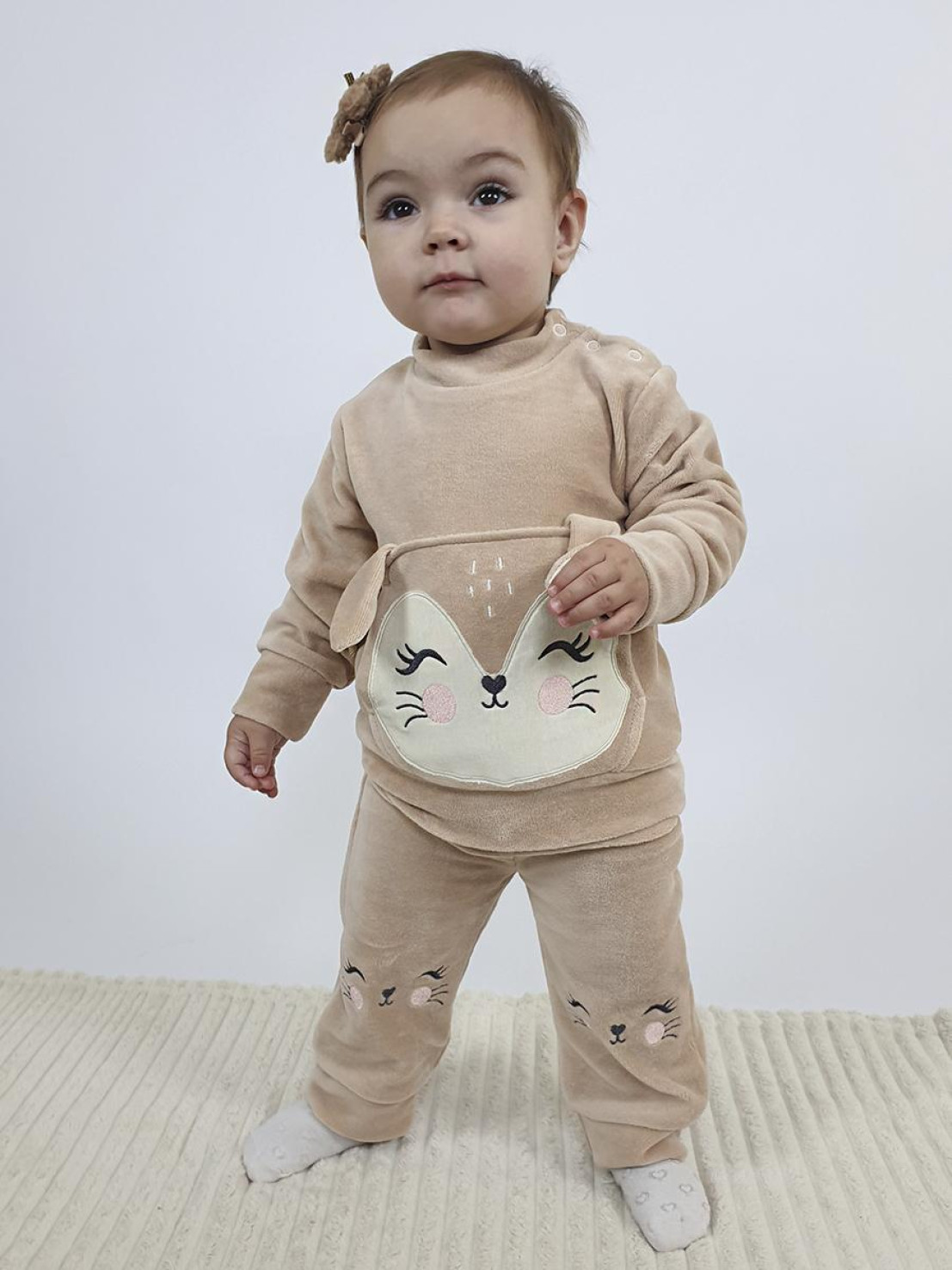 Костюм детский теплый из велюра ( 80% хлопок, 20% полиэстер) состоит из лонгслива и брюк на резинке. Модель с длинным рукавом на манжете и воротником-стойкой. На лонгсливе накладной карман с вышивкой-аппликацией. Застежка на кнопках существенно облегчает переодевание ребенка. В таком костюме малыш будет чувствовать себя свободно и комфортно.
