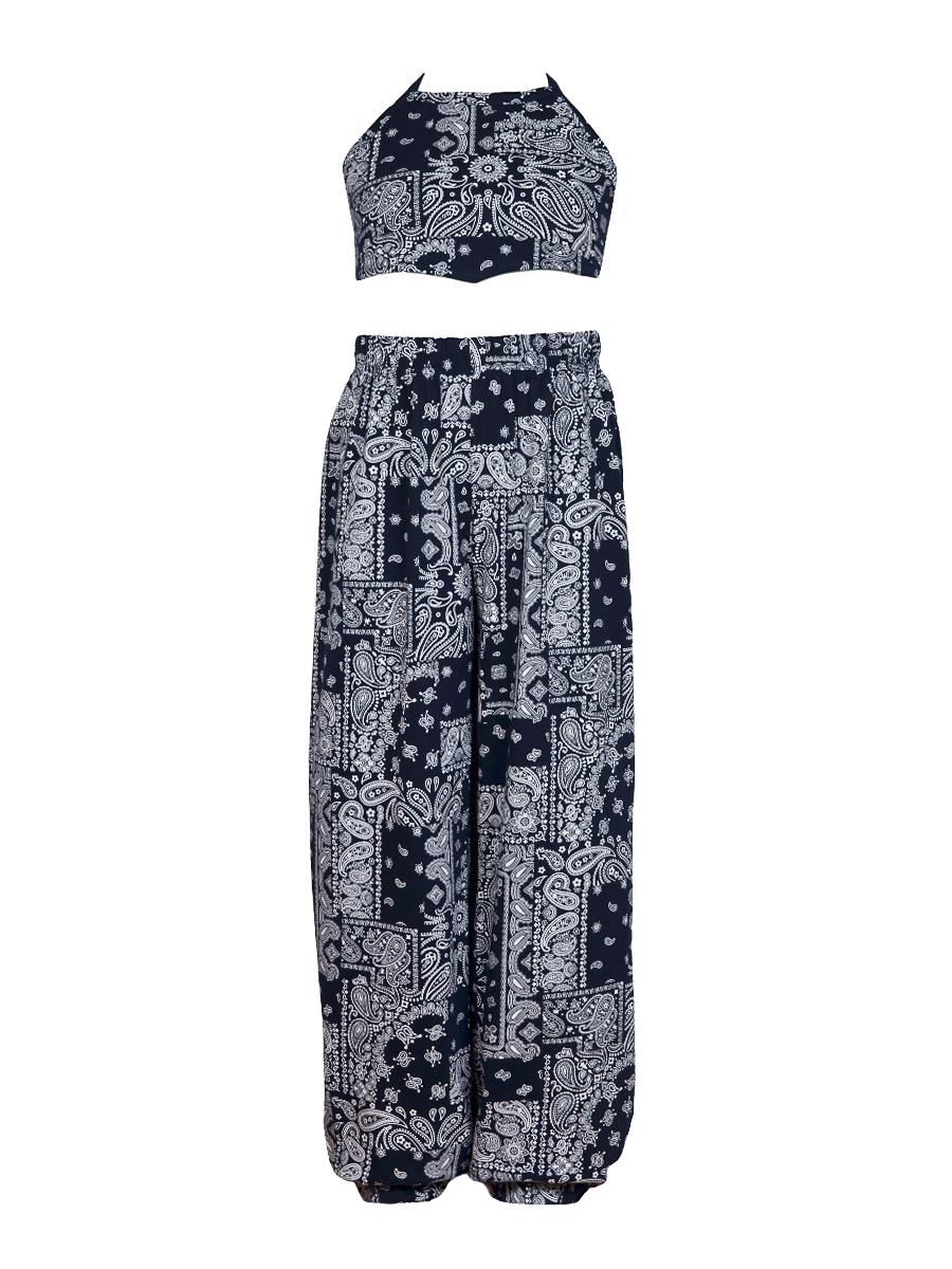 Комплект для девочки. Кулирное полотно(набивка): 100% х/б. Джемпер(топ)-на лямках,без рукава,завязан на спинке.Горловина,пройма-окантованы. Брюки-длинные,свободной формы,верх и низ на резинке.
