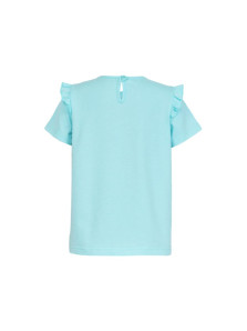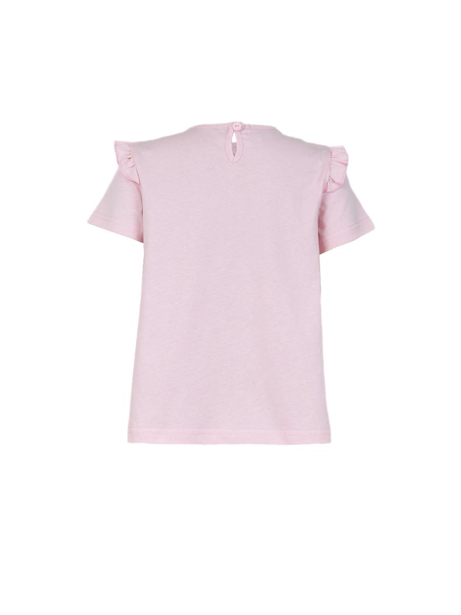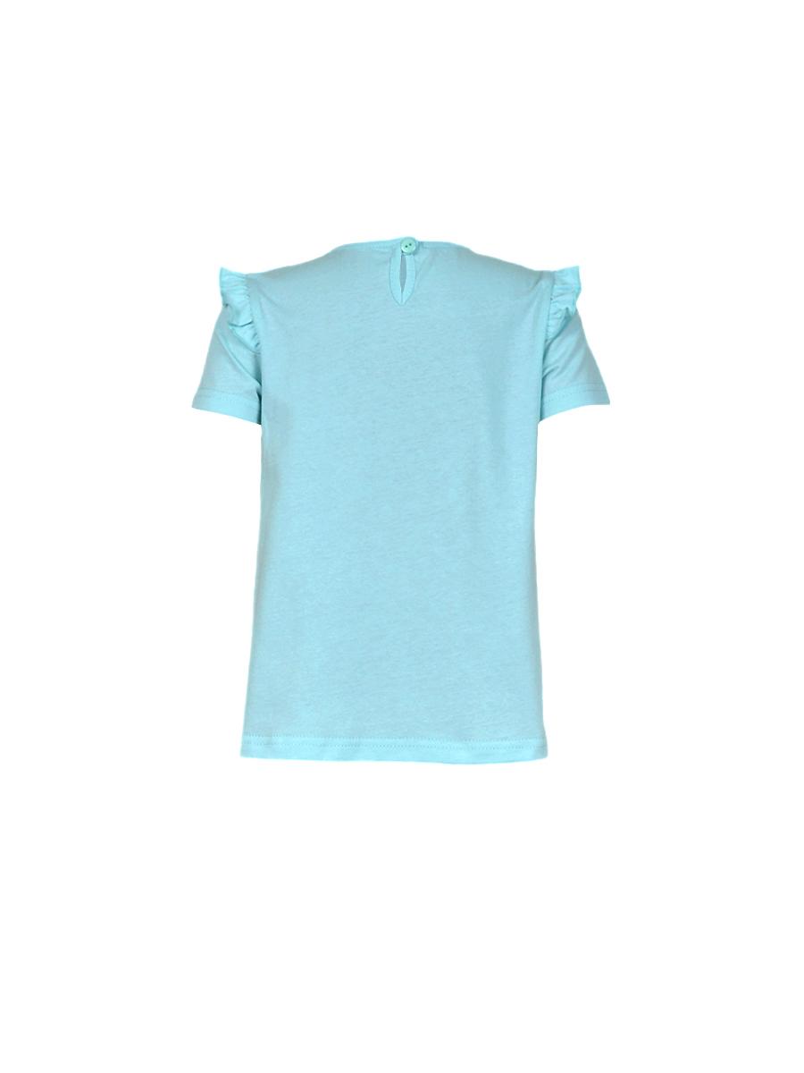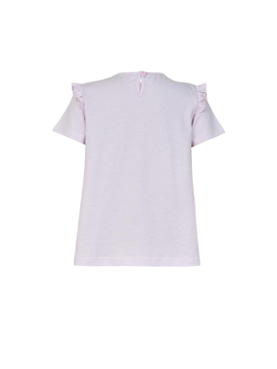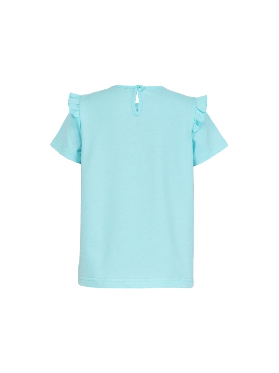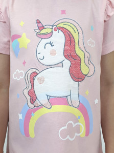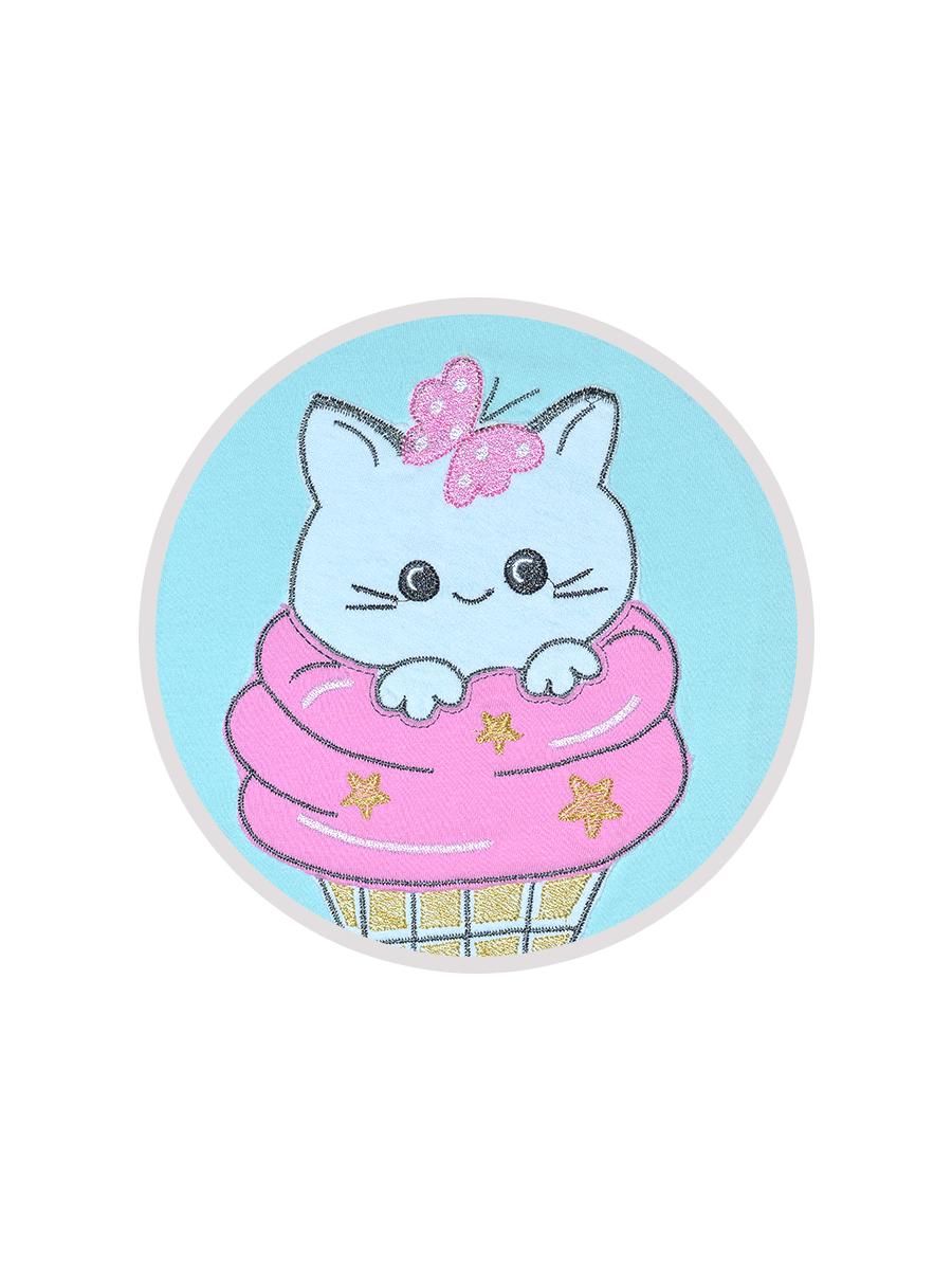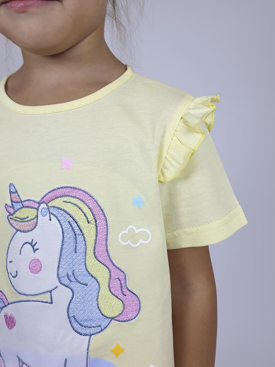 Кулирное полотно: Фуфайка- 100% х/б.,лосины-95% х/б,5% лайкра. Фуфайка-силуэт трапеция,короткий втачной рукав,в пройме рюша.Горловина окантована,застежка на пуговицу по спинке.Вышивка и печать на переде. Лосины-укороченные с печатью на правой стороне внизу,вверху на резинке.