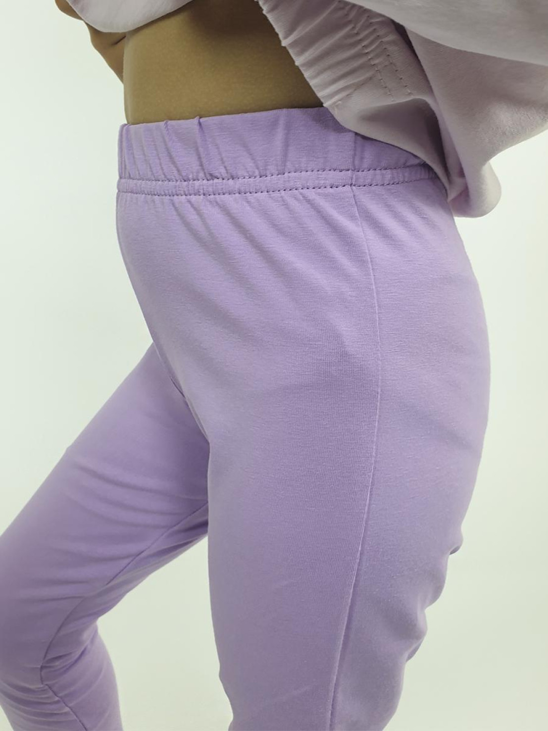 Кулирное полотно:Фуфайка- 100% х/б,лосины-95% х/б,5% лайкра. Фуфайка-свободная,с печатью по переду и двумя карманами в боковых швах.Рукав втачной.длинный.Низ изделия подшит с резинкой по боковым швам.Горловина обработана ластиком. Лосины-длинные с печатью на правой передней половинке внизу.Вверху на резинке.