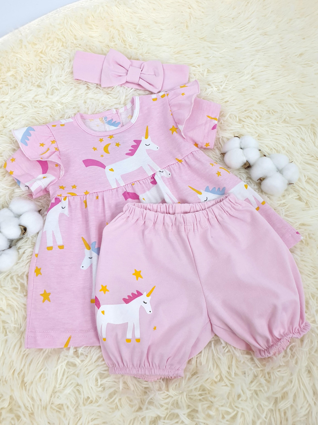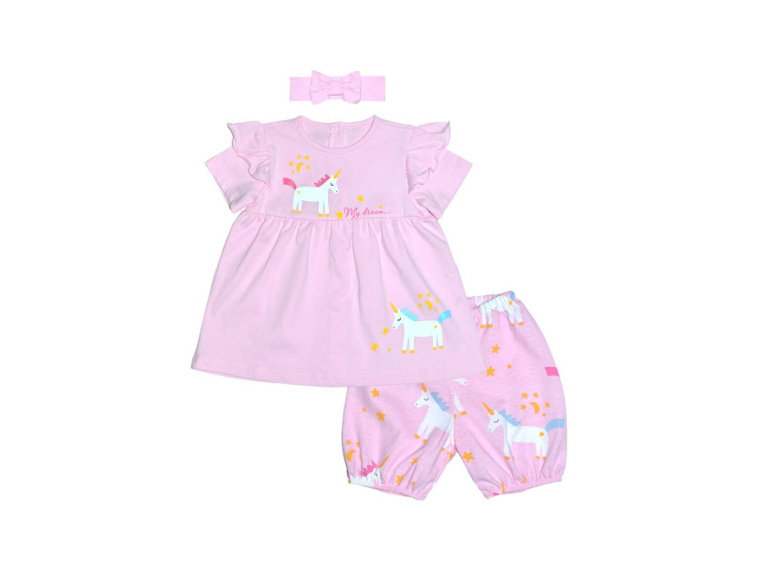 Комплект для девочки (платье+трусики+повязка с бантом)