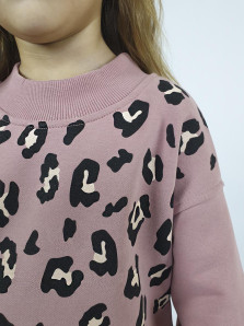 Футер 3-х нитка: 70% х/б,30% п/э. Джемпер-прямого силуэта,спущенное плечо.Рукав на манжете из ластика.Низ изделия на поясе из ластика с разрезом сзади.В горловине стойка из ластика.Печать на переде. Брюки-длинные,расширены к низу.Вверху притачной пояс из ластика с резинкой.