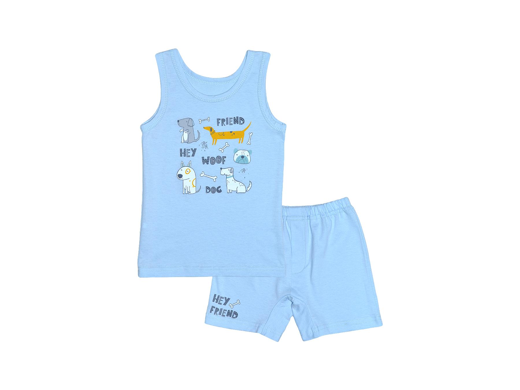 Кулирное полотно: 100% х/б. Майка-прямая,печать на переде,горловина и пройма окантованы. Трусы(боксеры)-на резинке,имитация гульфика,с ластовицей по шаговому шву.Печать на переде справа,внизу.