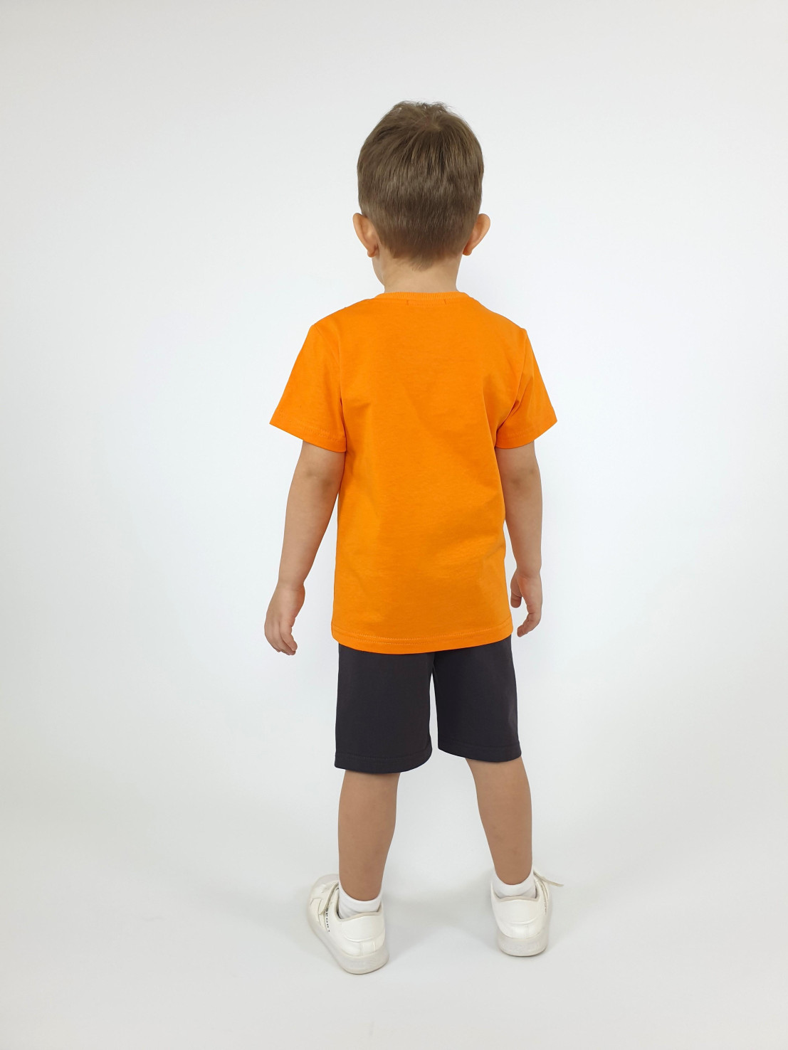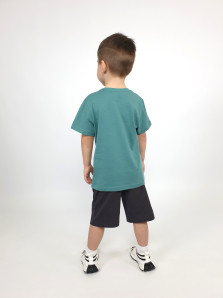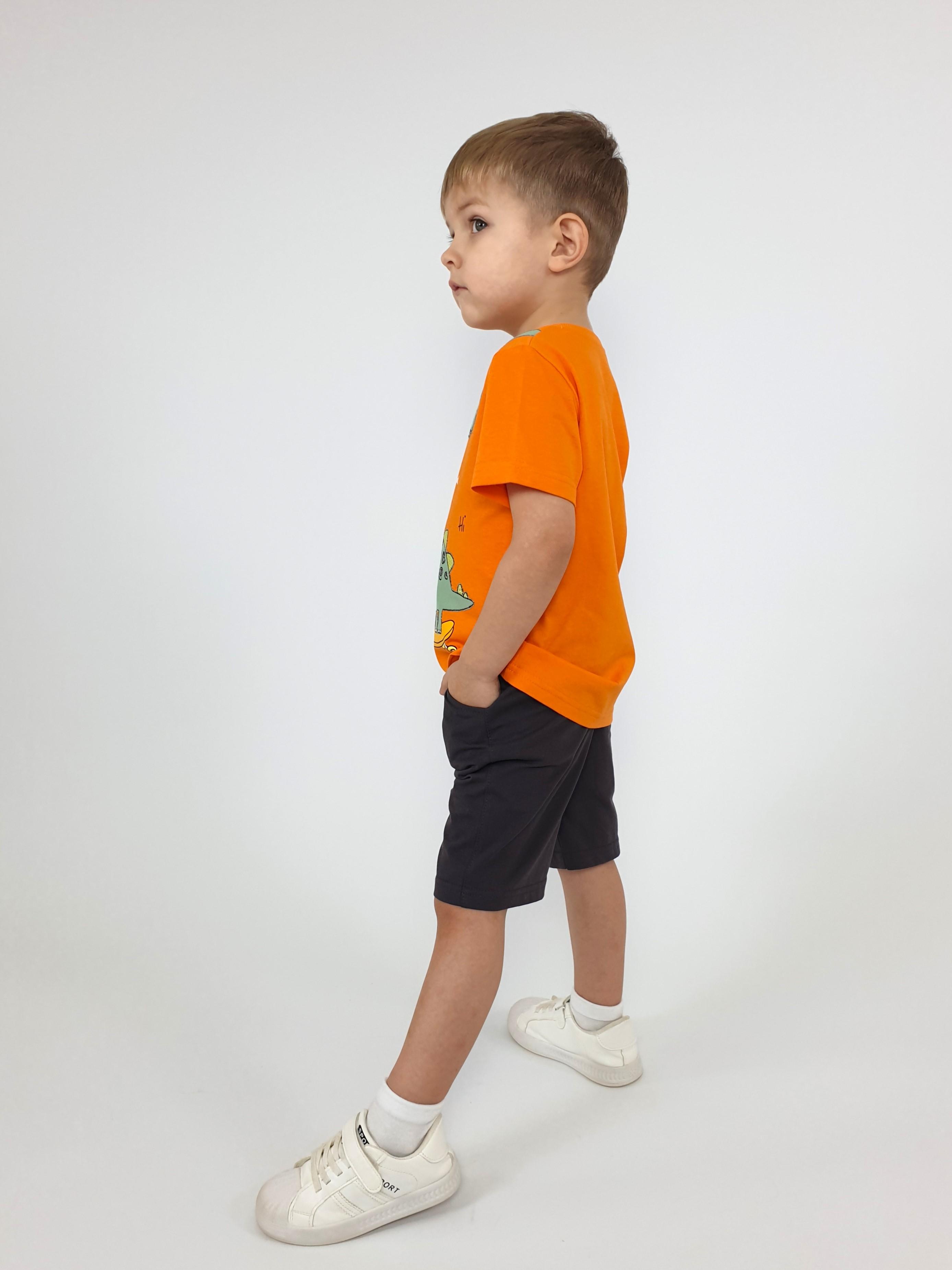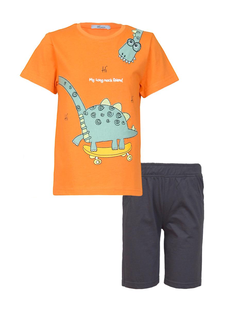 Кулирное полотно: 100% х/б. Фуфайка-прямая,перед с печатью и вышивкой.Рукав втачной,короткий.Горловина обработана ластиком. Шорты-укороченные с притачным поясом и резинкой.Два боковых кармана.