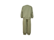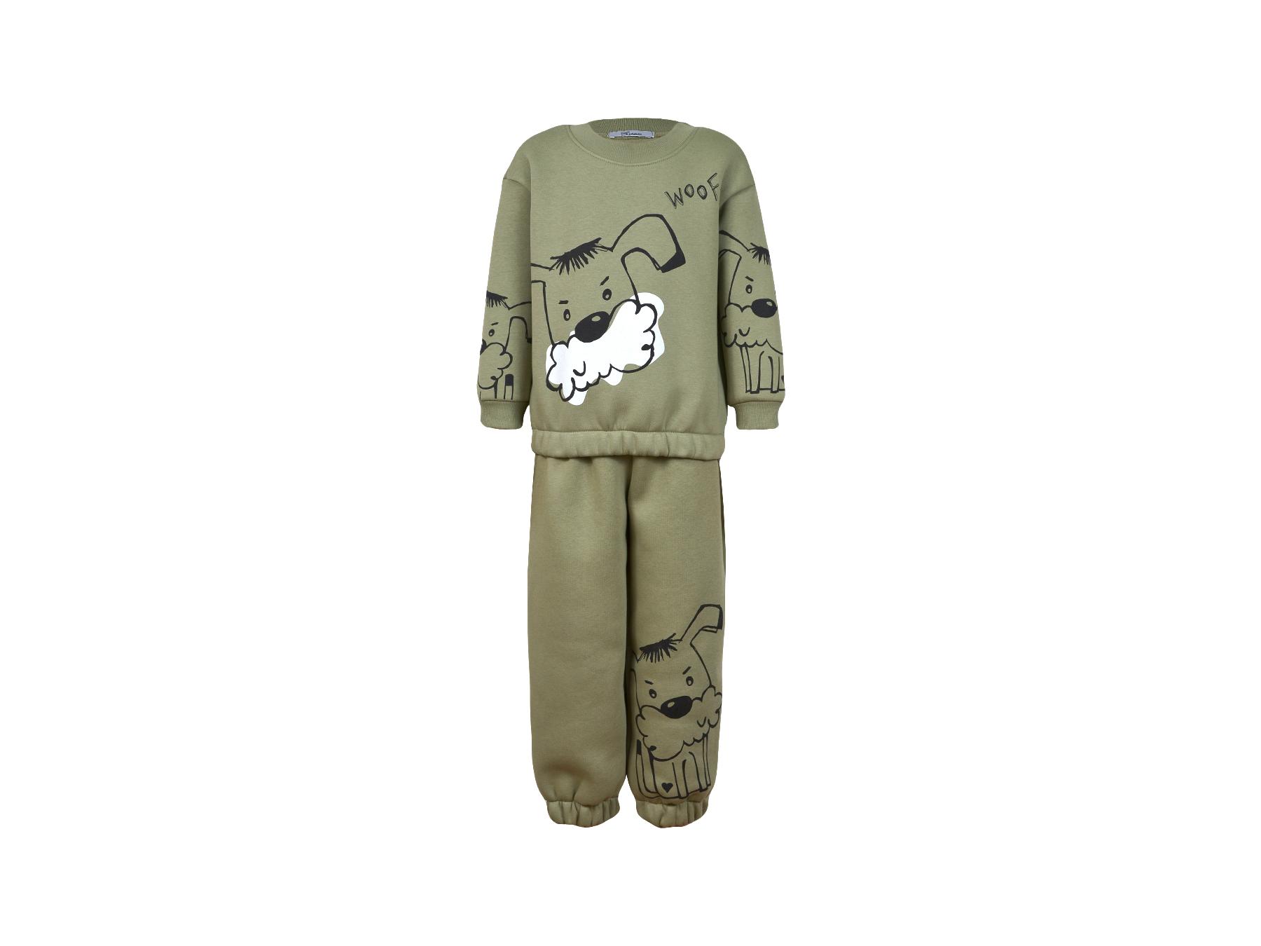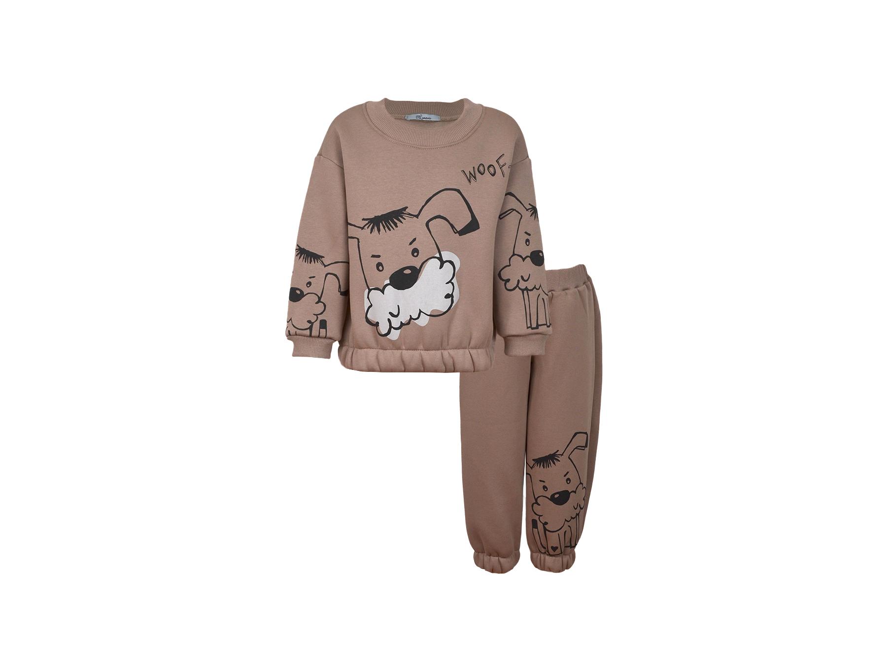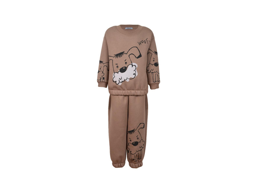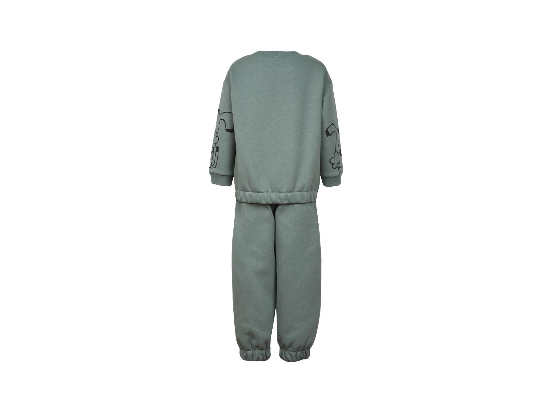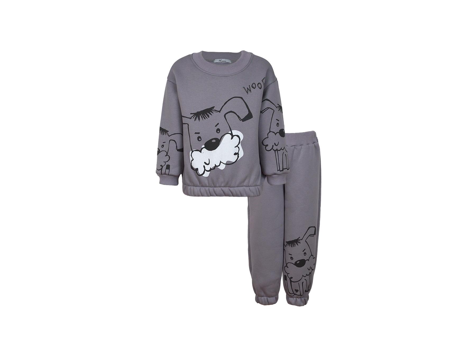 Футер трех-нитка: 70% х/б,30% п/э. Джемпер-прямого силуэта,спущенное плечо.Рукав на манжете из ластика.Низ изделия на резинке.В горловине стойка из ластика.Печать на переде и рукавах. Брюки-длинные,внизу на резинке.Вверху притачной пояс из ластика с резинкой.На передней левой половинке печать внизу.