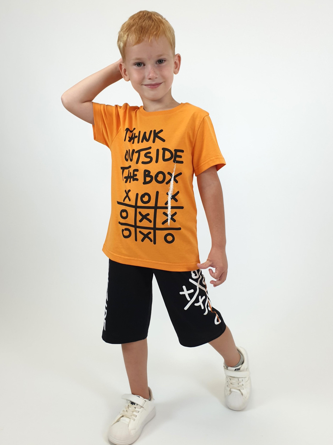 Кулирное полотно: 100% х/б. Джемпер-прямой,короткий втачной рукав,перед с печатью.Горловина обработана ластиком. Шорты-удлиненные с притачным поясом,с резинкой.без бокового шва.Печать сбоку на обеих штанинах.