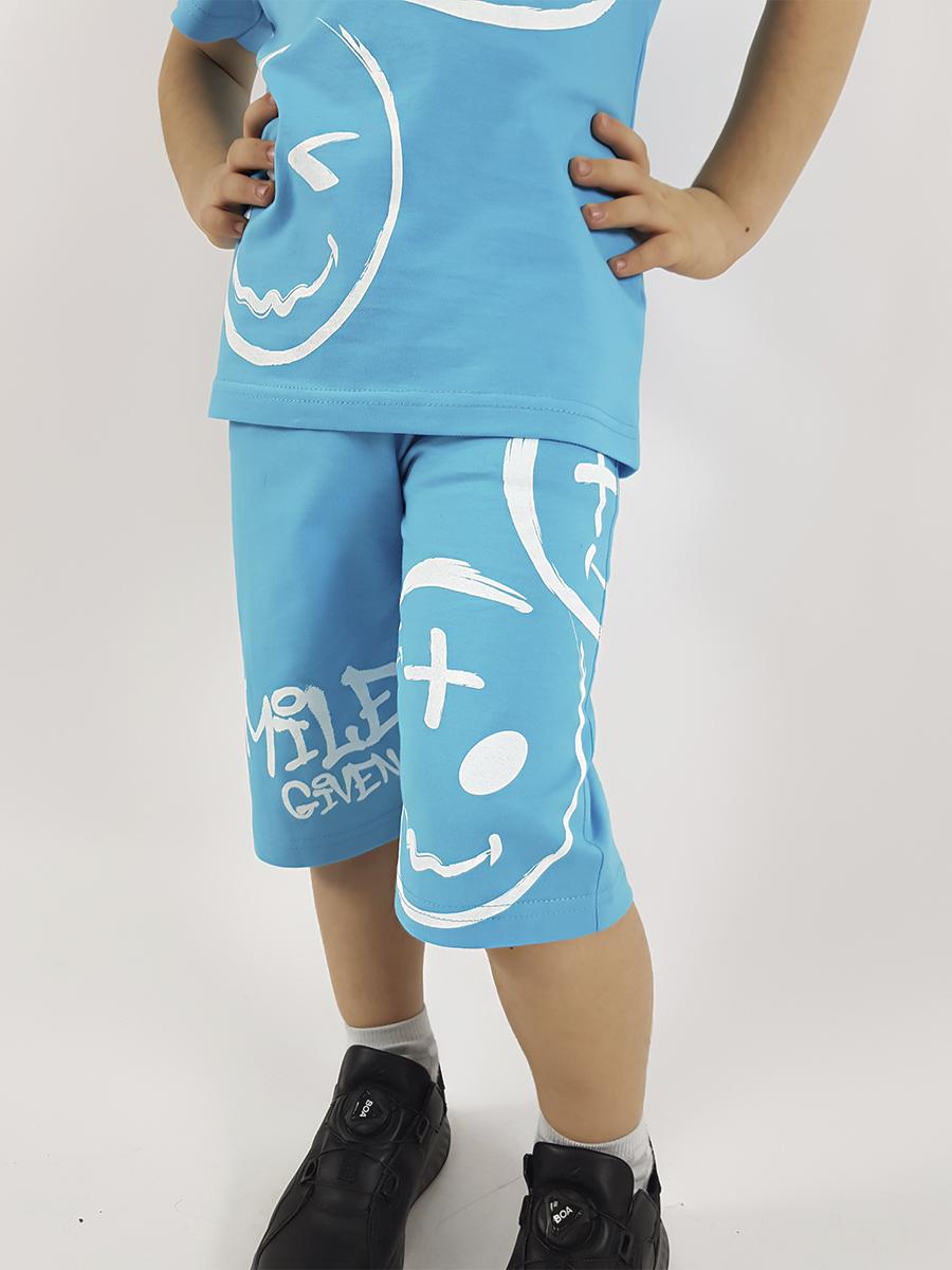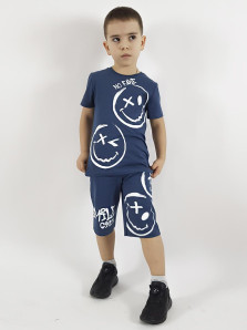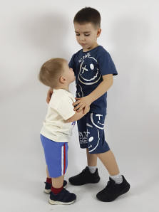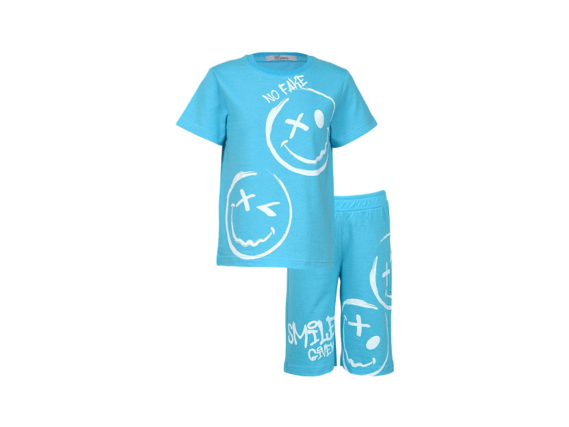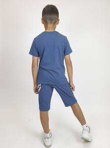 Кулирное полотно: 100% х/б. Фуфайка-прямая,короткий втачной рукав,перед с печатью.Горловина обработана ластиком. Шорты-удлиненные с притачным поясом,с резинкой.Печать на правой передней половинке внизу и левой стороне(сзади на перед).