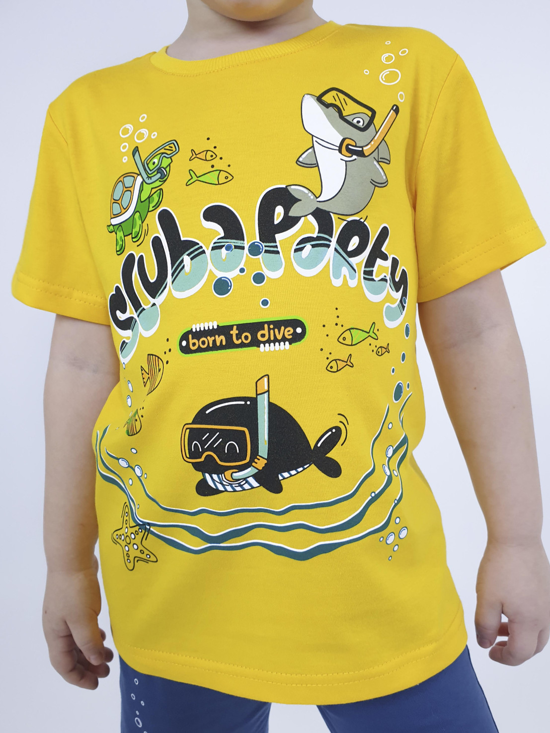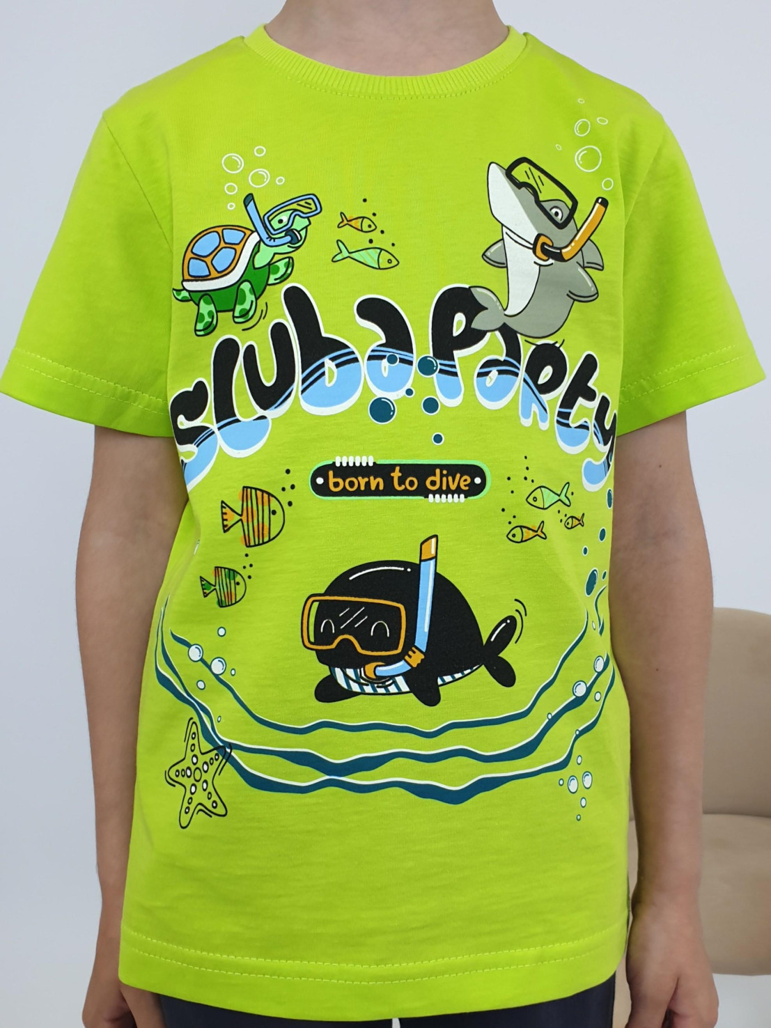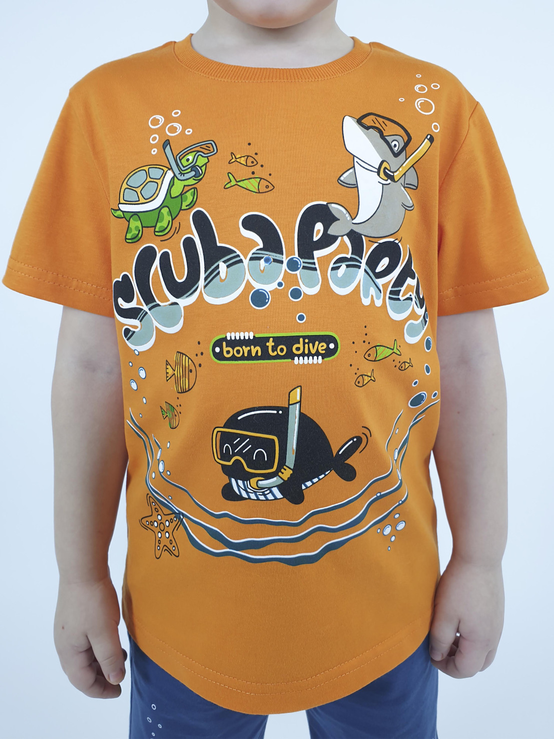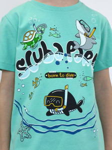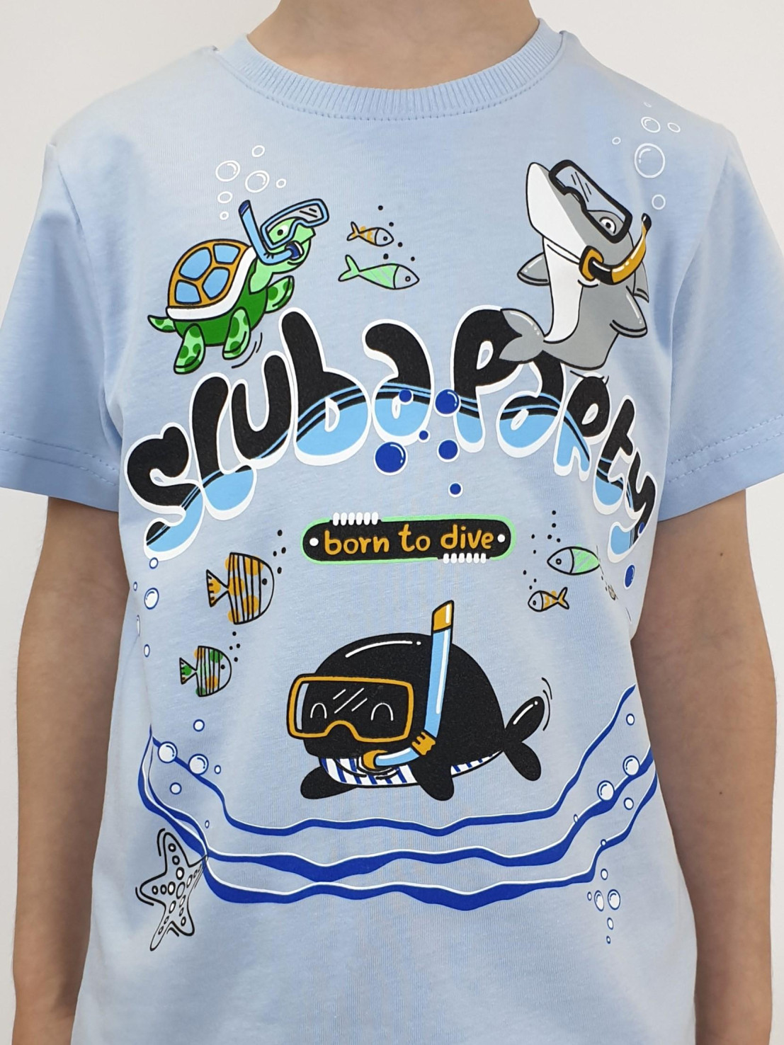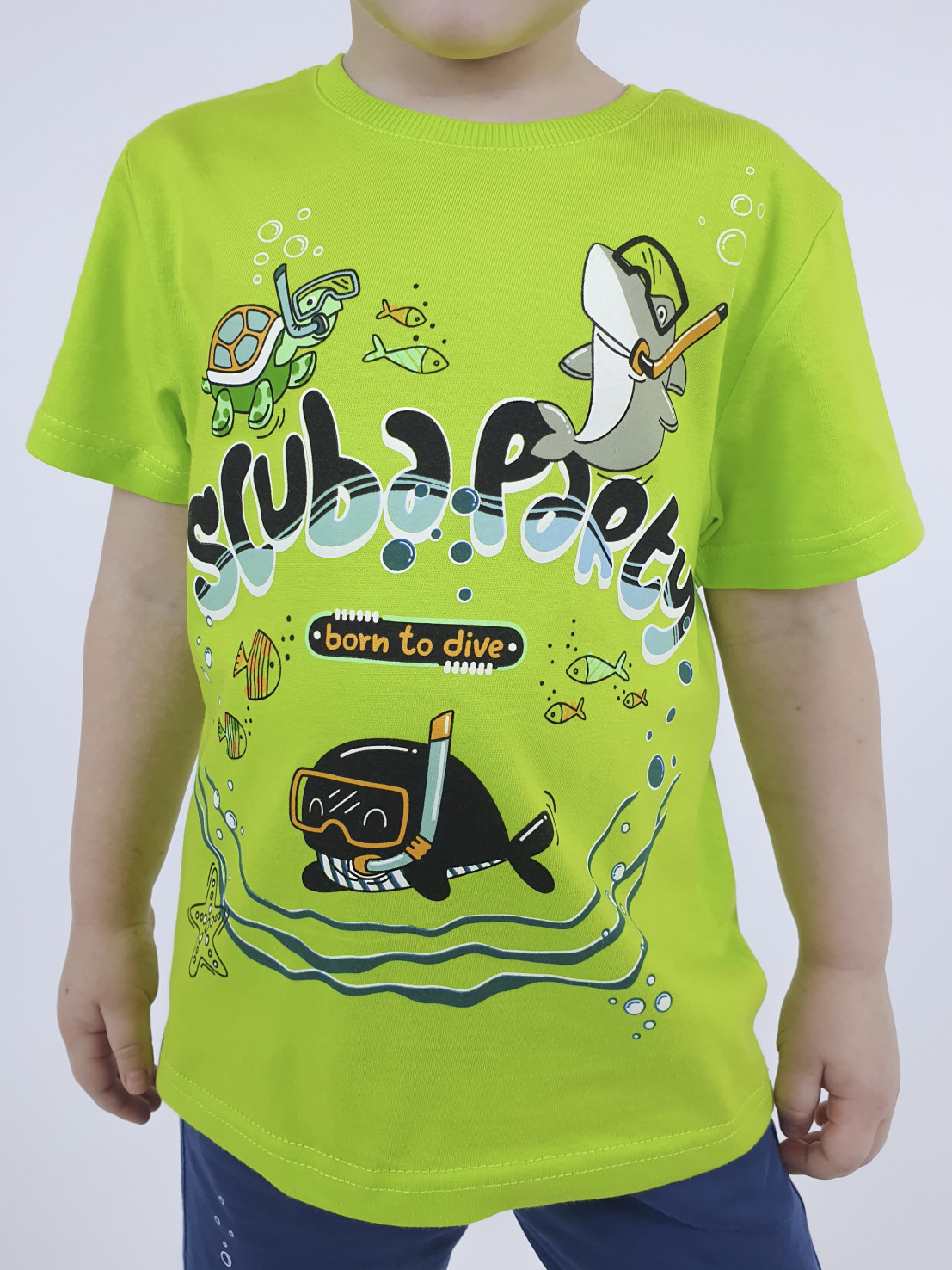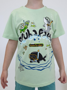 Кулирное полотно: 100% х/б. Фуфайка-прямая,перед с печатью.Рукав втачной,короткий.Горловина обработана ластиком. Шорты-укороченные с притачным поясом и резинкой.Два боковых кармана по переду.Печать на передних половинках внизу.