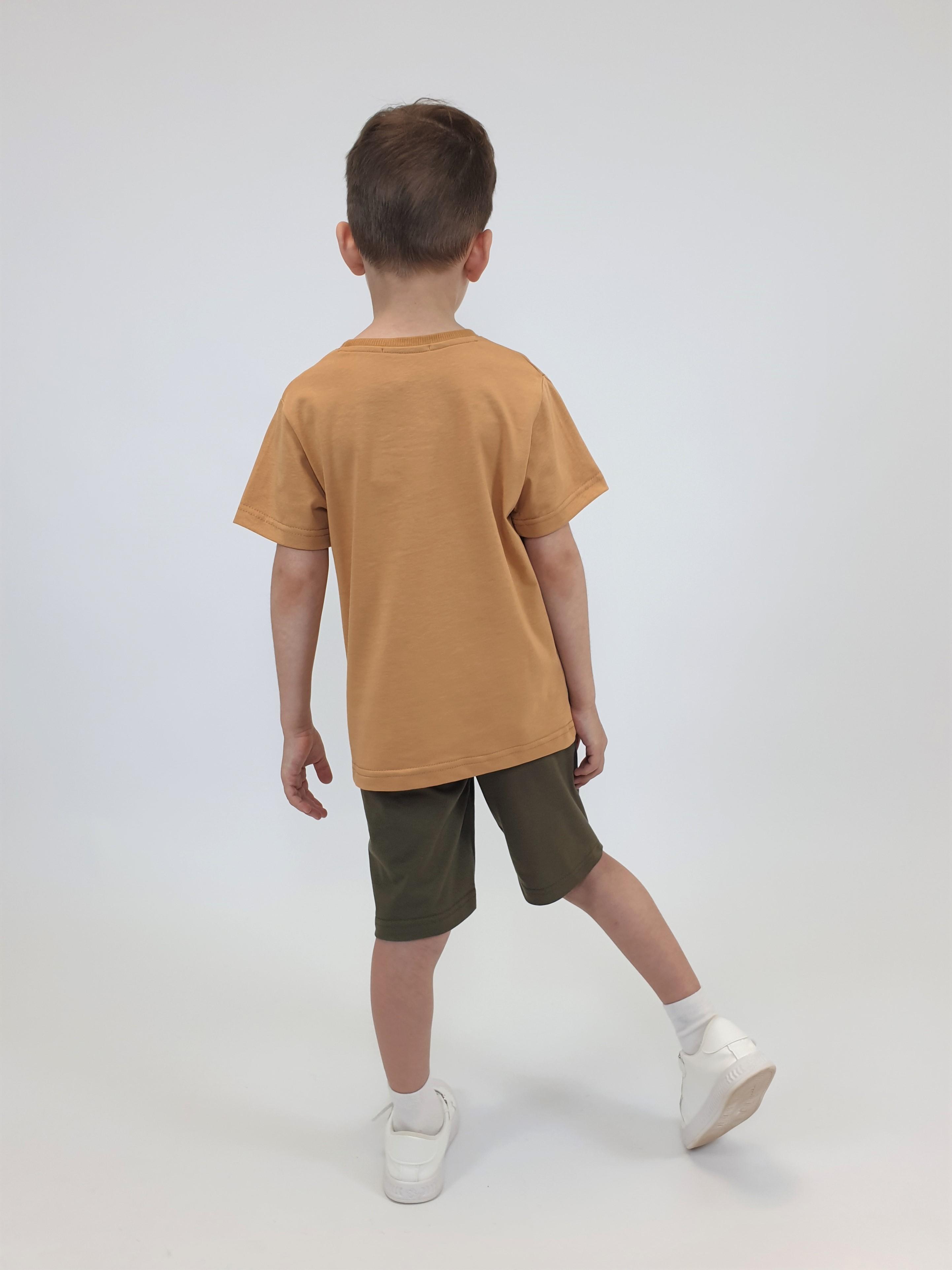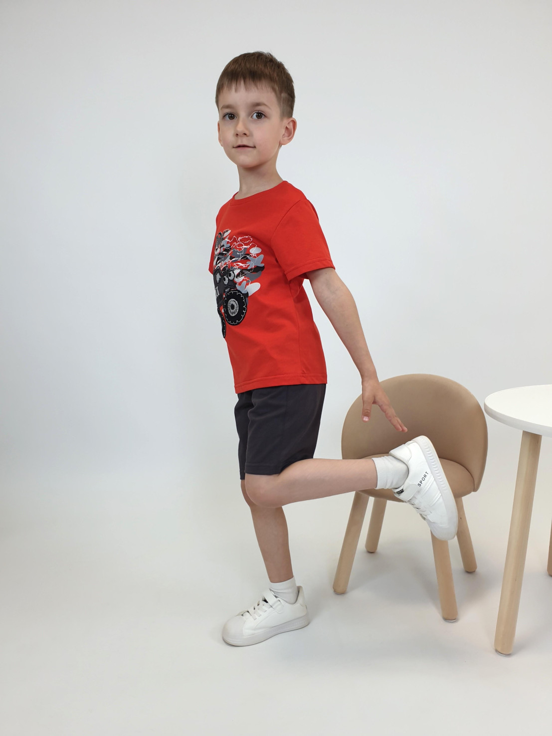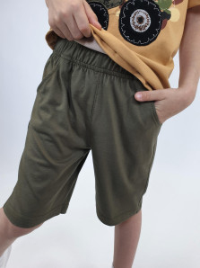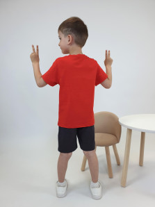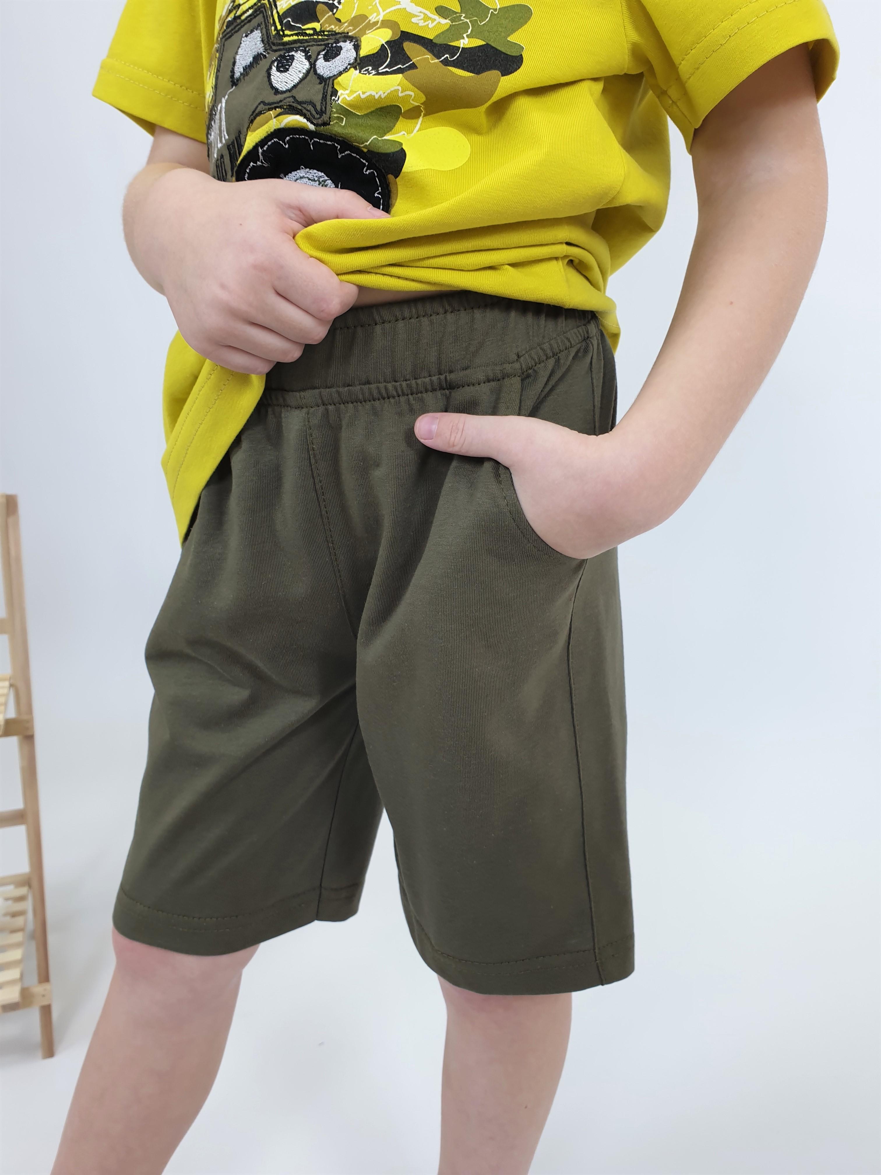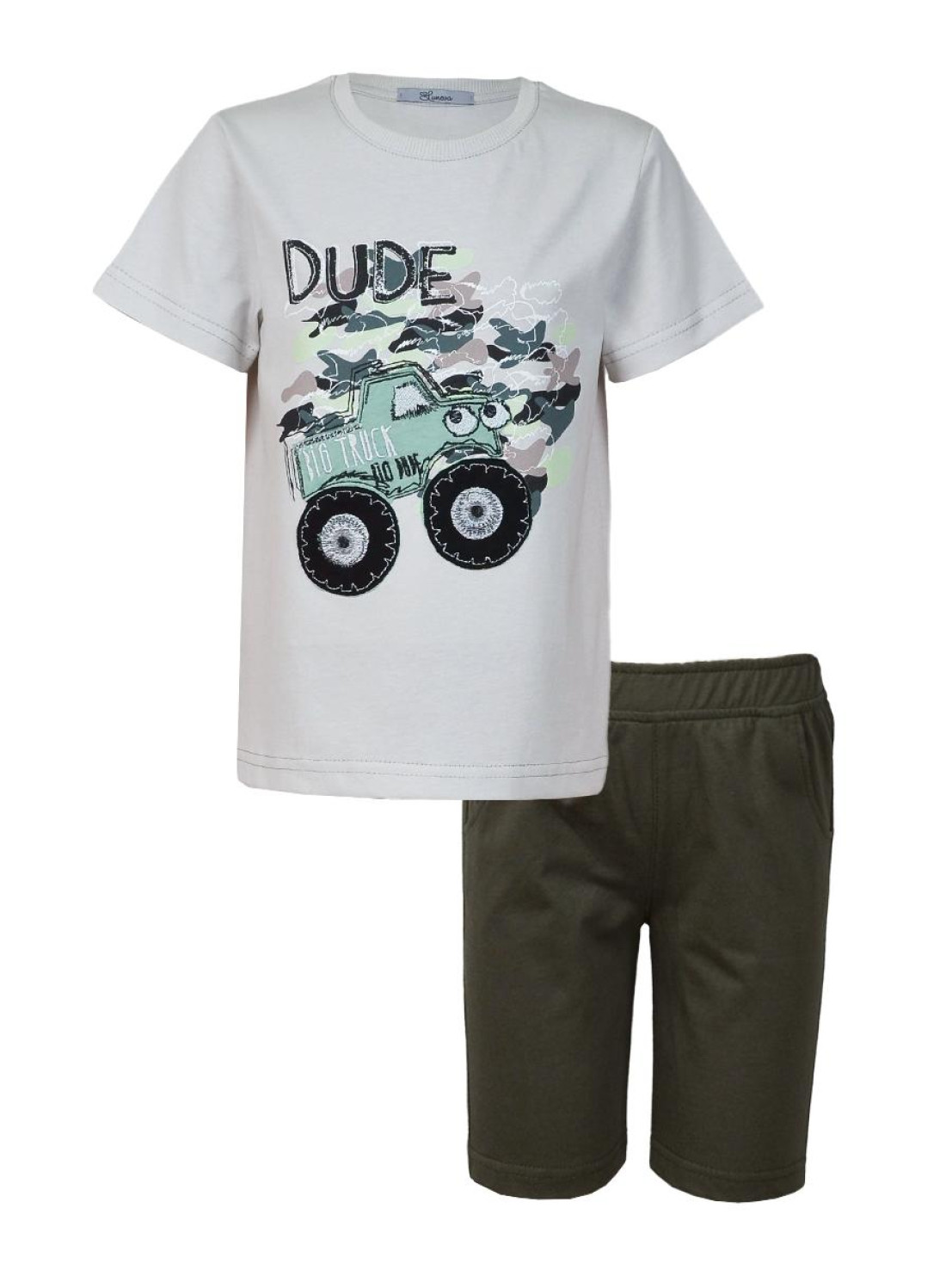 Кулирное полотно: 100% х/б. Фуфайка-прямая,перед с печатью и вышивкой.Рукав втачной,короткий.Горловина обработана ластиком. Шорты-укороченные с притачным поясом и резинкой.Два боковых кармана.
