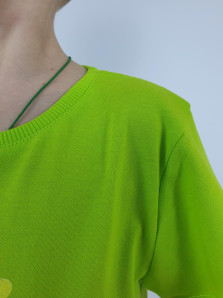 Кулирное полотно: 100% х/б. Фуфайка-прямая,перед с печатью и вышивкой.Рукав втачной,короткий.Горловина обработана ластиком. Шорты-укороченные с притачным поясом и резинкой.Два боковых кармана.