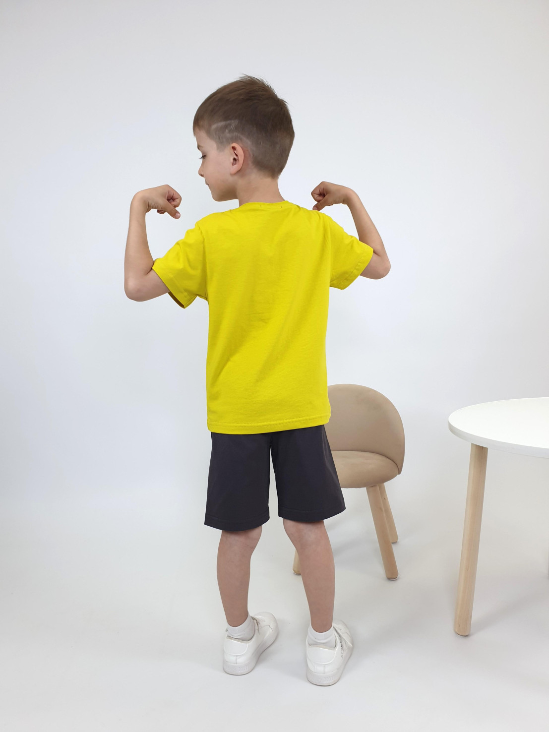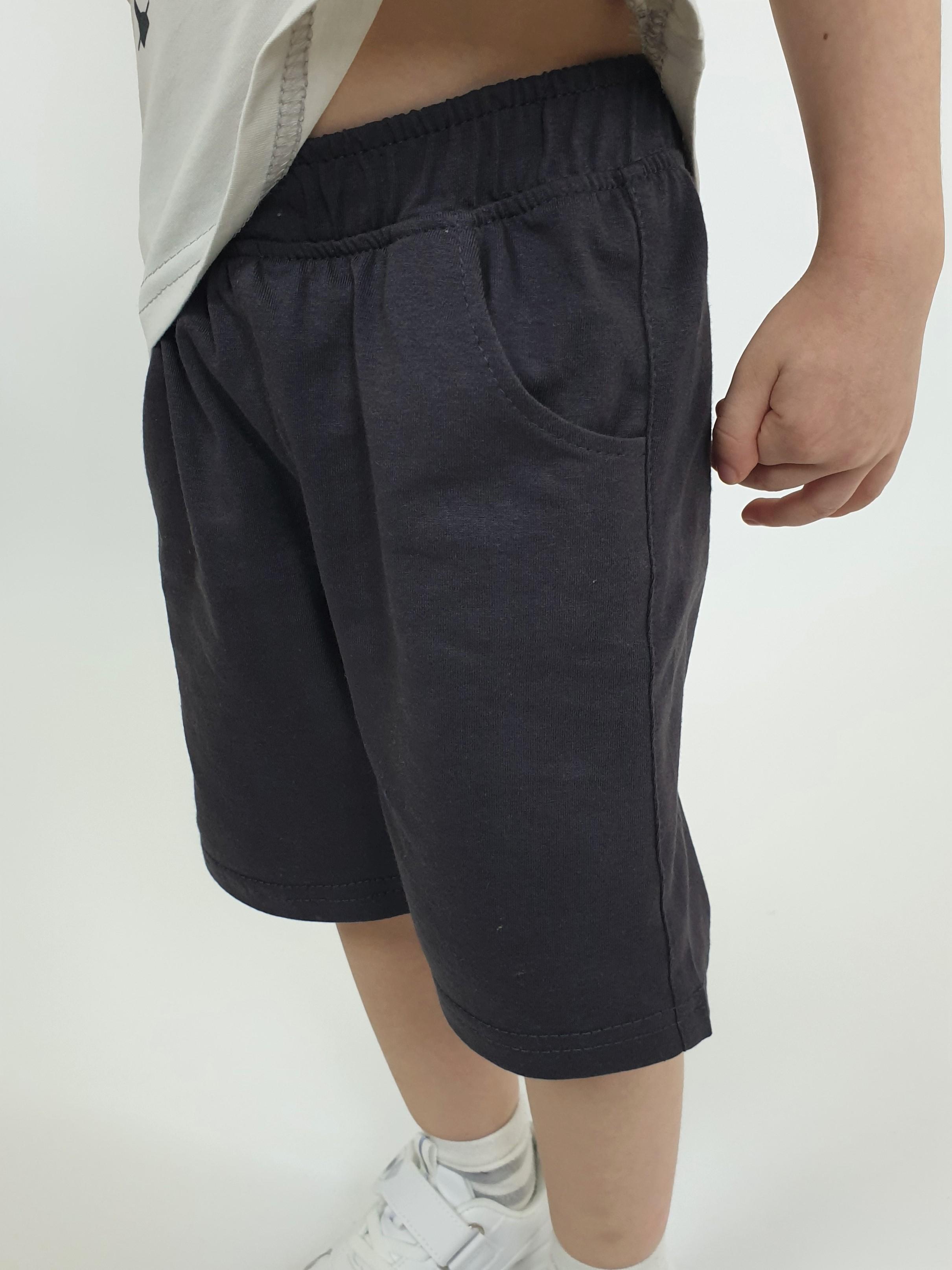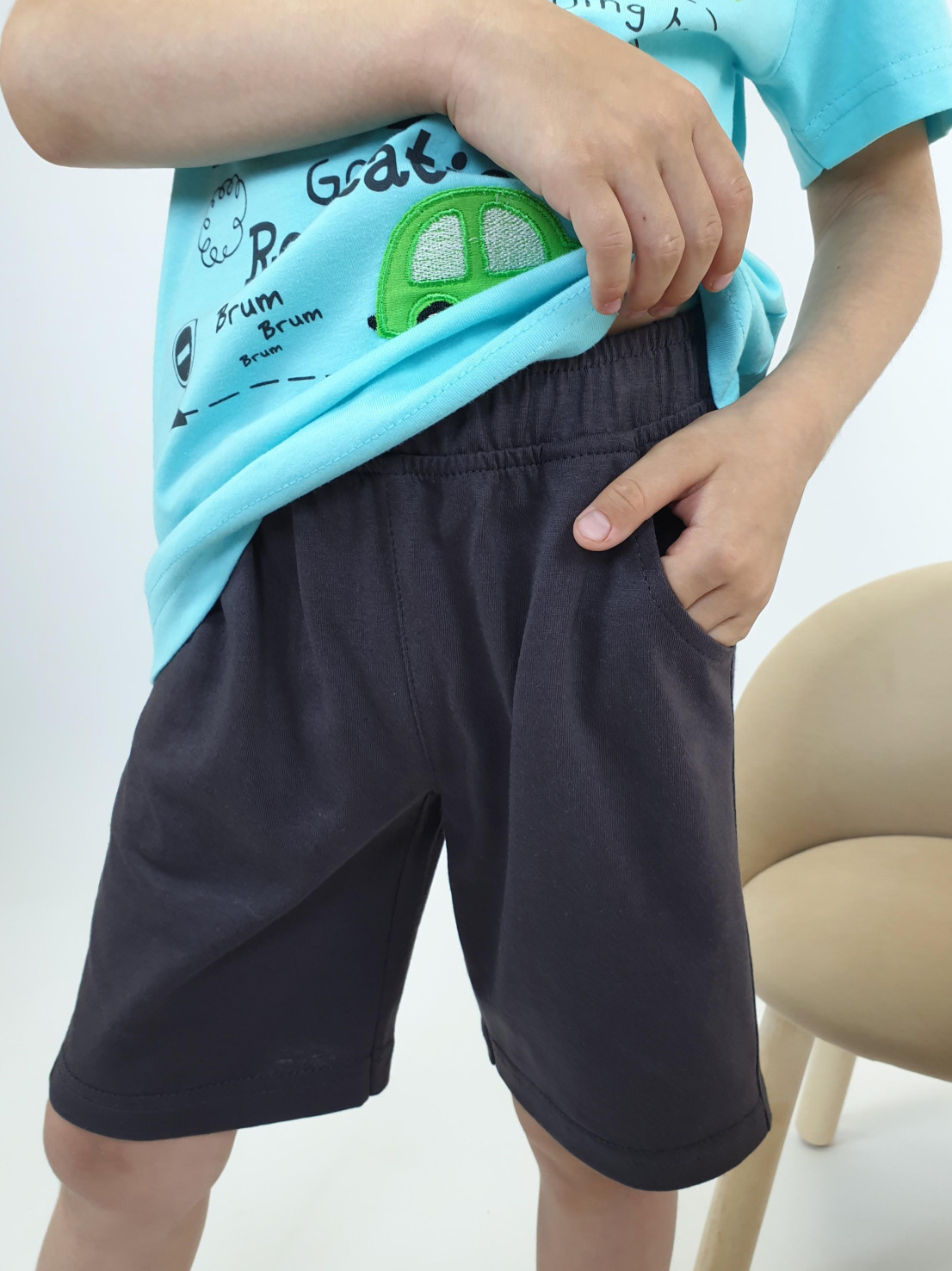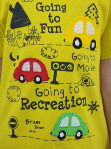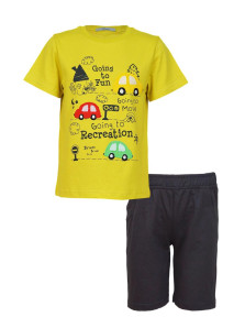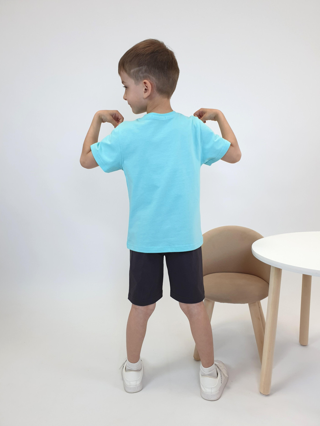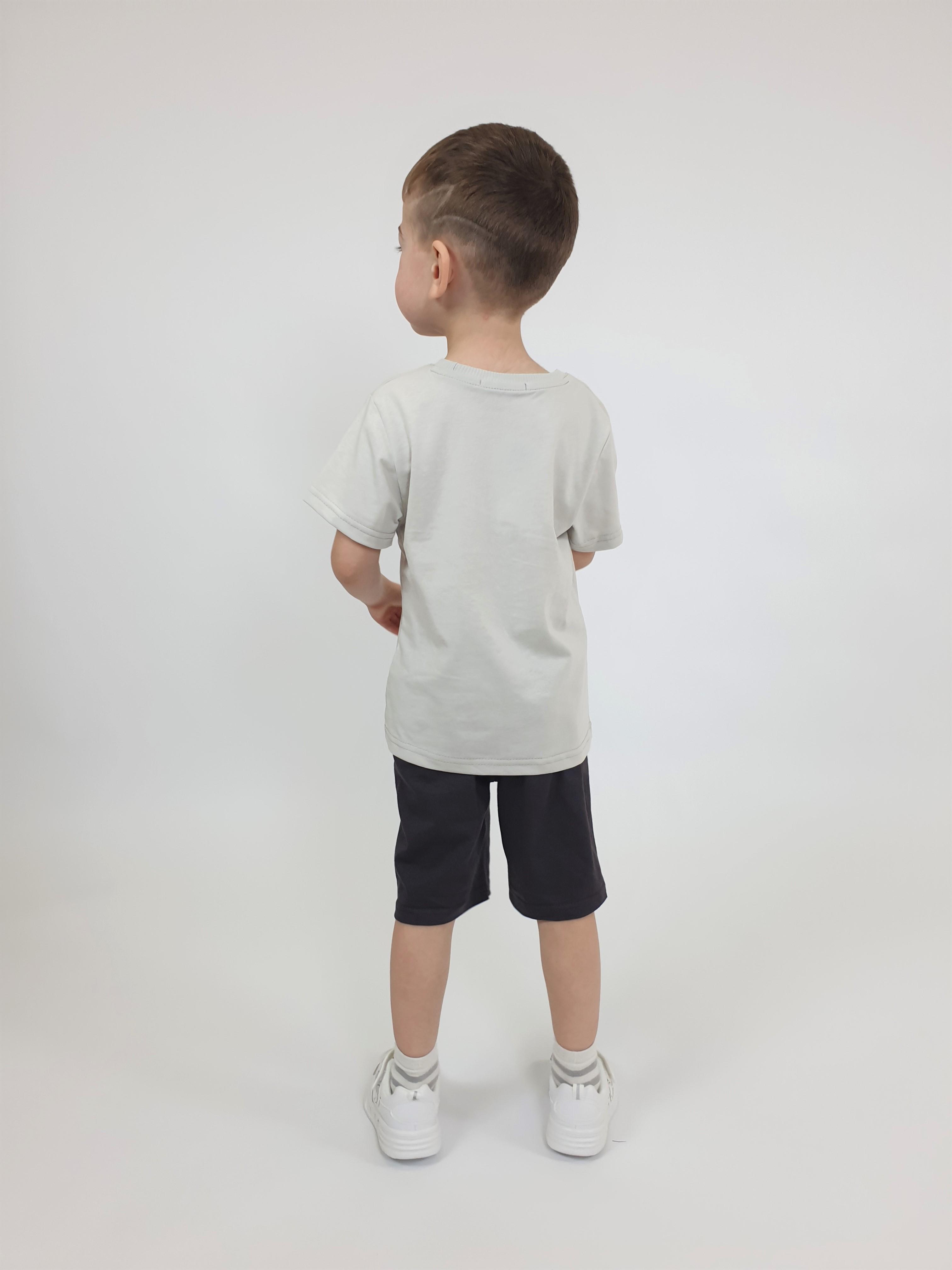 Кулирное полотно: 100% х/б. Фуфайка-прямая,перед с печатью и вышивкой(аппликацией).Рукав втачной,короткий.Горловина обработана ластиком. Шорты-укороченные с притачным поясом и резинкой.Два боковых кармана.