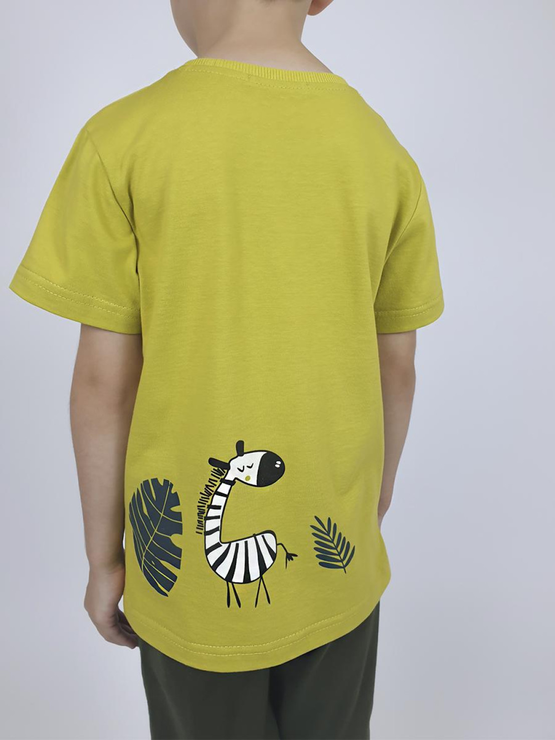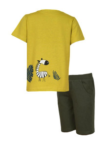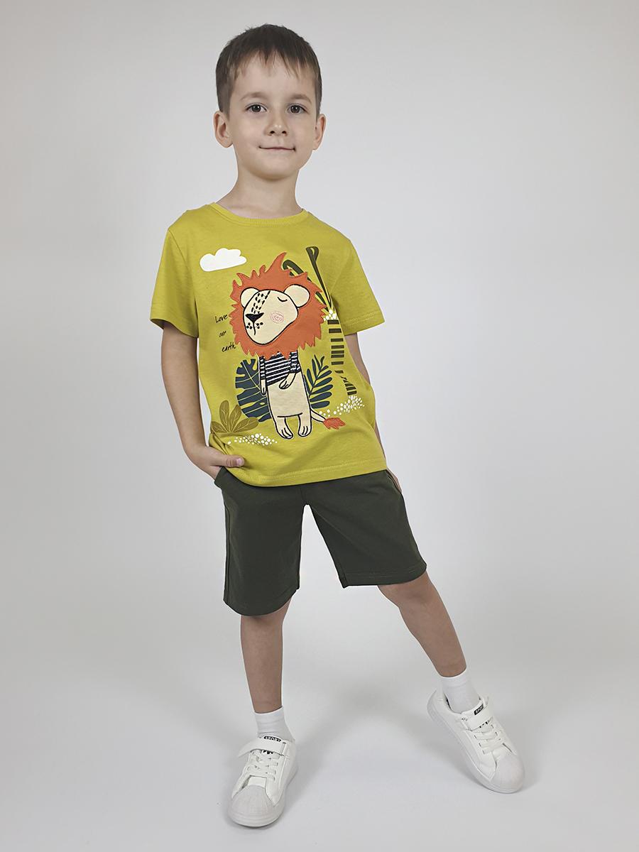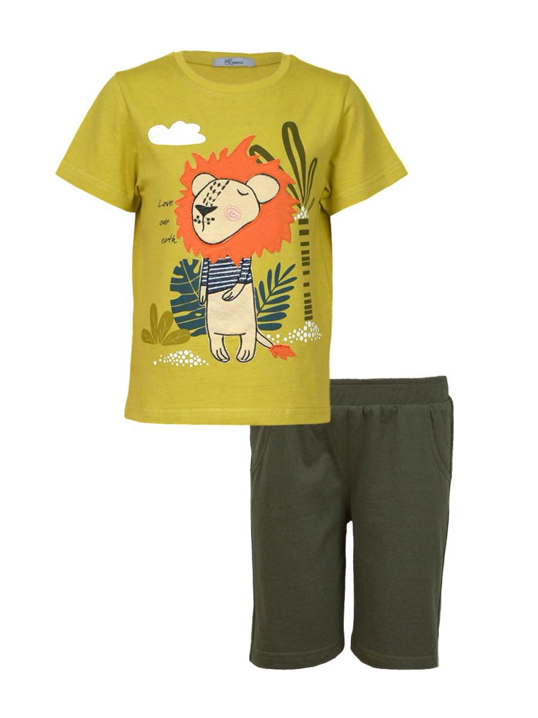 Кулирное полотно: 100% х/б. Фуфайка-прямая,перед и спинка с печатью.Вышивка(аппликация) на переде.Рукав втачной,короткий.Горловина обработана ластиком. Шорты-укороченные с притачным поясом и резинкой.Два боковых кармана по переду.