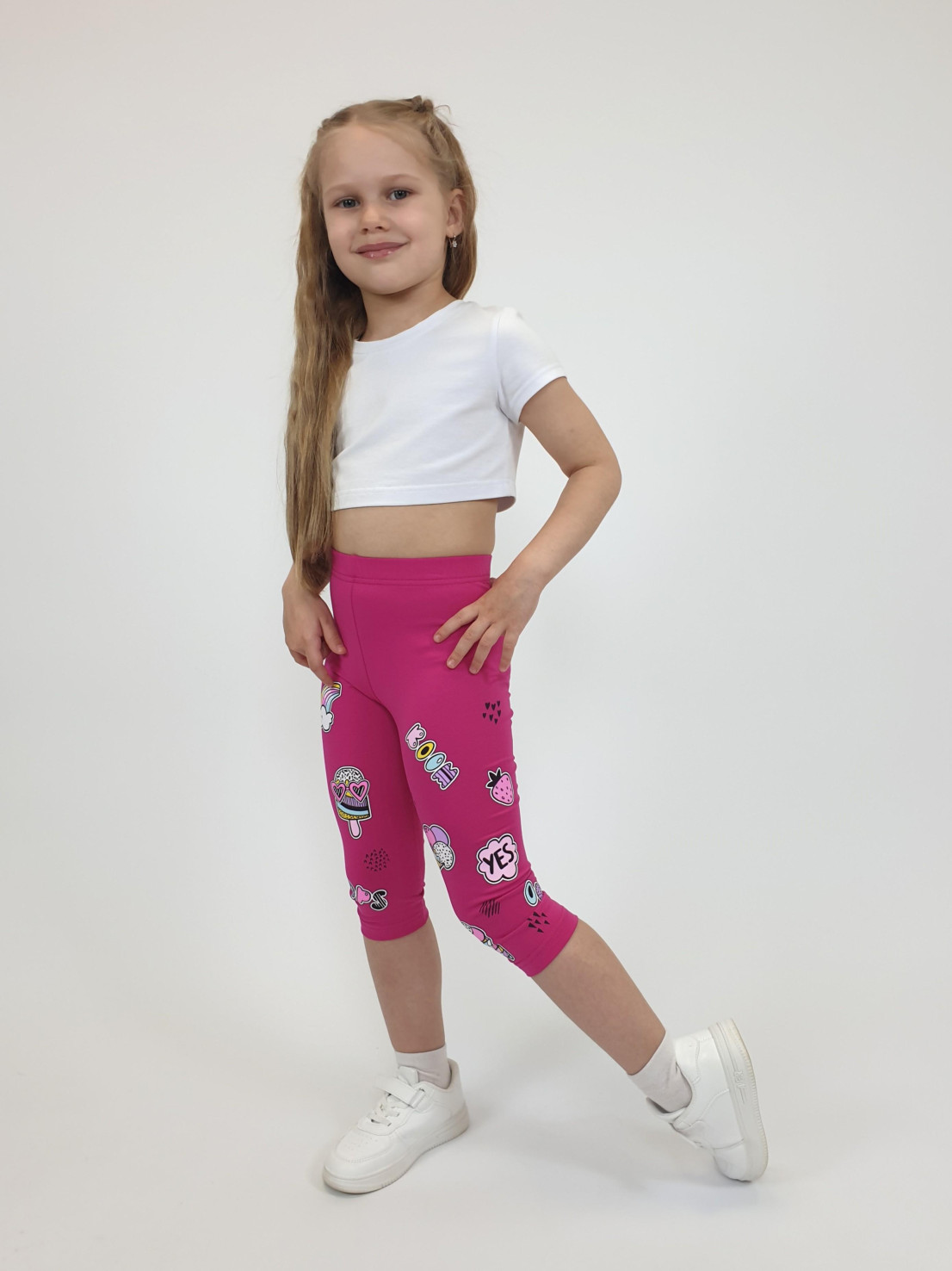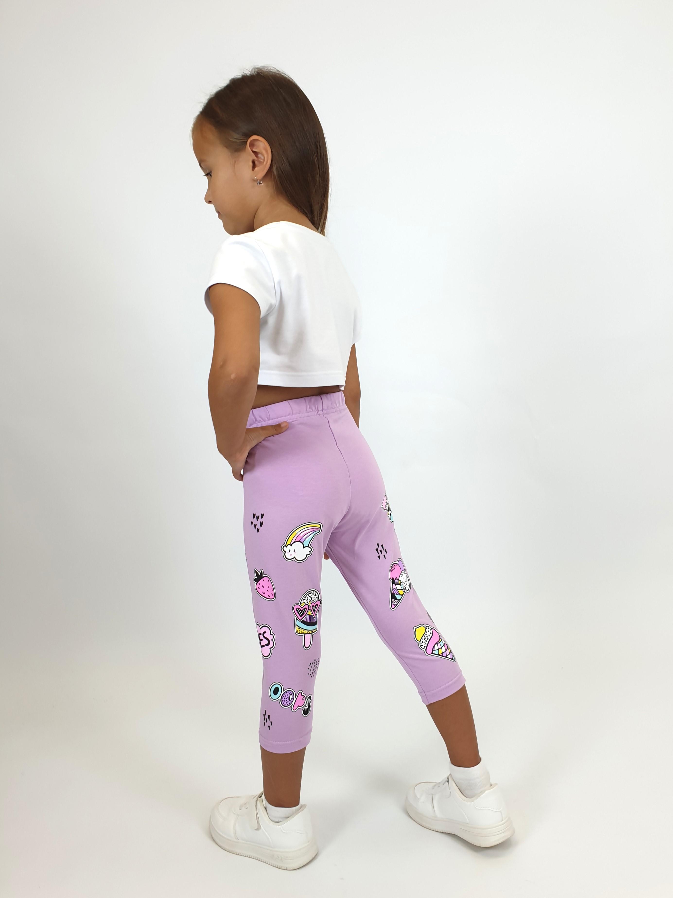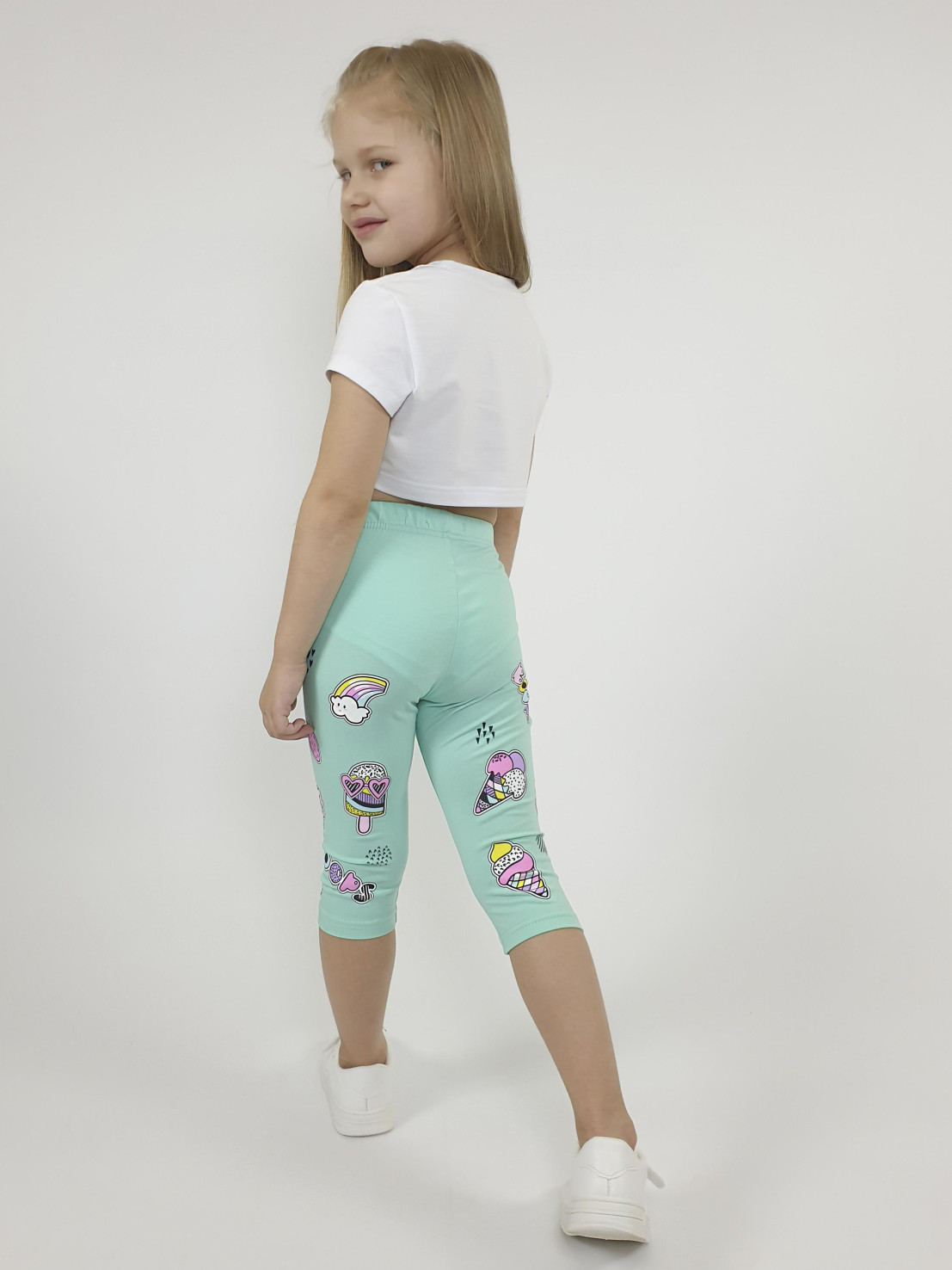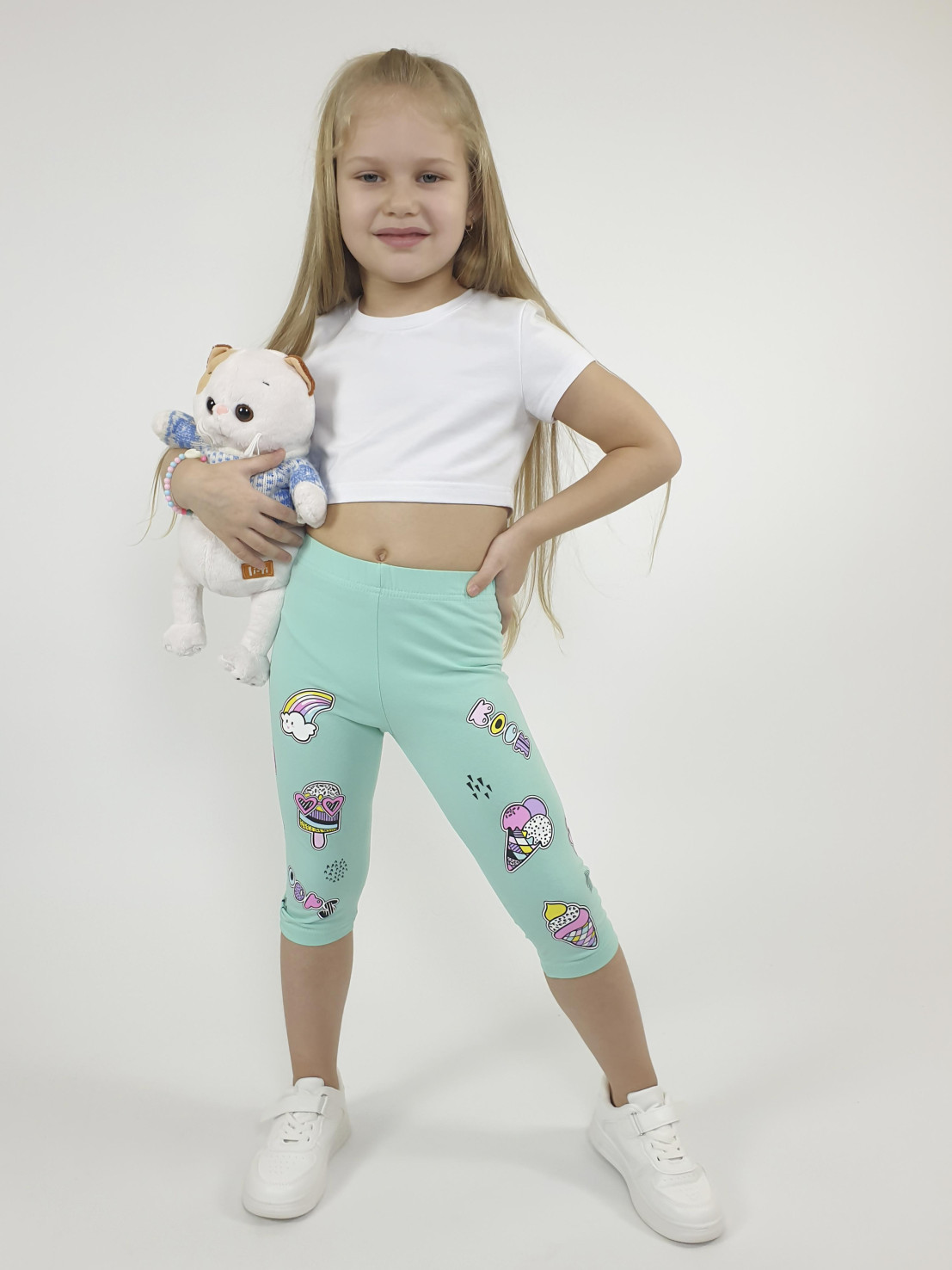 Кулирное полотно:95% х/б,5% лайкра. Лосины-укороченные с печатью,без бокового шва.