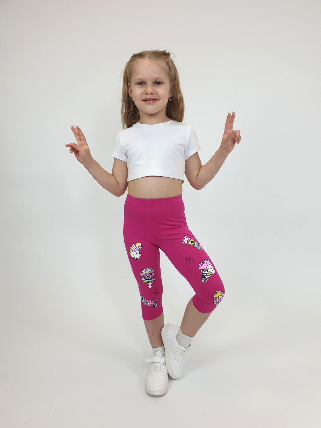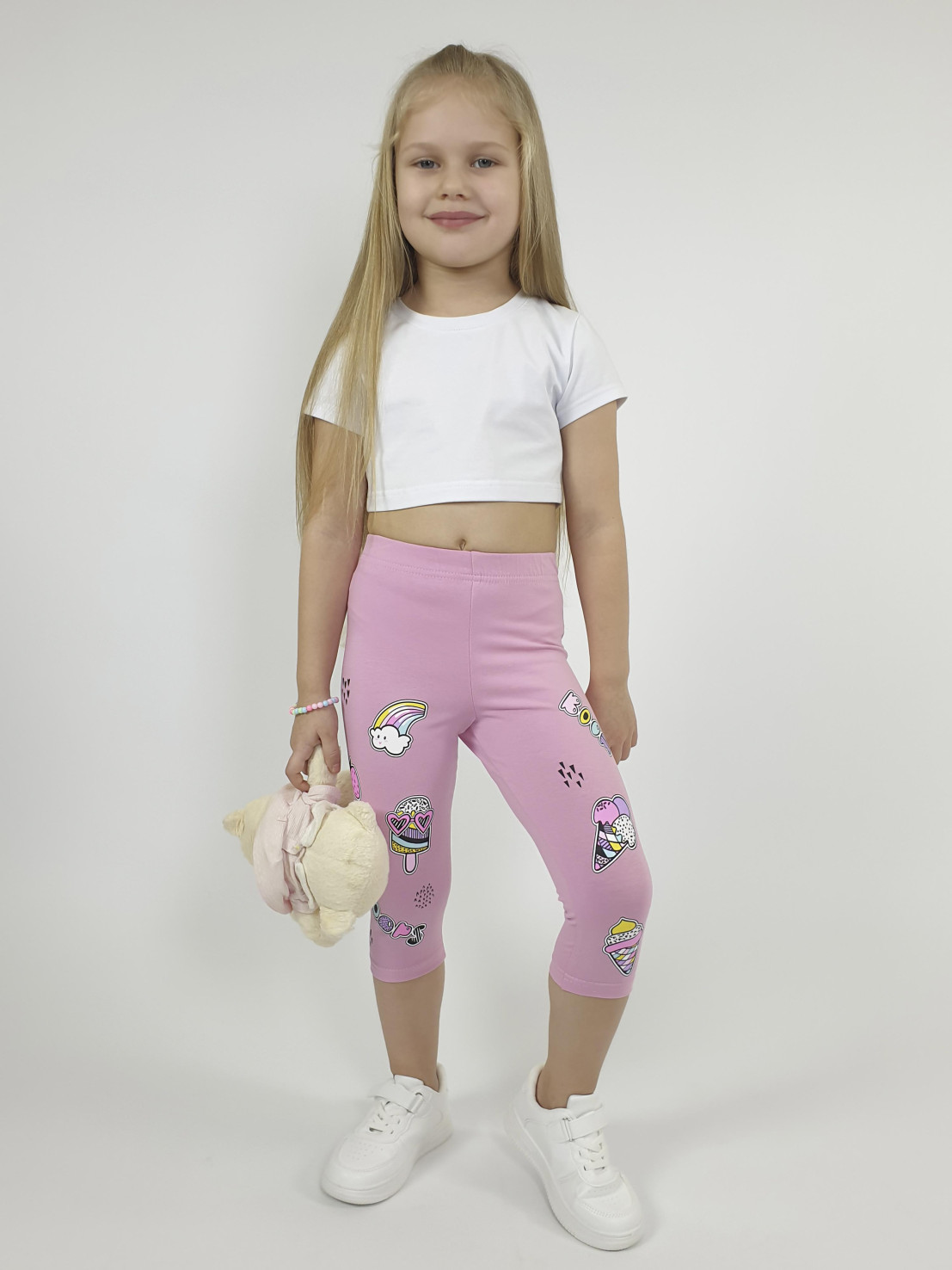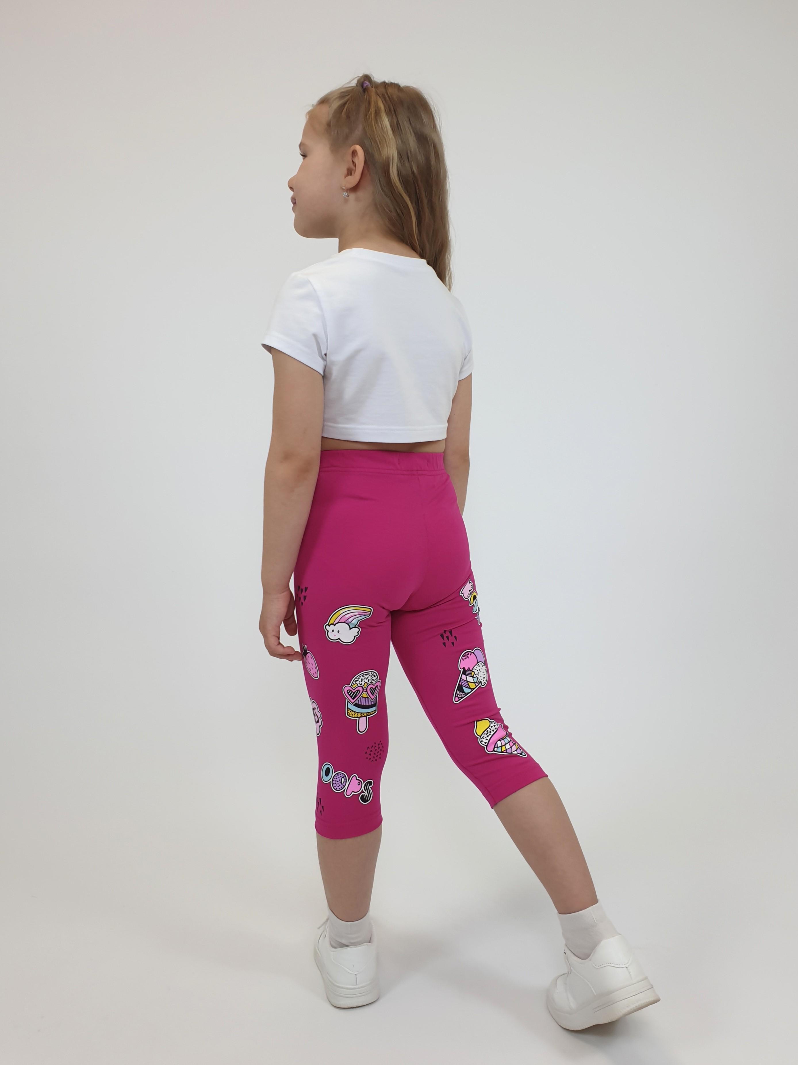 Кулирное полотно:95% х/б,5% лайкра. Лосины-укороченные с печатью,без бокового шва.