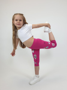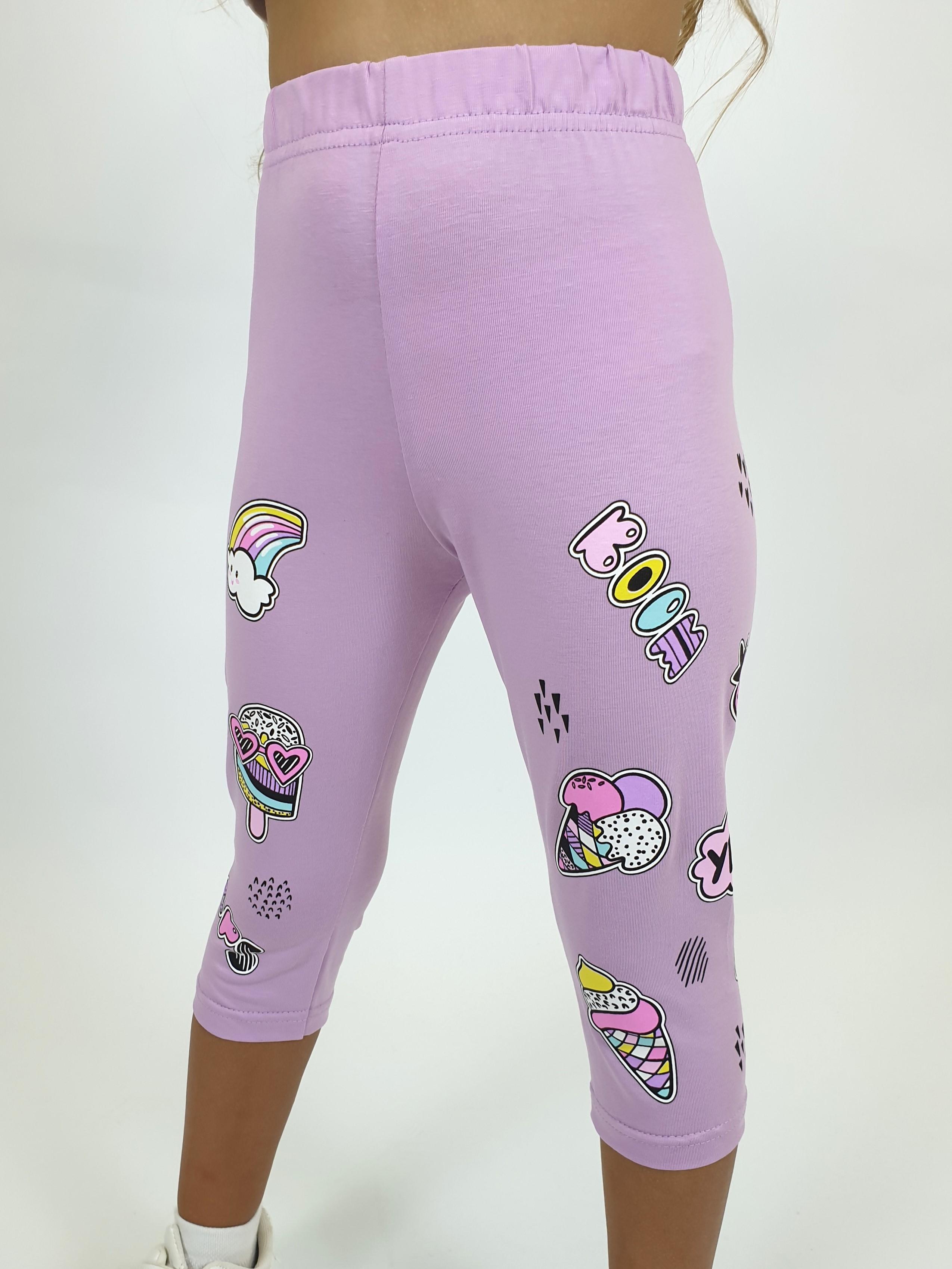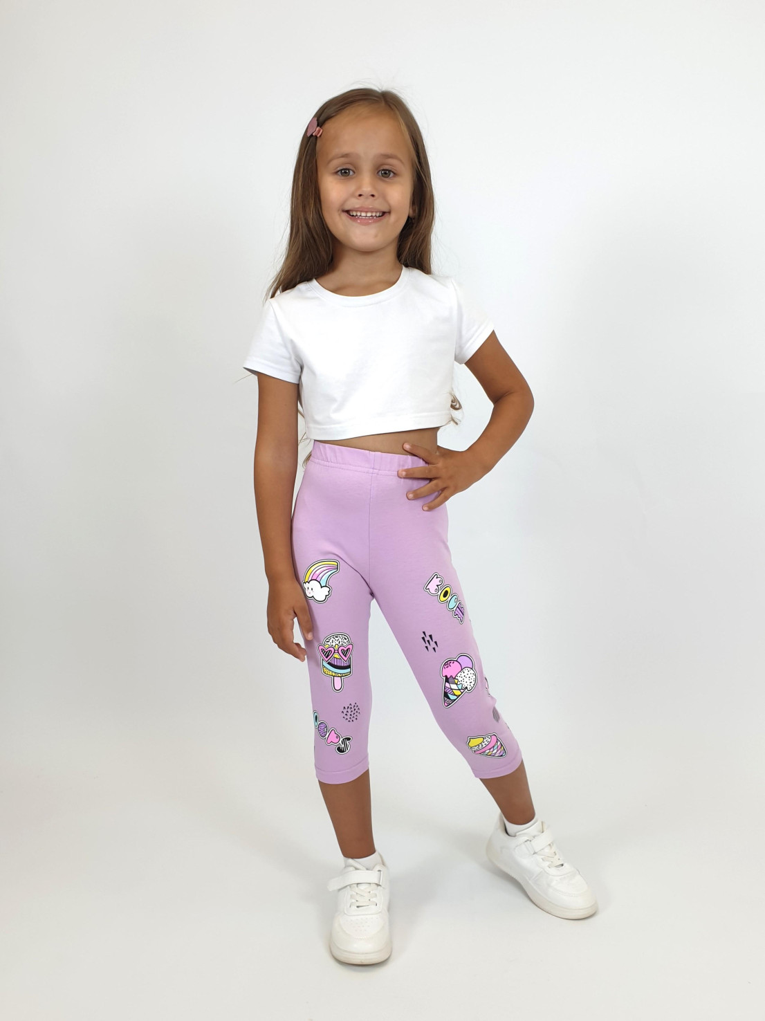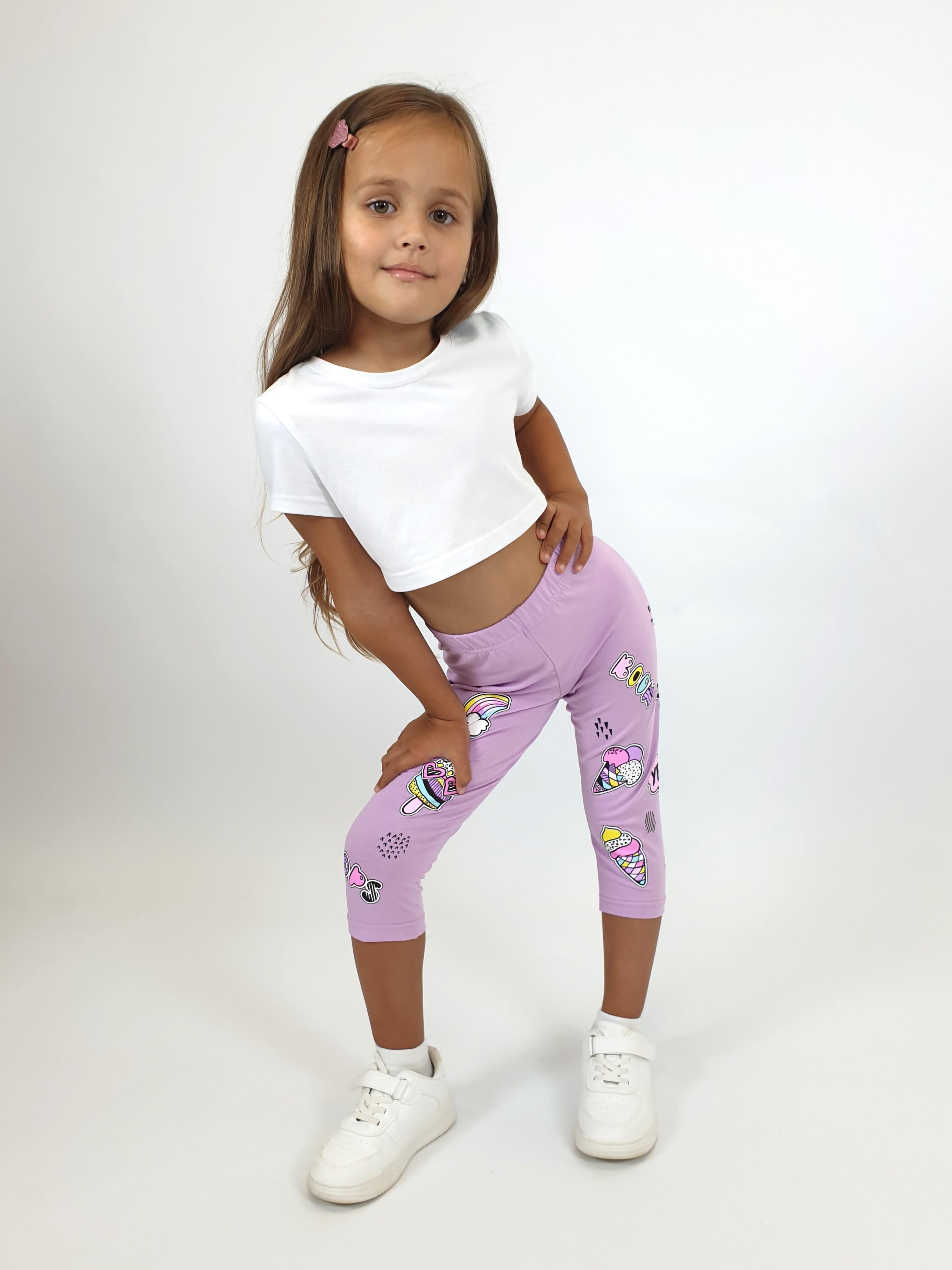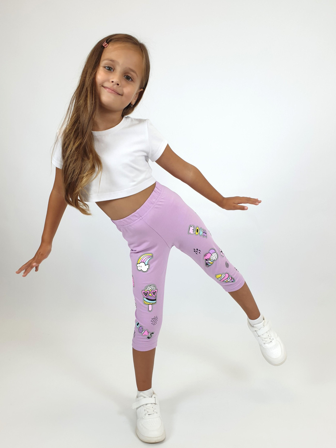 Кулирное полотно:95% х/б,5% лайкра. Лосины-укороченные с печатью,без бокового шва.