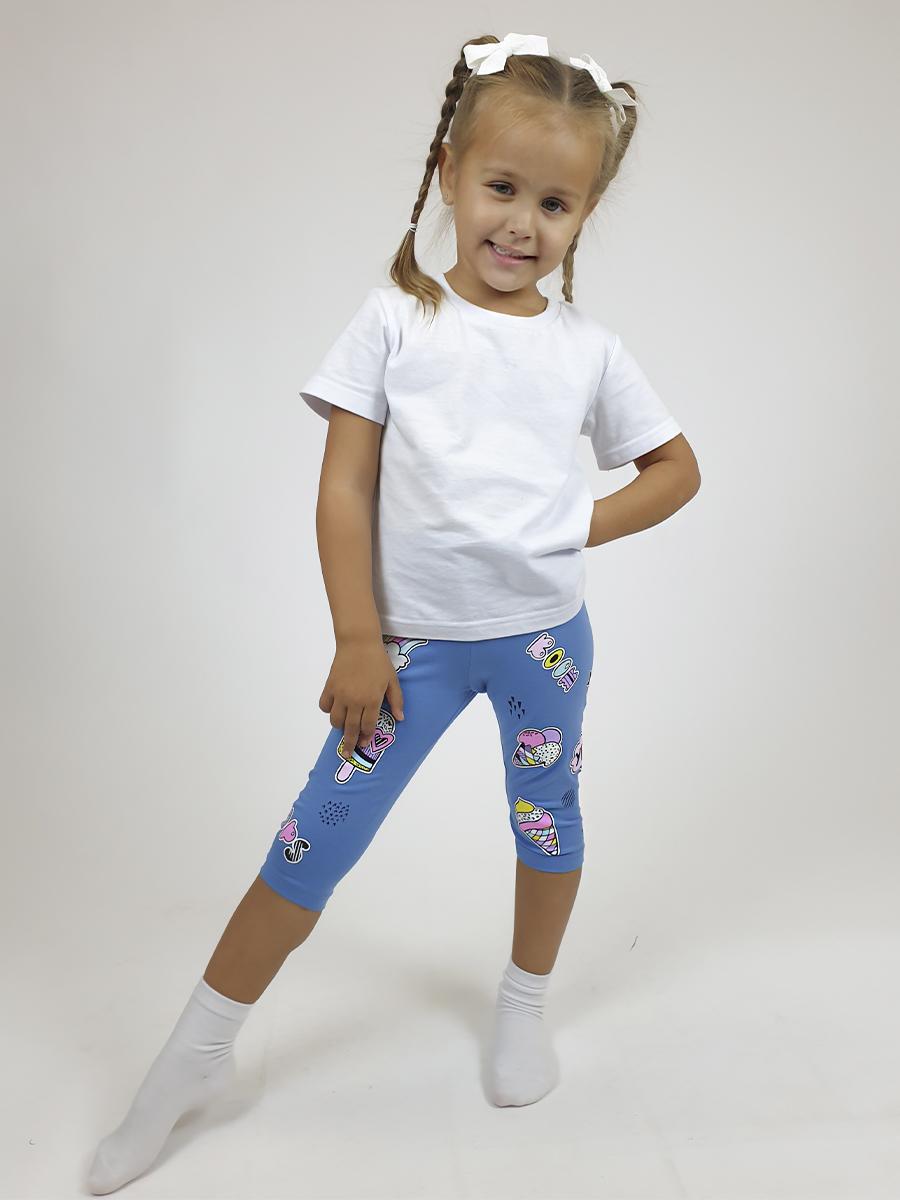 Кулирное полотно:95% х/б,5% лайкра. Лосины-укороченные с печатью,без бокового шва.
