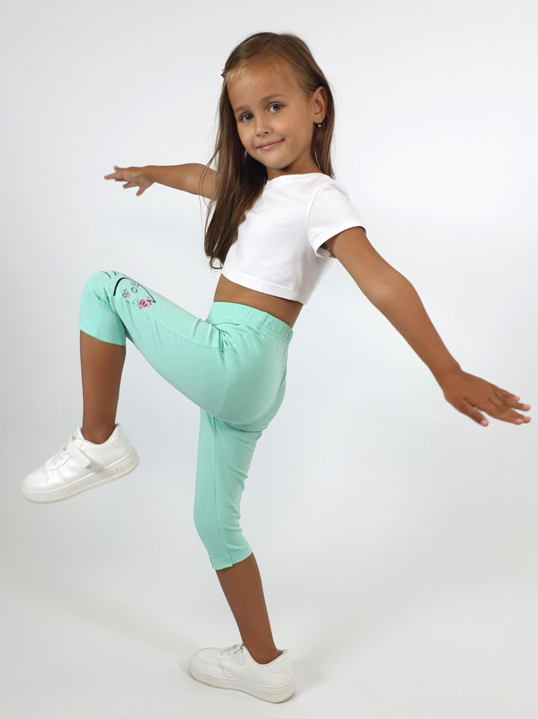 Кулирное полотно:95% х/б,5% лайкра. Лосины-укороченные с боковым швом, с печатью на передних половинках.