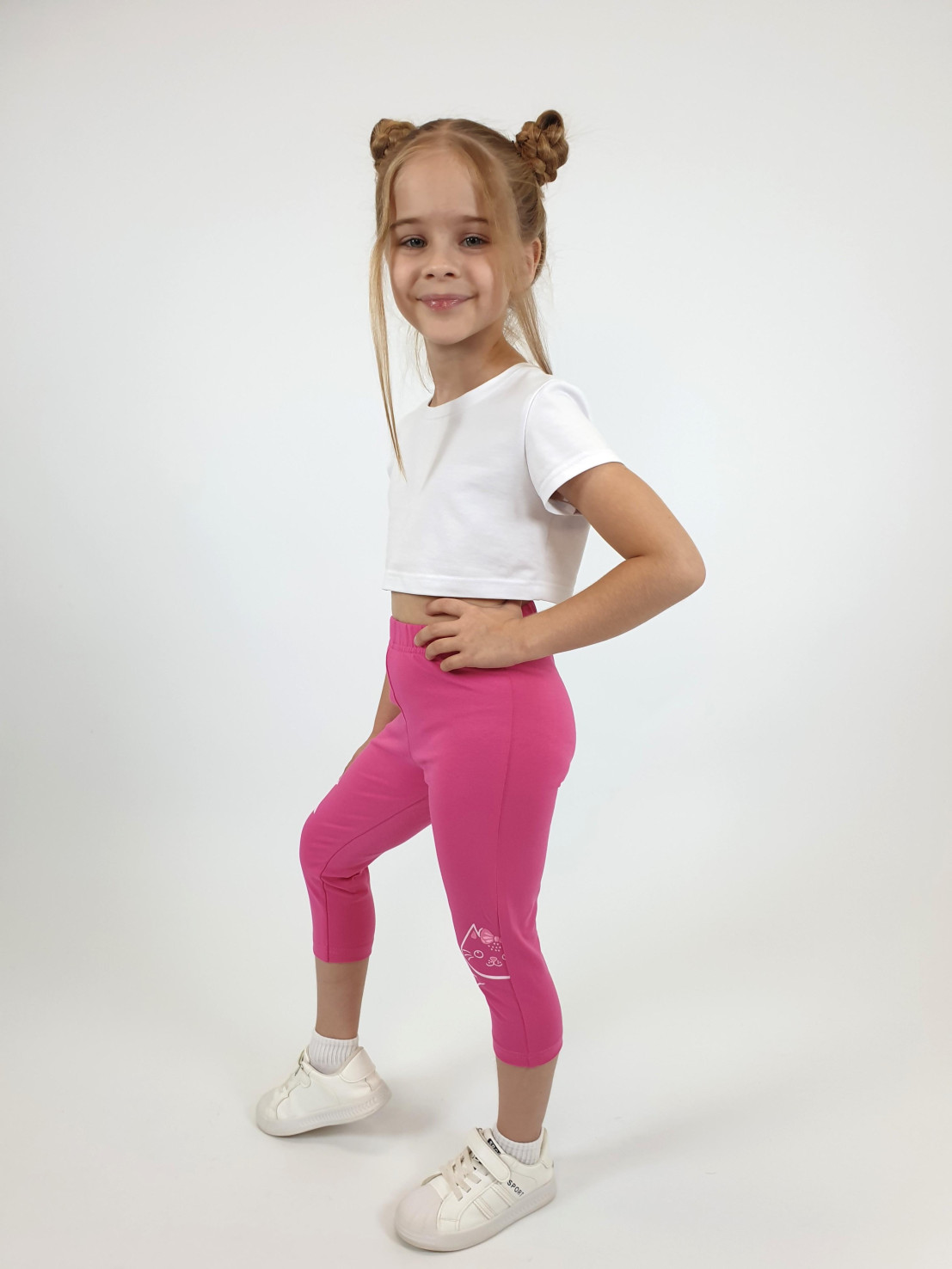 Кулирное полотно:95% х/б,5% лайкра. Лосины-укороченные с боковым швом, с печатью на передних половинках.