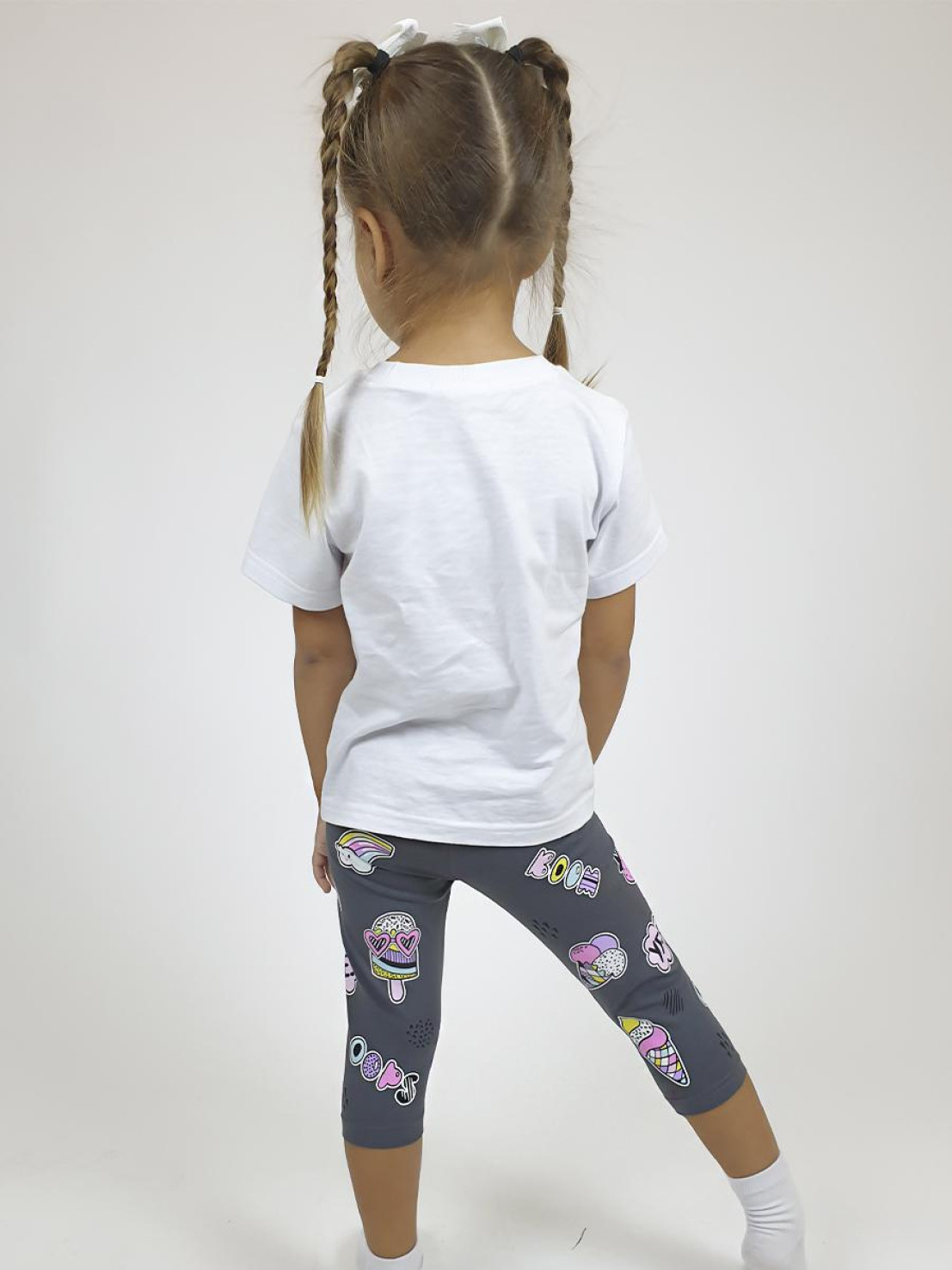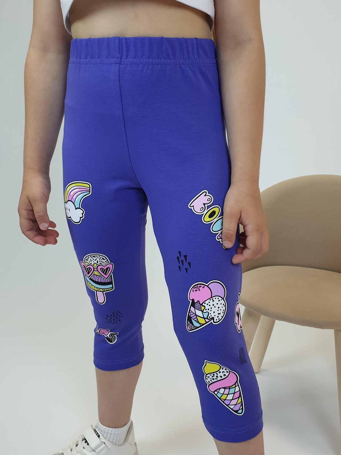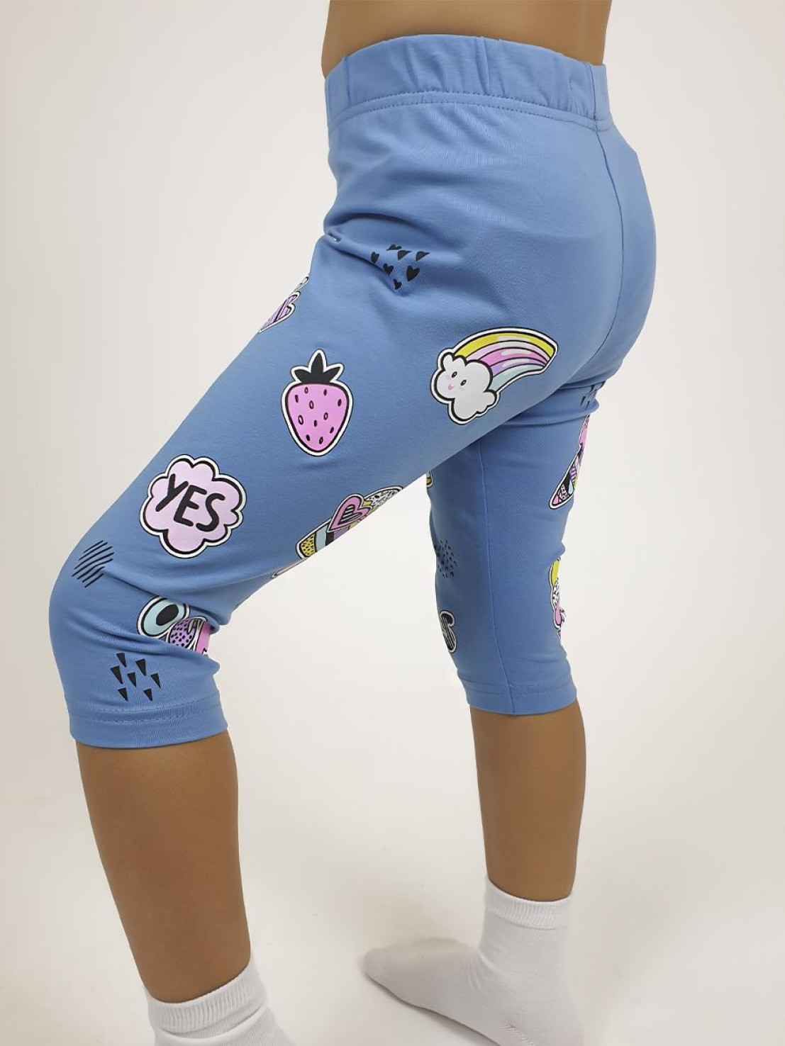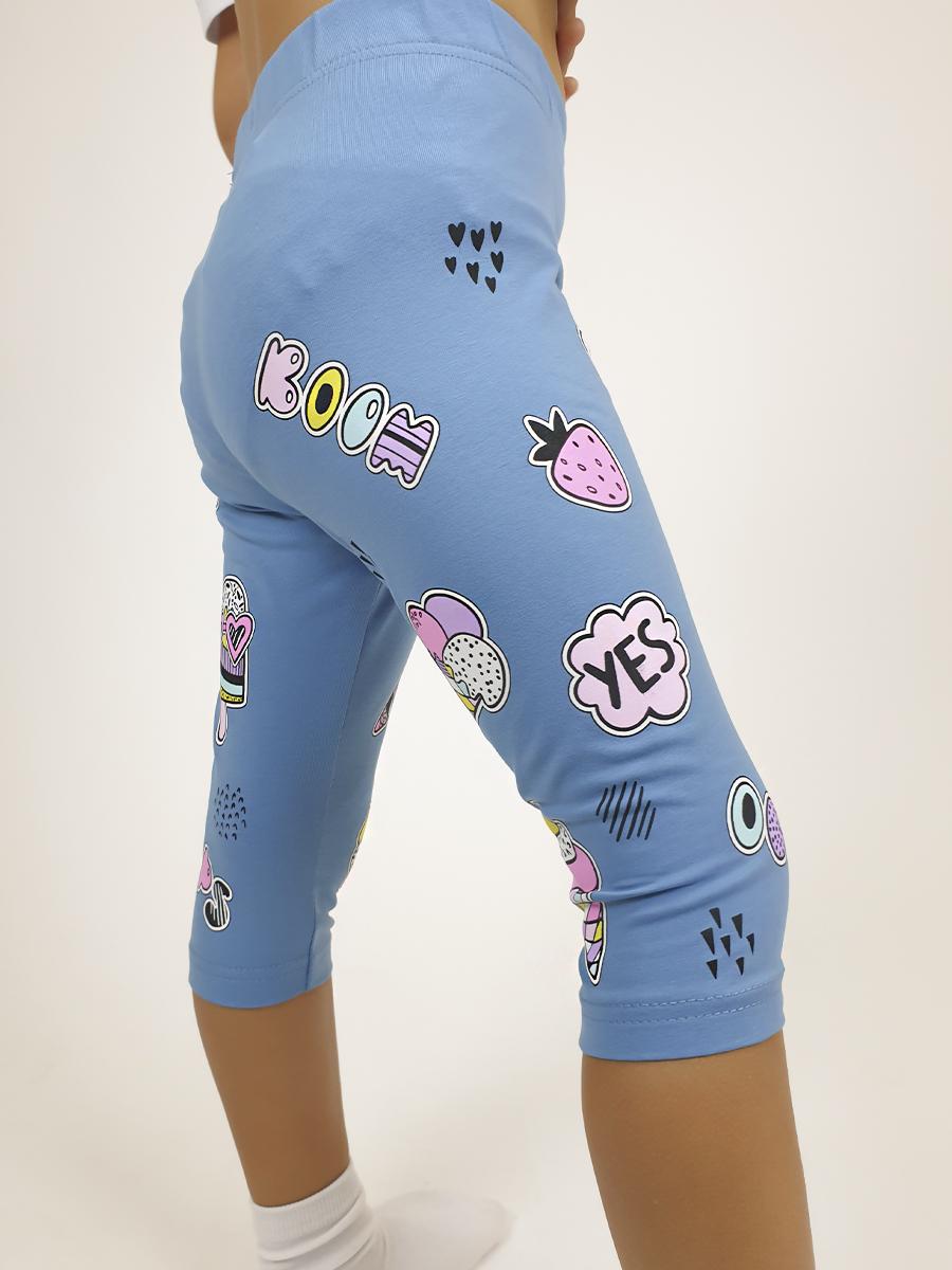Кулирное полотно:95% х/б,5% лайкра. Лосины-укороченные с печатью,без бокового шва.