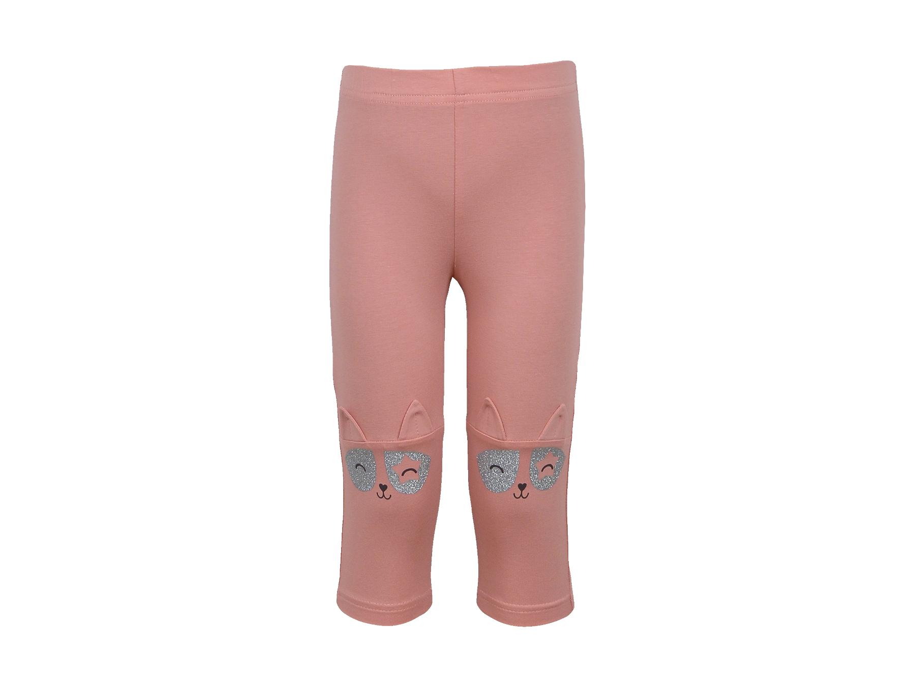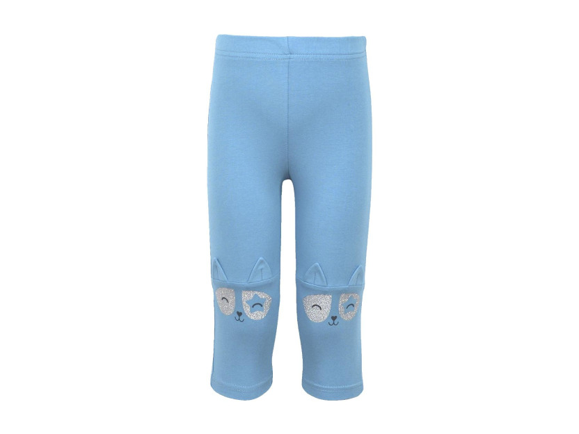Кулирное полотно:95% х/б.,5% лайкра. Лосины-укороченные, передние половинки с подрезами и печатью, в шов подрезов вставлены "ушки".
