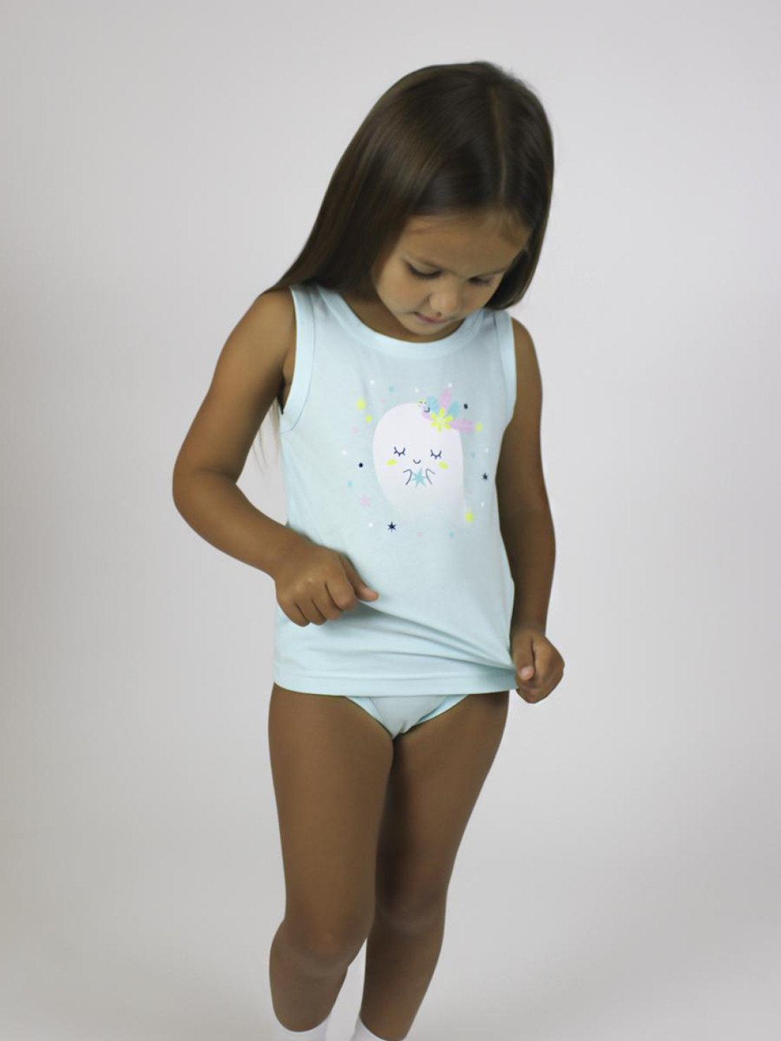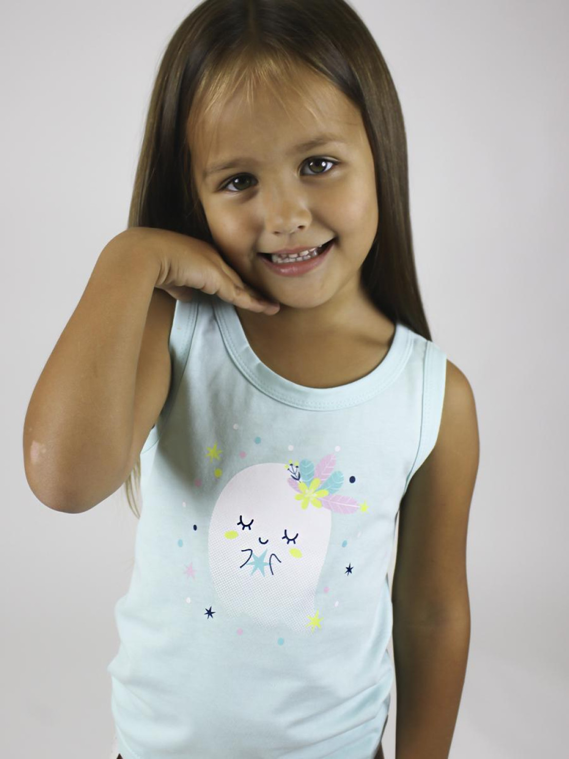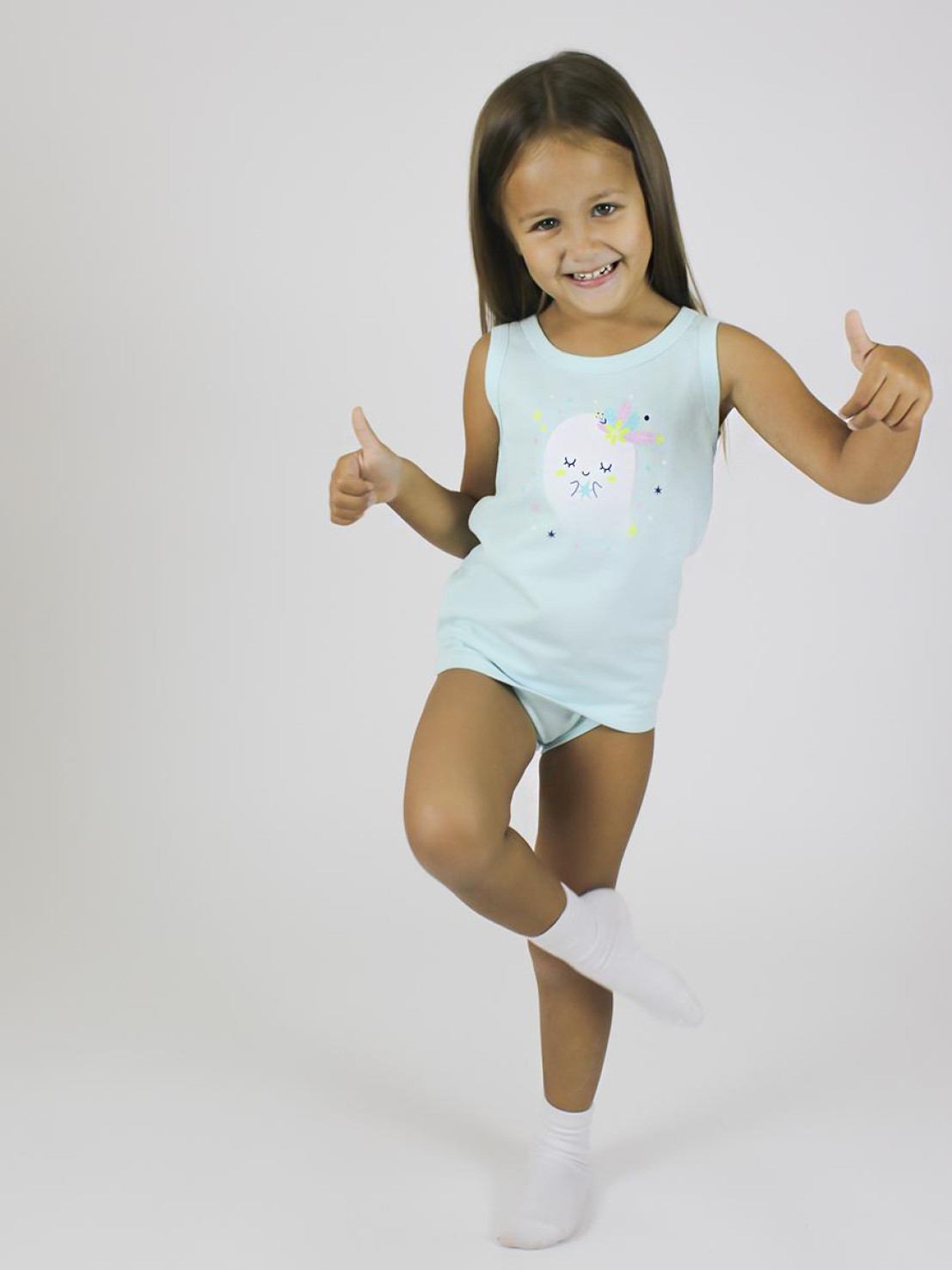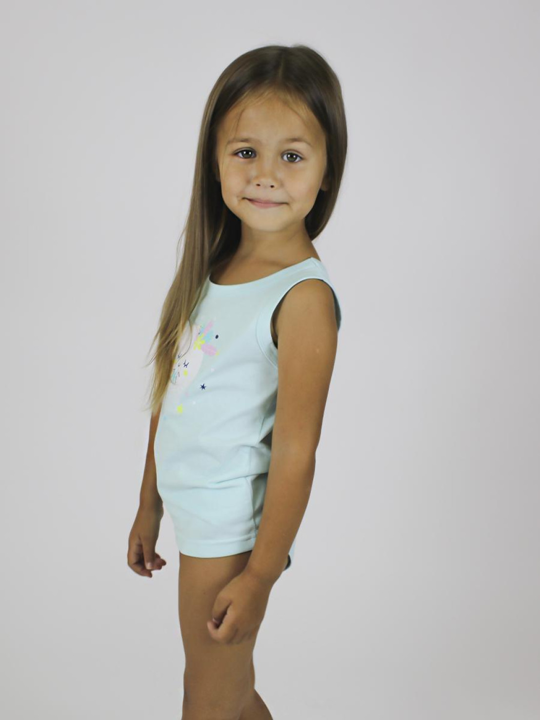 Кулирное полотно: 100% х/б. Майка-печать на переде,горловина и пройма окантованы. Трусы-на резинке,сзади печать,ножки окантованы.