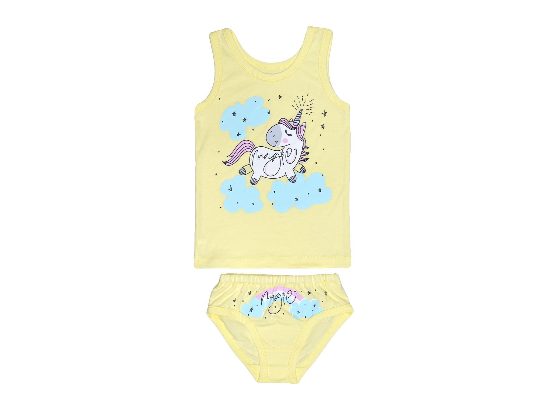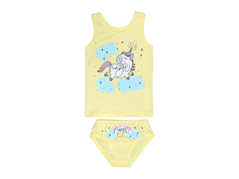 Кулирное полотно: 100% х/б. Майка-прямая,печать на переде.Горловина и пройма окантованы. Трусы на резинке,перед с печатью,ножки окантованы.
