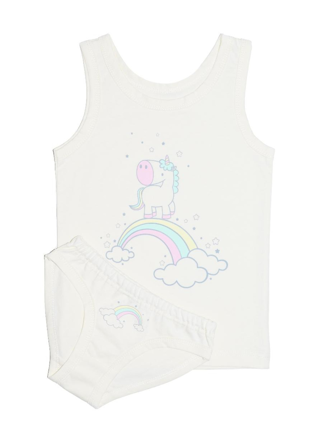 Кулирное полотно: 100% х/б. Майка-печать на переде,горловина и пройма окантованы. Трусы-на резинке,ножки окантованы.Печать на переде.