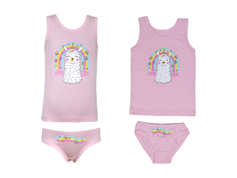 Кулирное полотно: 100% х/б. Майка-печать на переде,горловина и пройма окантованы.Трусы-на резинке,перед с печатью,ножки окантованы.
