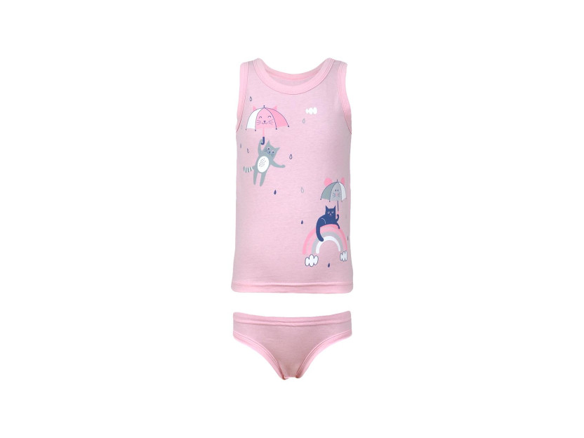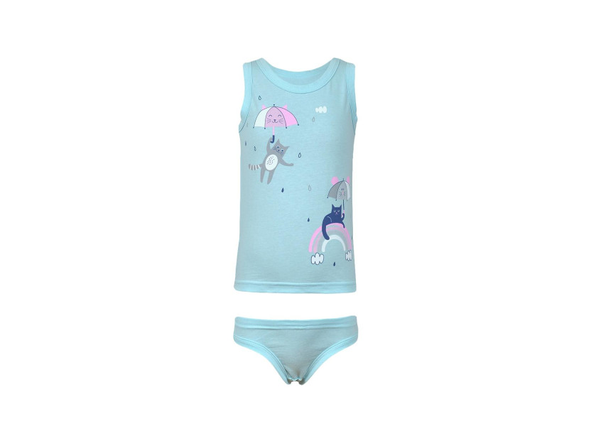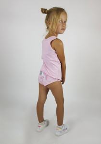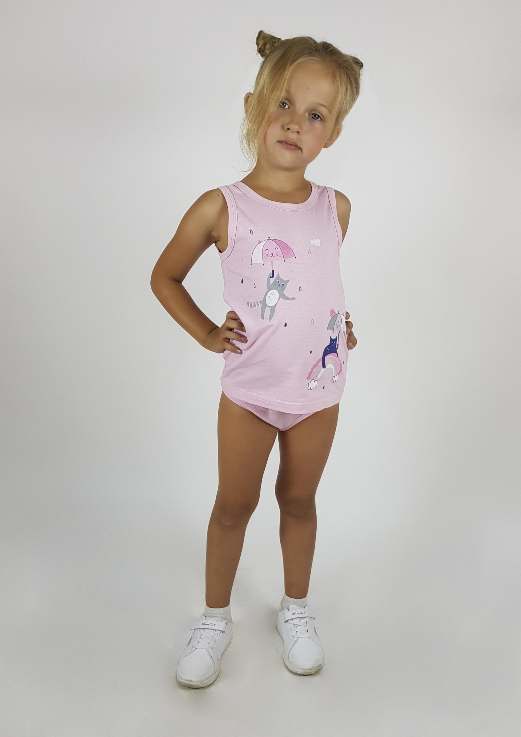 Кулирное полотно:100% х/б. Майка-печать на переде,горловина и пройма окантованы. Трусы-на резинке,сзади печать,ножки окантованы.