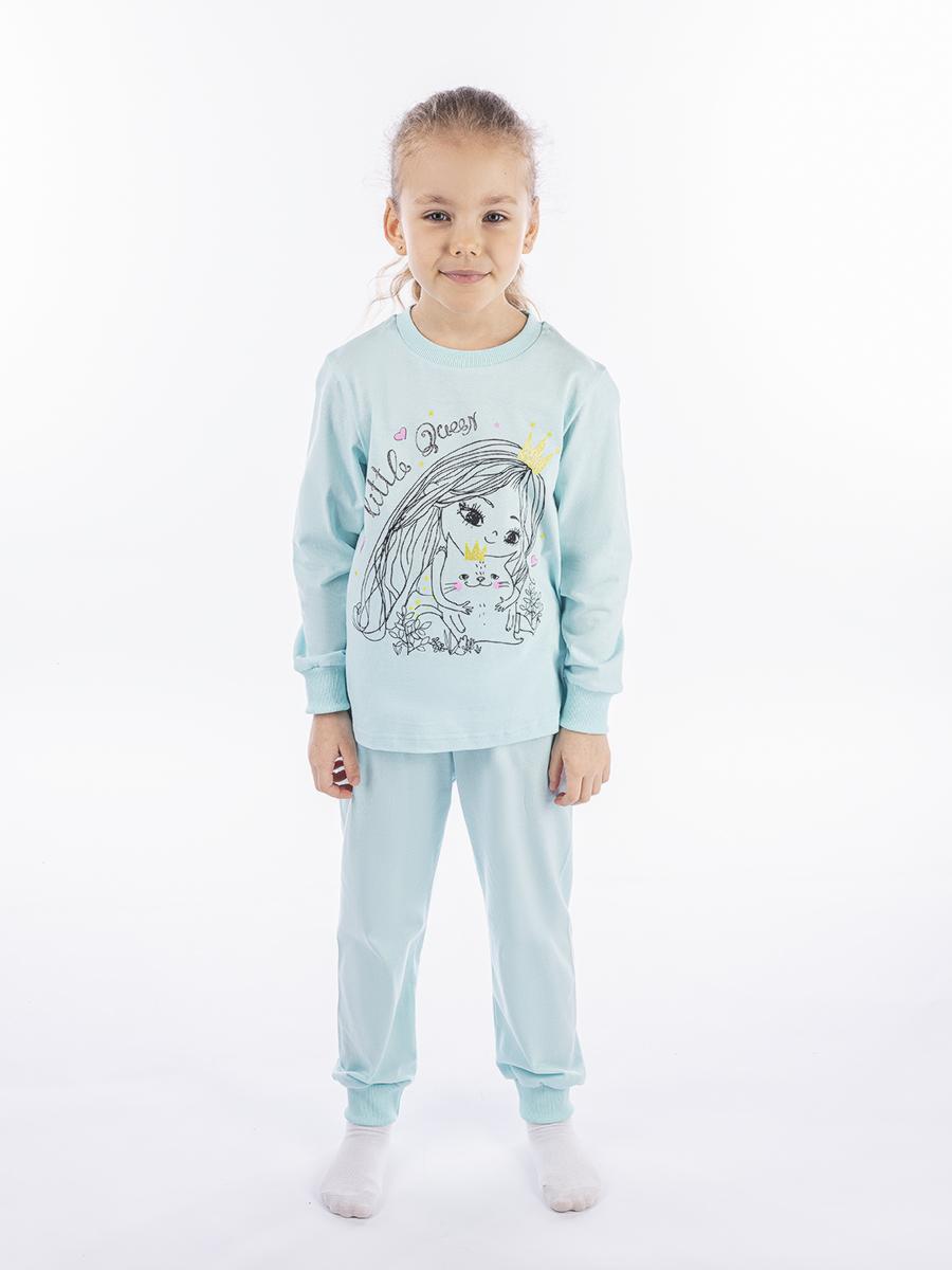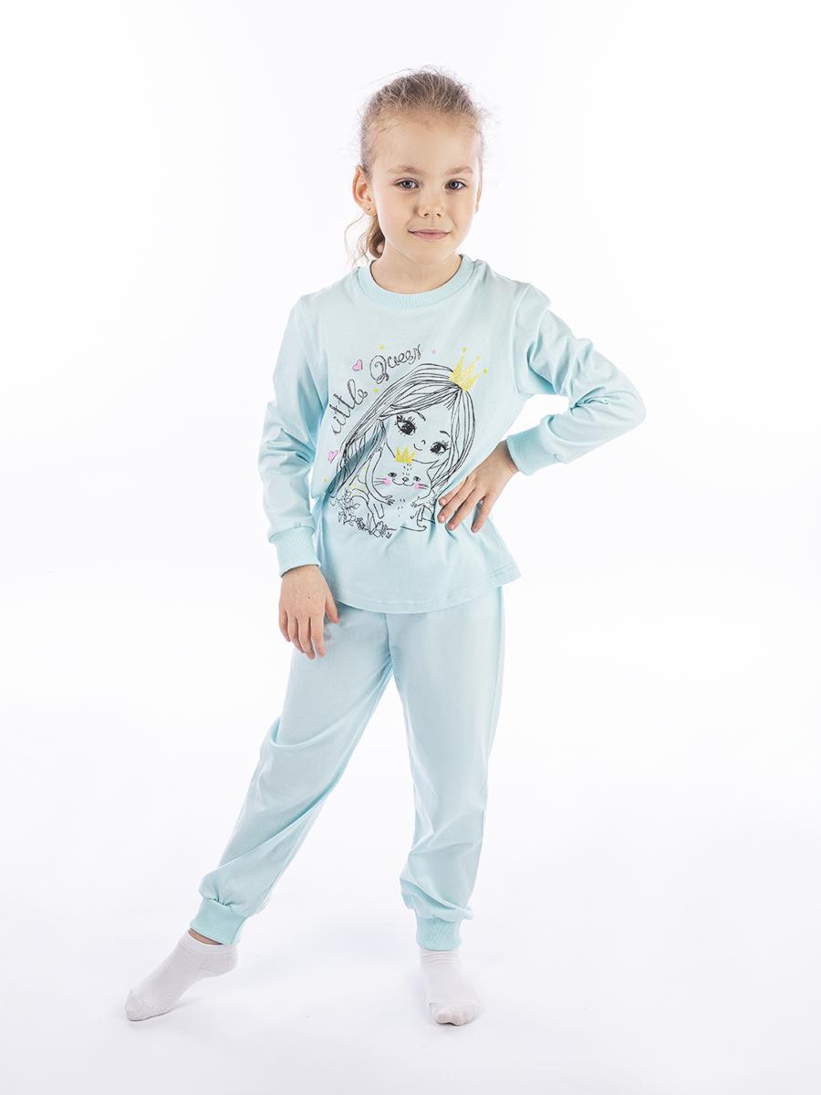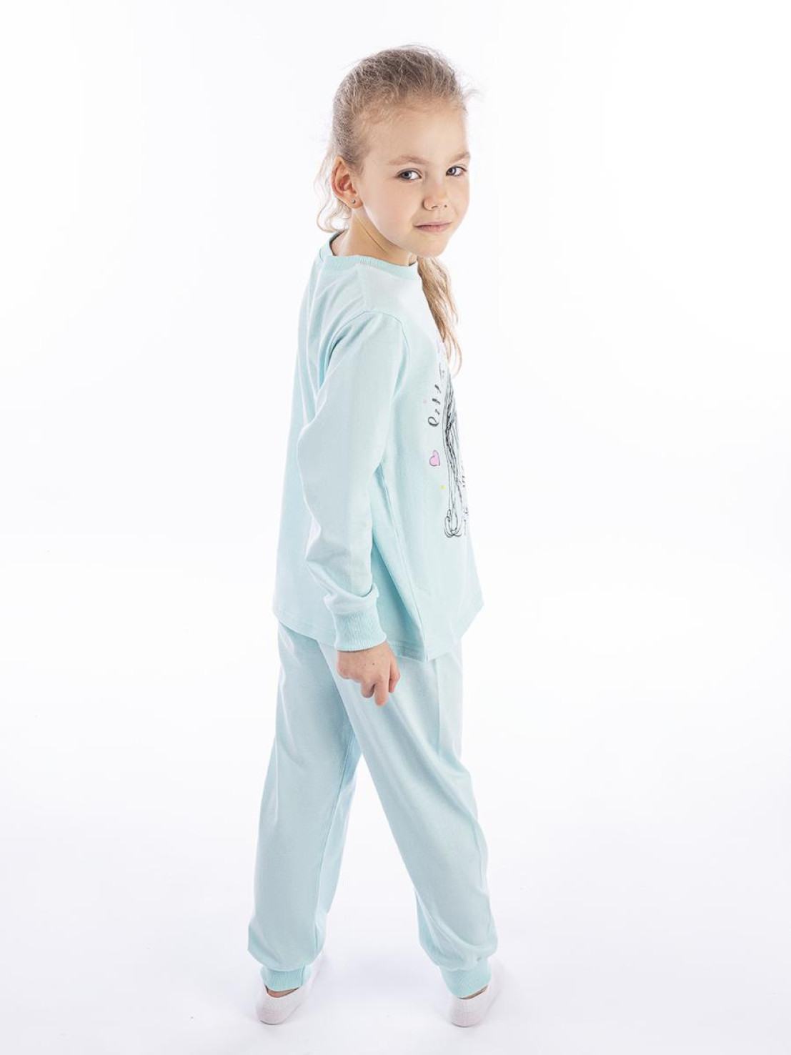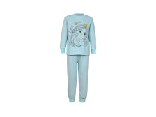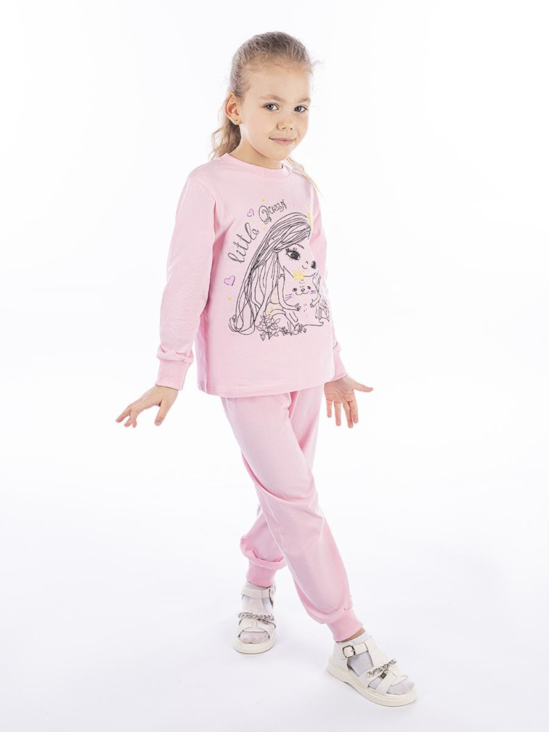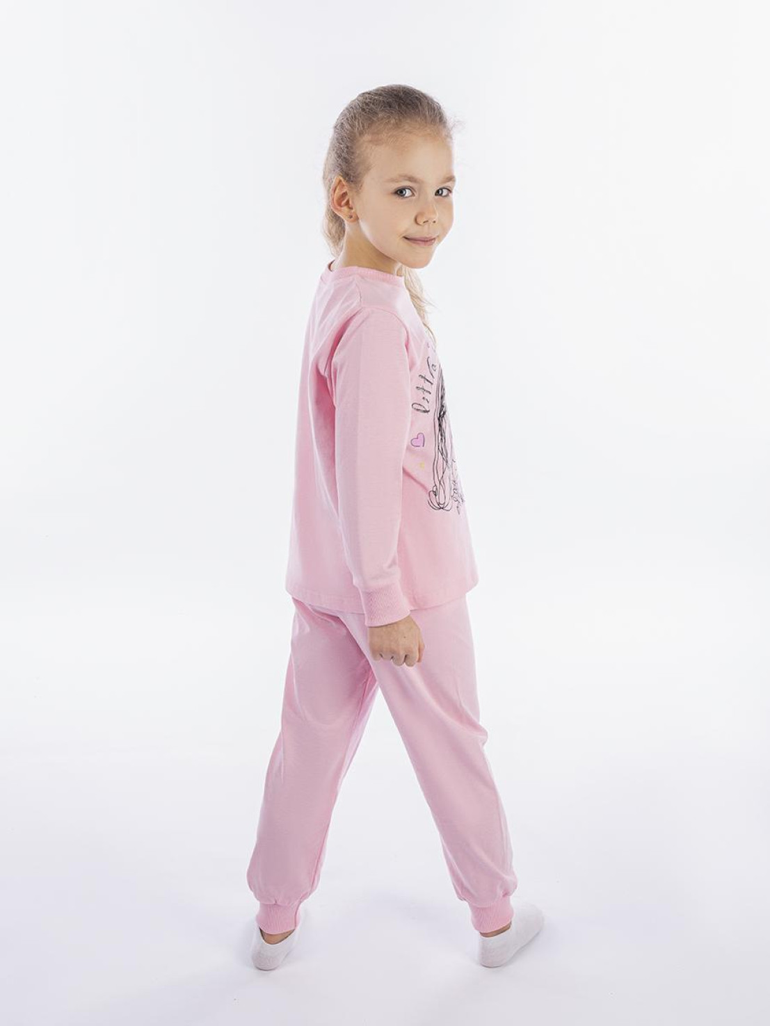Кулирное полотно:100% х/б. Фуфайка-прямая,рукав втачной,длинный на манжете из ластика. Горловина обработана ластиком.Печать на переде. Брюки-длинные на манжете из ластика.Верхний срез подшит с резинкой.