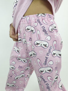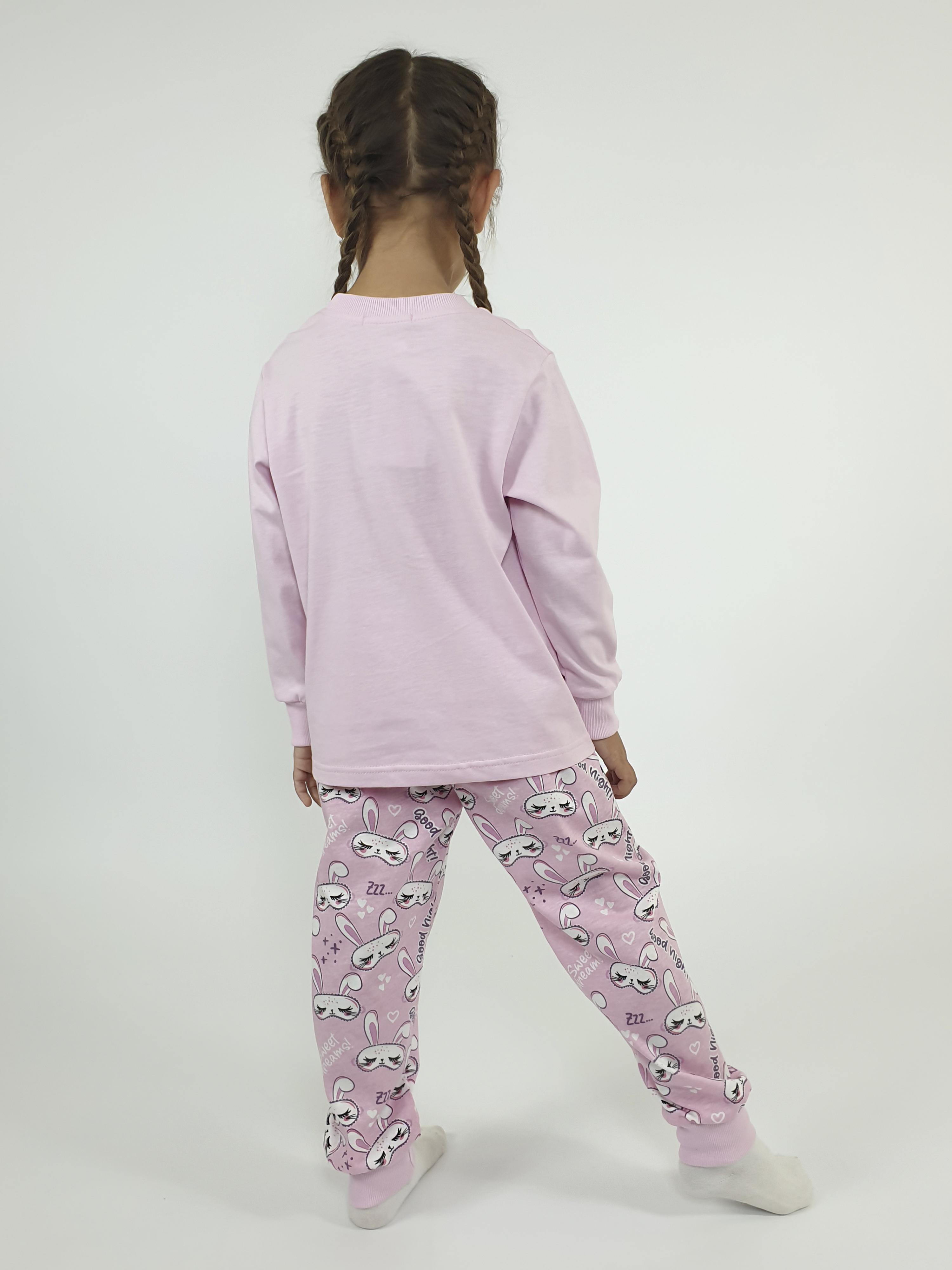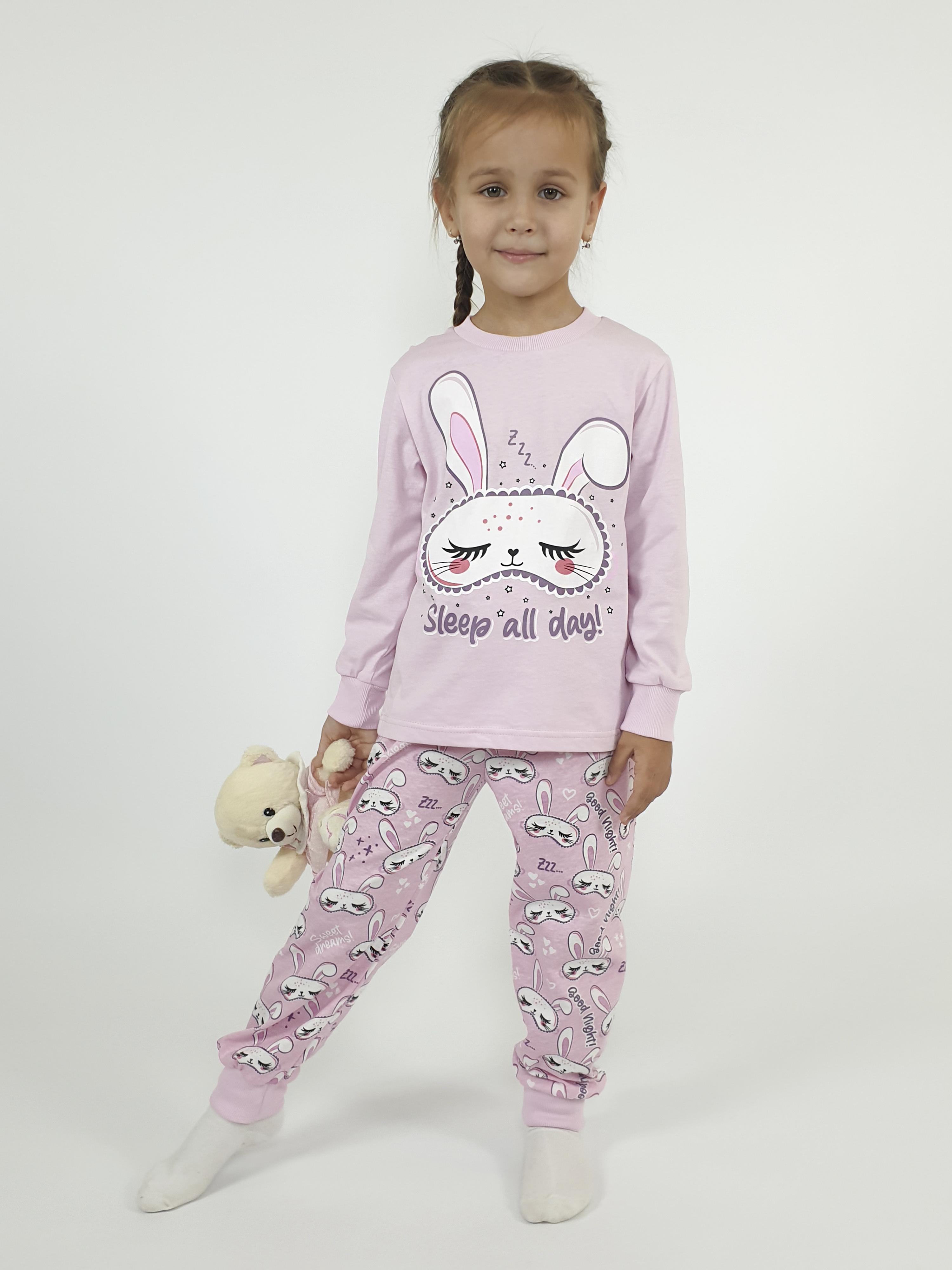 Кулирное полотно:100% х/б. Фуфайка-прямая,рукав втачной,длинный на манжете из ластика.Горловина обработана ластиком.Печать на переде. Брюки-длинные на манжете из ластика.Верхний срез подшит с резинкой.