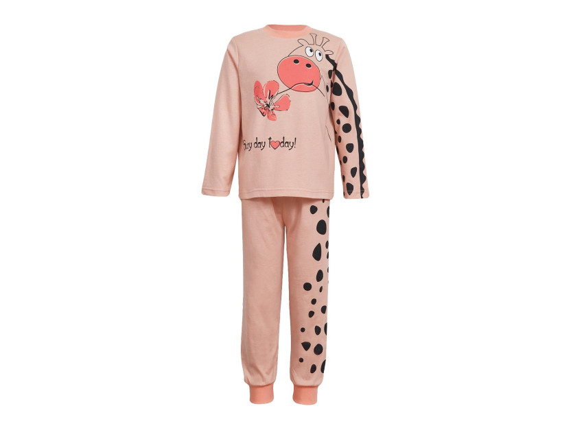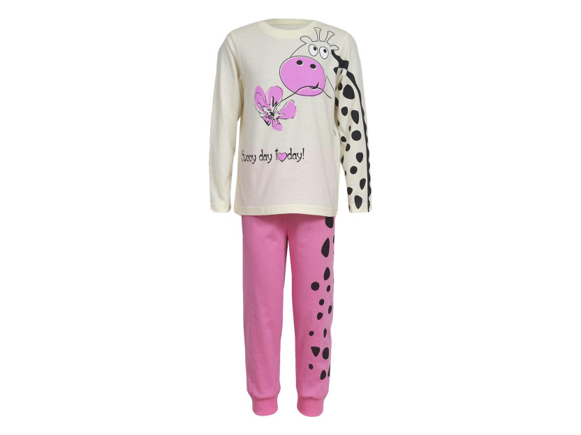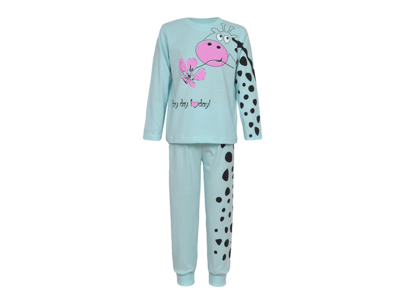 Пижама. Кулирное полотно:100% х/б. Фуфайка-прямого силуэта,перед с печатью.Рукав(левый) длинный с печатью.Горловина обработана ластиком. Брюки-длинные на манжете из ластика.Верхний срез подшит с резинкой.Левая передняя половинка брюк с печатью.