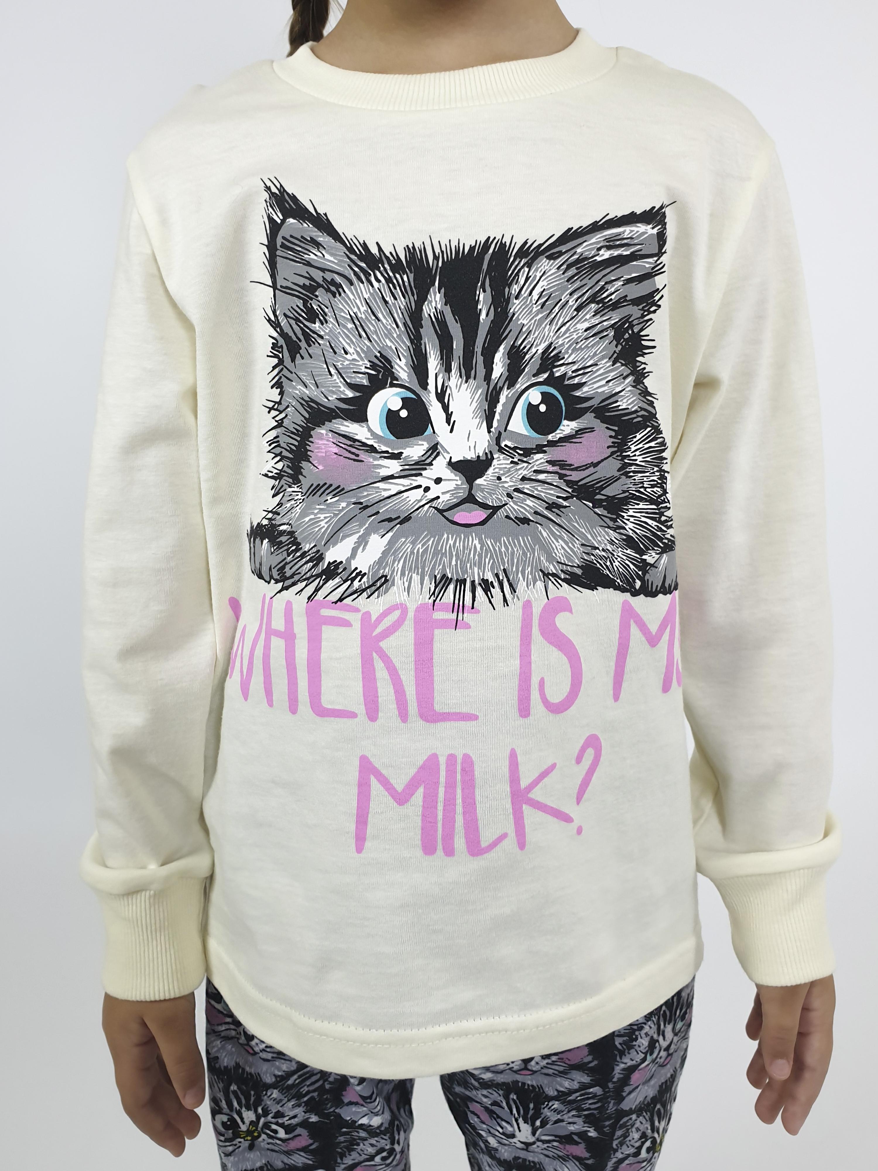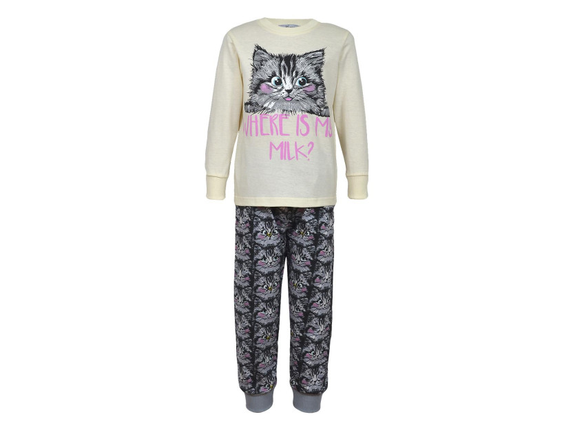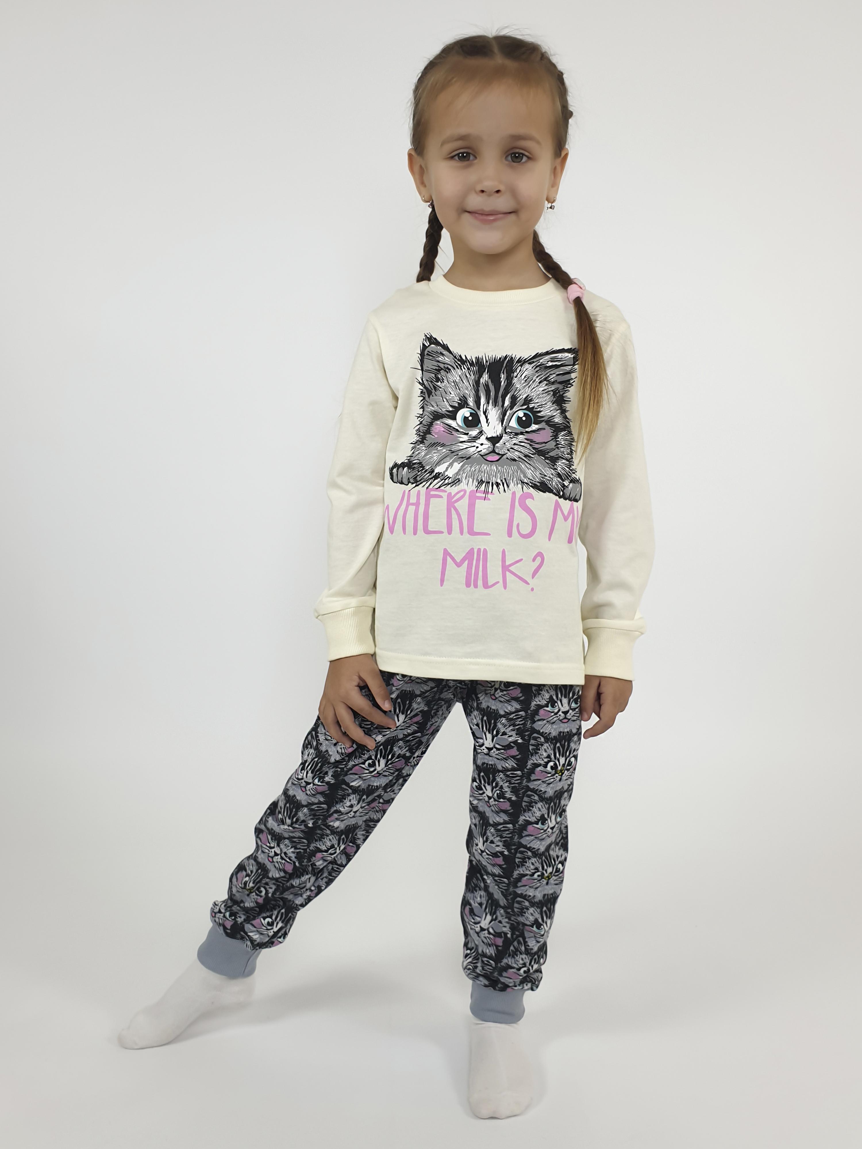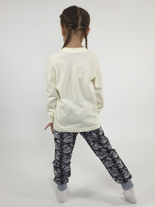 Пижама. Кулирное полотно:100% х/б. Фуфайка-прямая,рукав втачной длинный на манжете из ластика.Горловина обработана ластиком.Печать на переде. Брюки-длинные на манжете из ластика.Верхний срез подшит с резинкой.