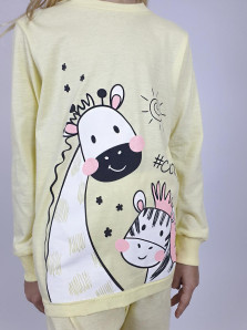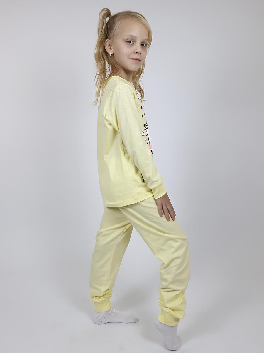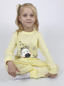 Пижама. Кулирное полотно:100% х/б. Фуфайка-прямая,рукав втачной длинный на манжете из ластика.Горловина обработана ластиком.Печать на переде. Брюки-длинные на манжете из ластика.Верхний срез подшит с резинкой.