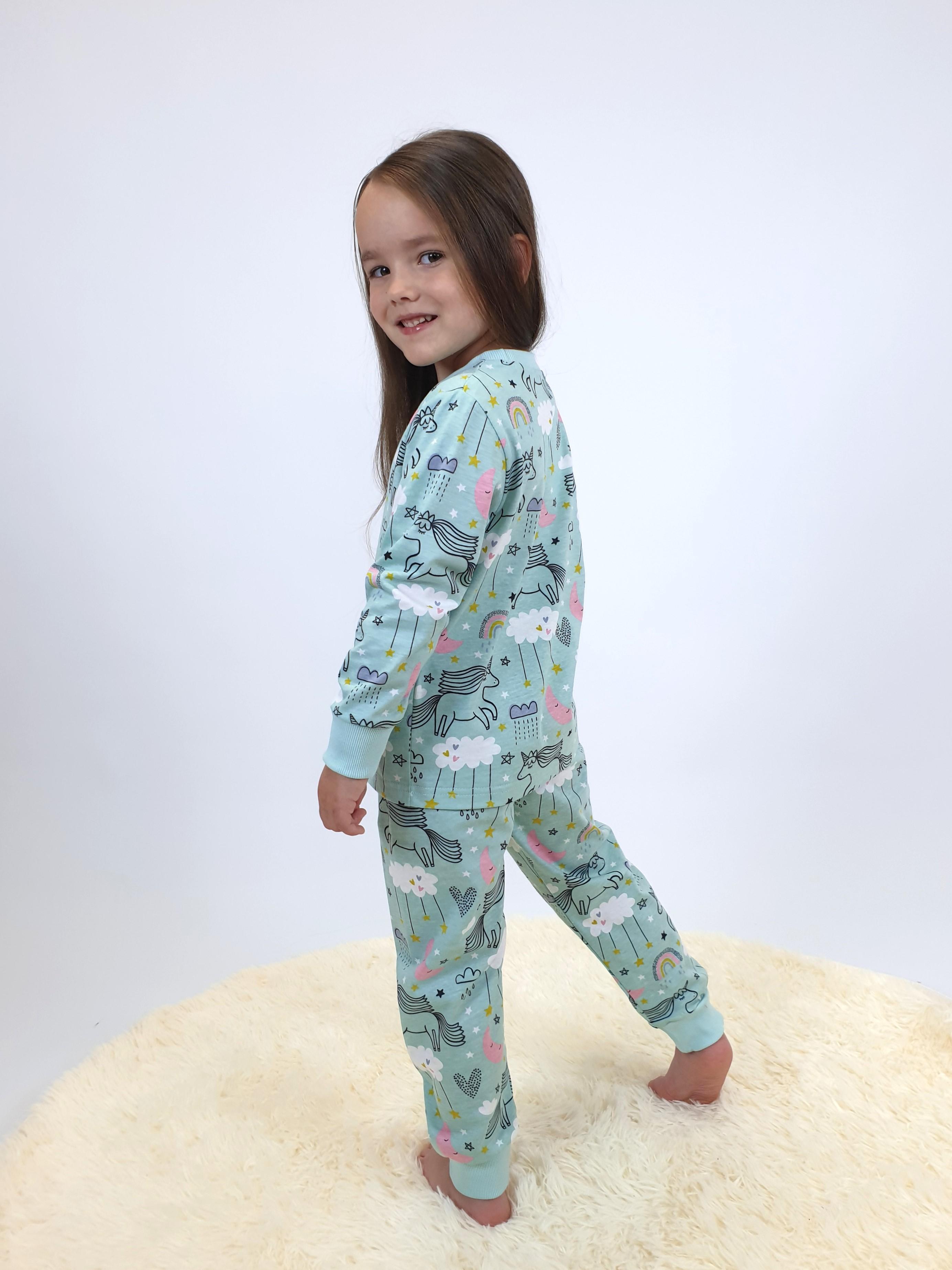 Кулирное полотно:100% х/б. Фуфайка-прямая,рукав втачной,длинный на манжете из ластика.Горловина обработана ластиком.Печать на переде. Брюки-длинные на манжете из ластика.Верхний срез подшит с резинкой.