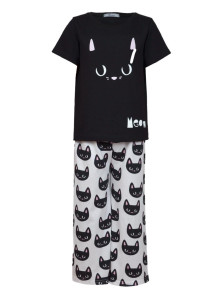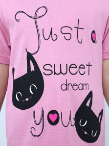 Кулирное полотно:100% х/б. Фуфайка-прямая,рукав втачной,короткий.Горловина обработана планкой.Печать на переде. Брюки-длинные,прямые,верхний срез подшит с резинкой.
