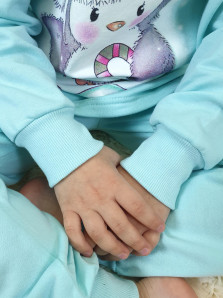 Пижама. Футер:100% х/б. Фуфайка-прямая,рукав втачной,длинный на манжете из ластика.Печать на переде. Брюки-длинные на манжете из ластика.Верхний срез подшит с резинкой.