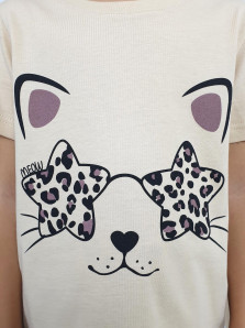 Кулирное полотно:100% х/б. Фуфайка(пижамная)-прямая,рукав втачной,короткий.Горловина обработана планкой.Печать на переде. Брюки(пижамные)-длинные прямые,верхний срез подшит с резинкой.