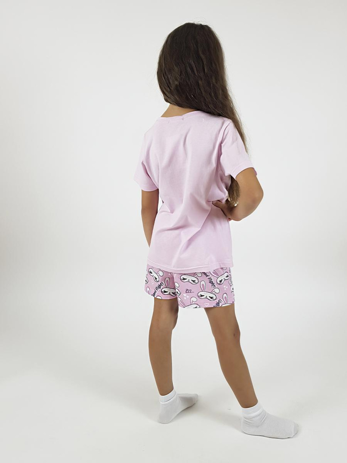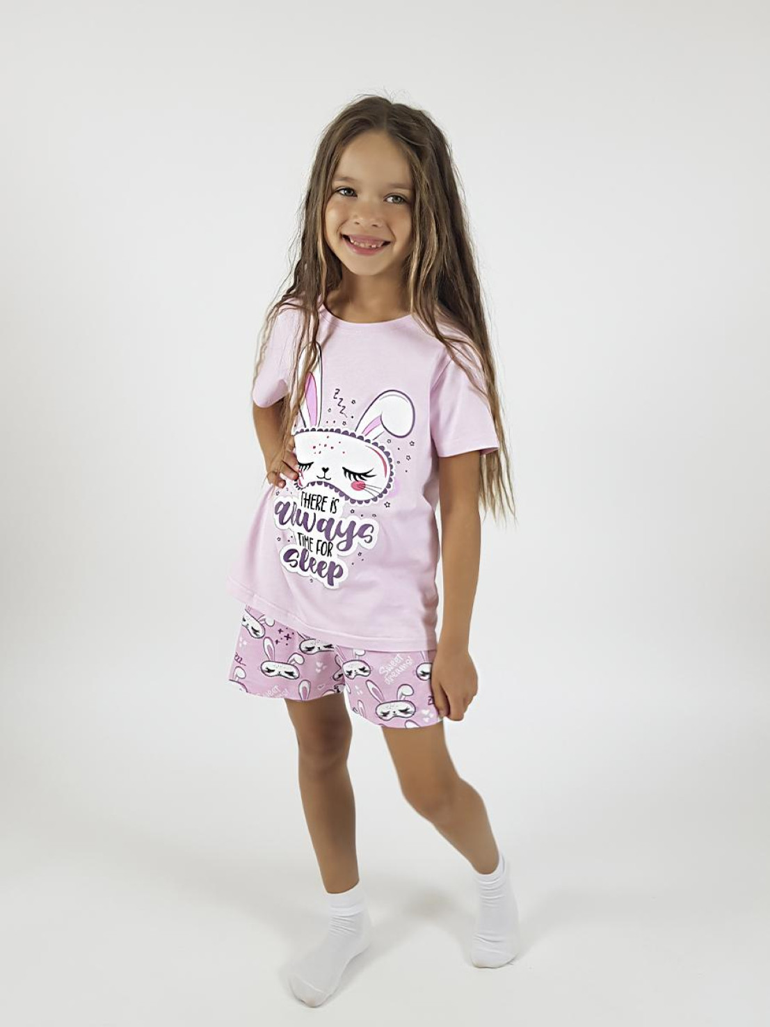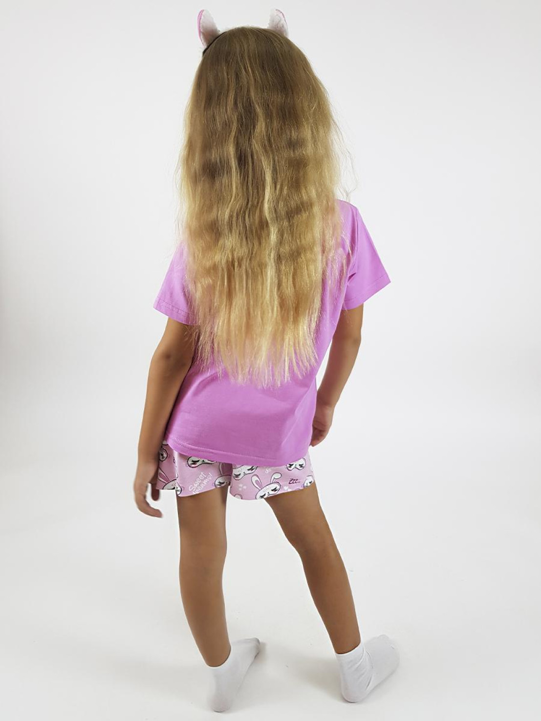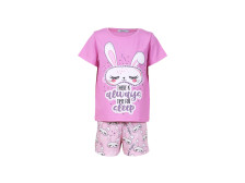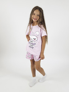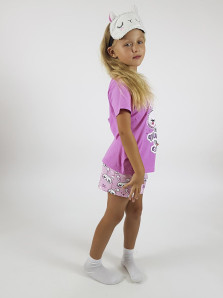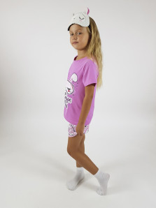 Кулирное полотно:100% х/б. Фуфайка-прямая,рукав втачной,короткий.Горловина обработана планкой.Печать на переде. Шорты-короткие на резинке.