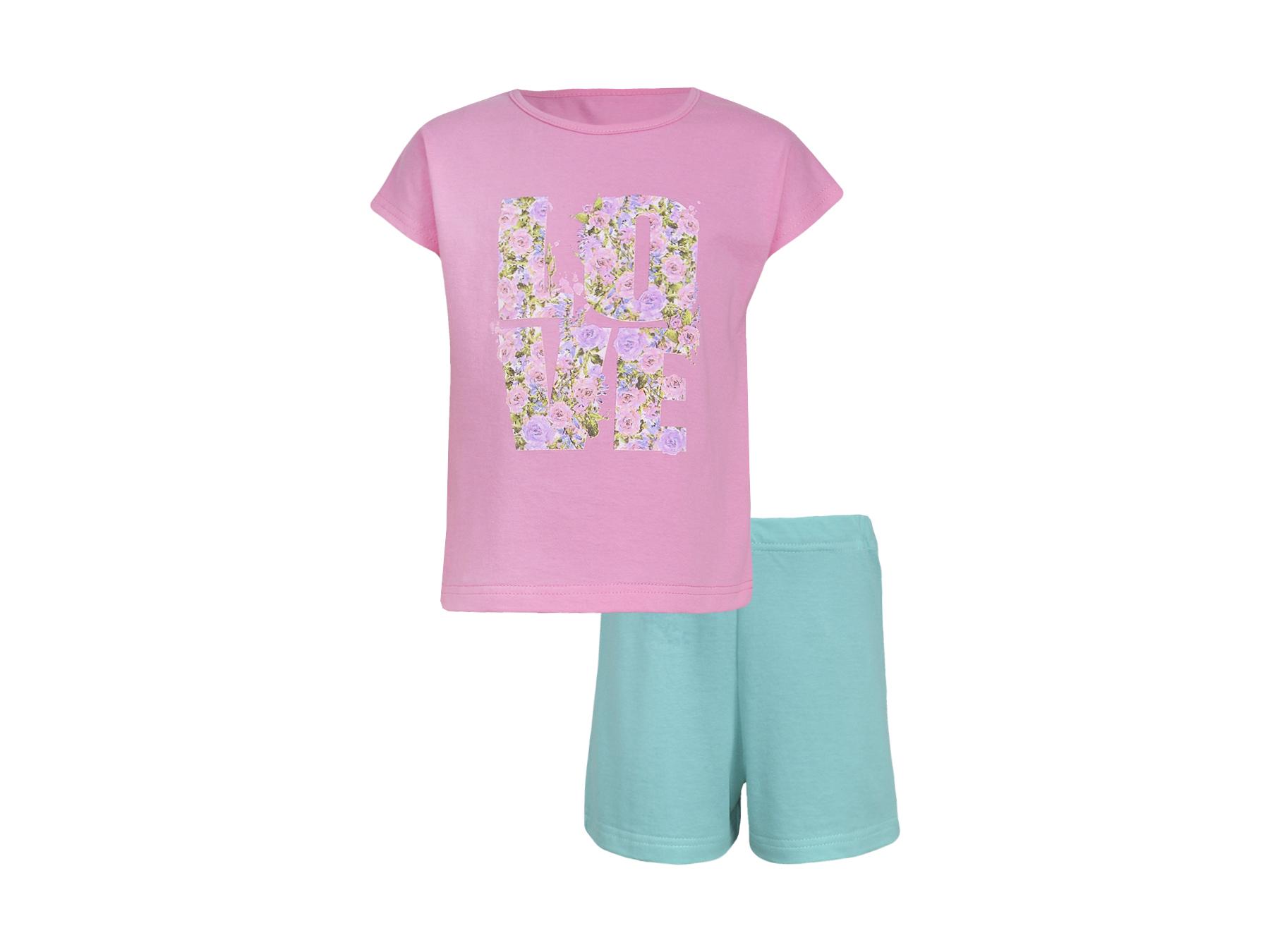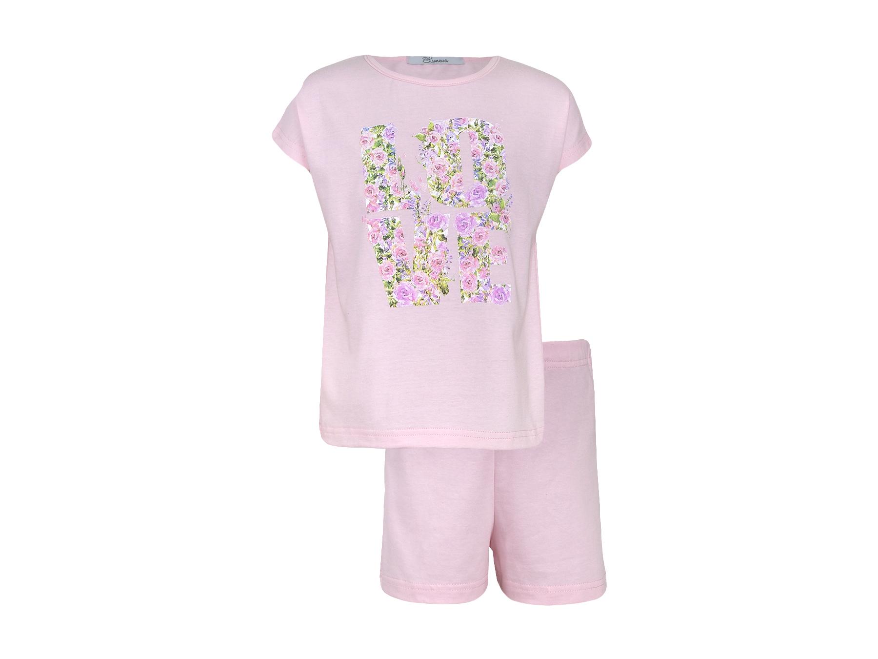 Пижама. Кулирное полотно:100% х/б. Фуфайка-с цельнокроеным,коротким рукавом.Перед с печатью.Горловина окантована.низ подшит. Шорты-короткие,на резинке.