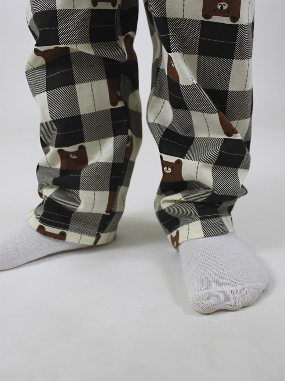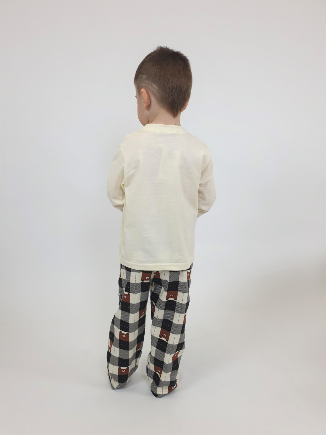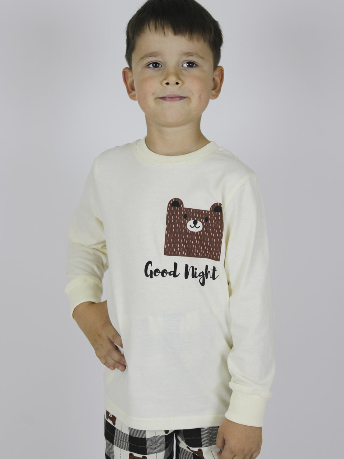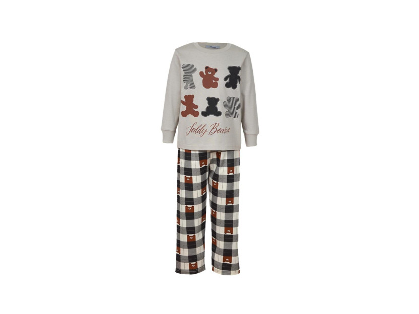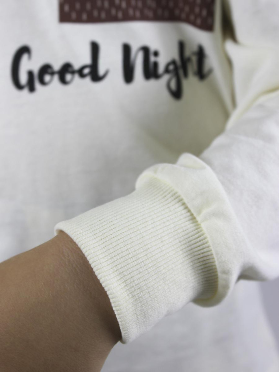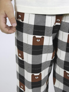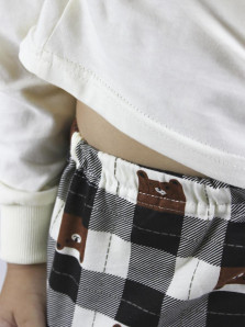 Кулирное полотно:(гладь+набивка):100% х/б. Фуфайка-прямая,рукав втачной,длинный на манжете из ластика.Печать на переде.Горловина обработана ластиком. Брюки-длинные прямые,верхний срез подшит с резинкой.