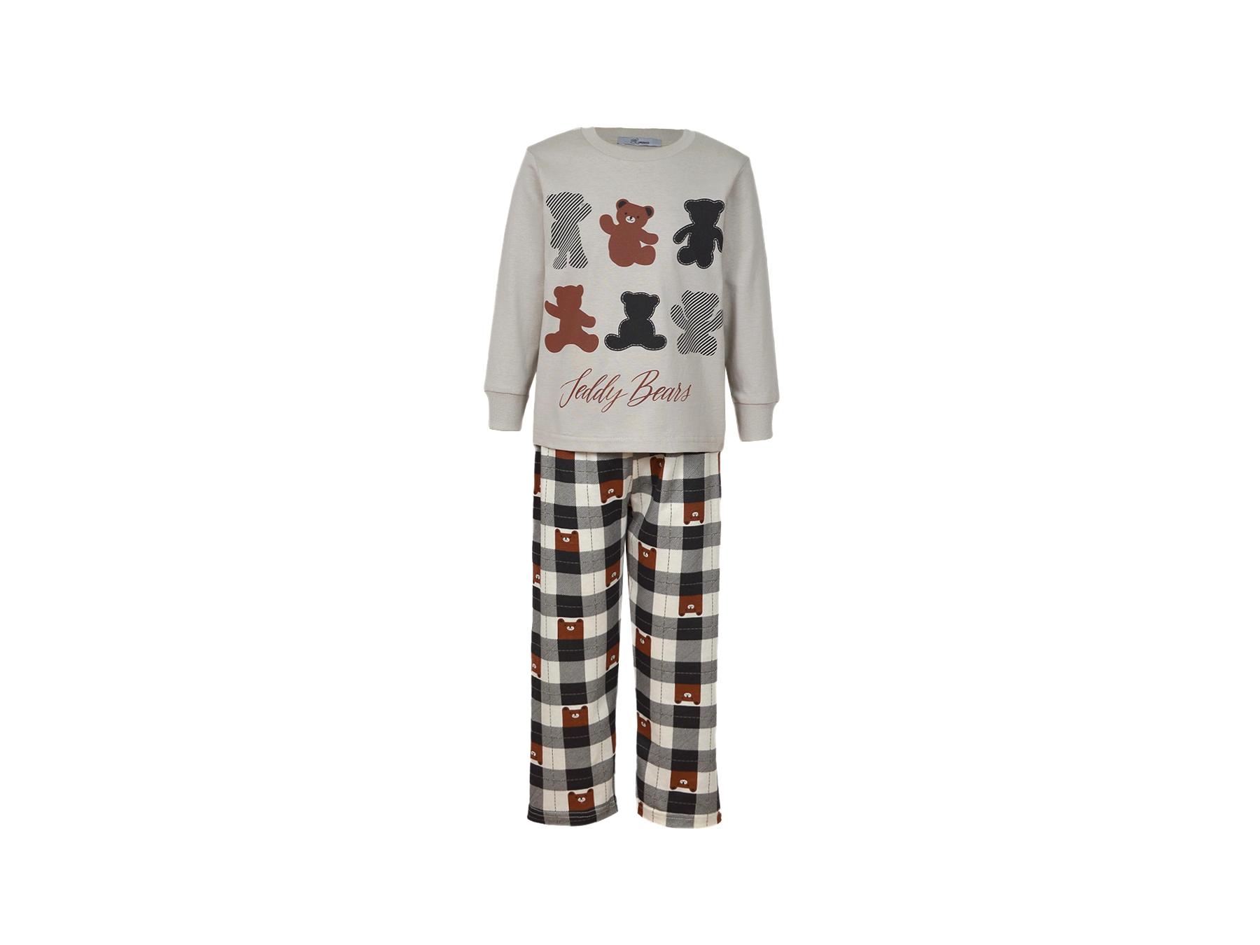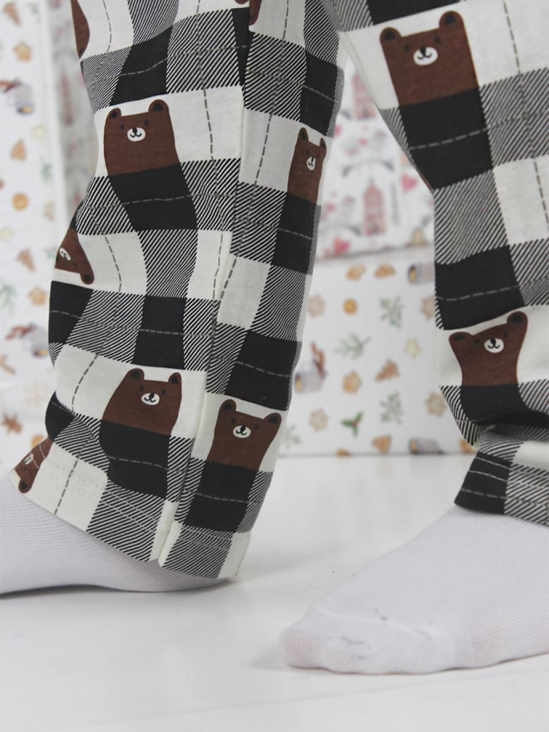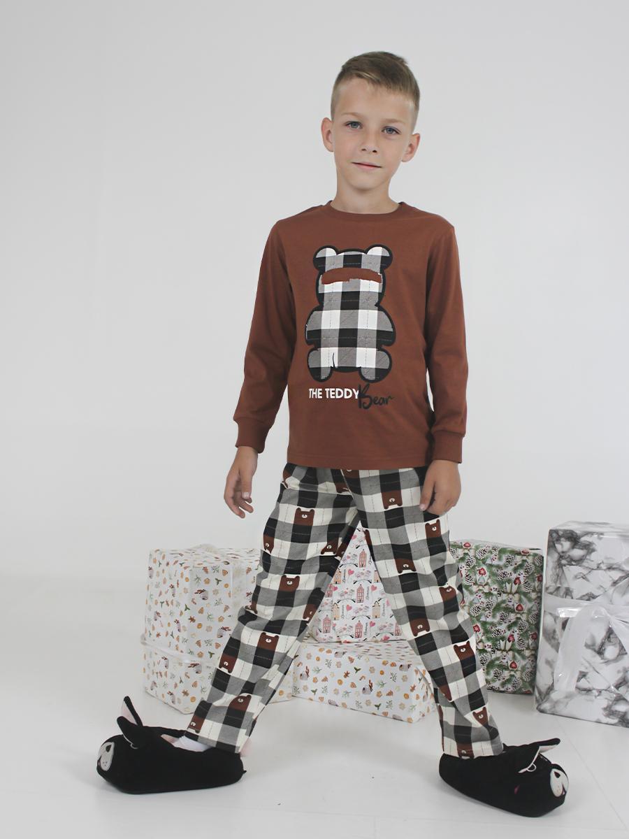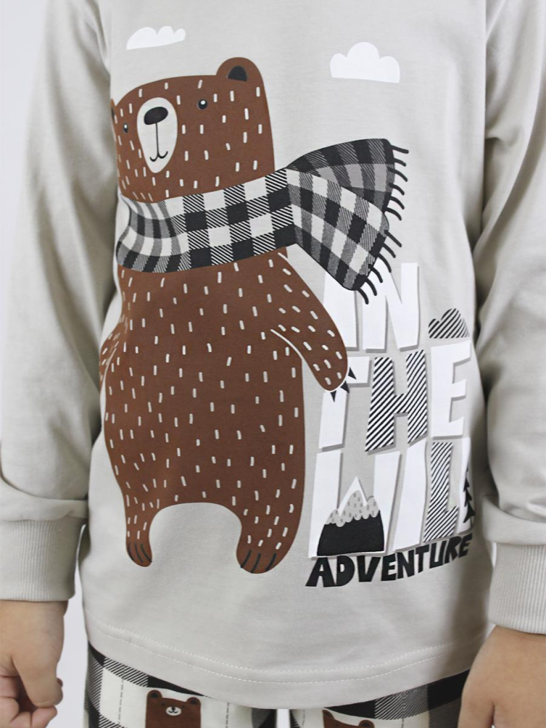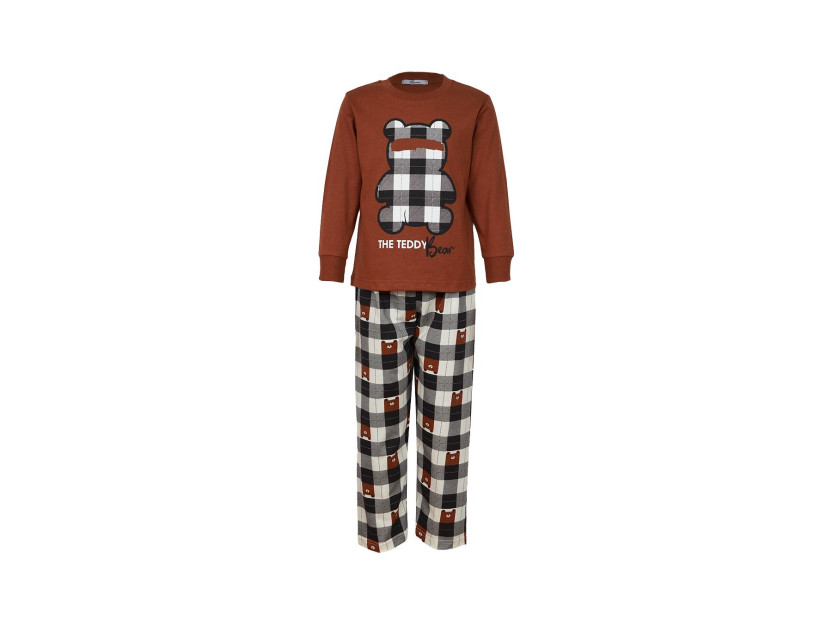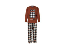 Кулирное полотно:(гладь+набивка):100% х/б. Фуфайка-прямая,рукав втачной,длинный на манжете из ластика.Печать на переде.Горловина обработана ластиком. Брюки-длинные прямые,верхний срез подшит с резинкой.