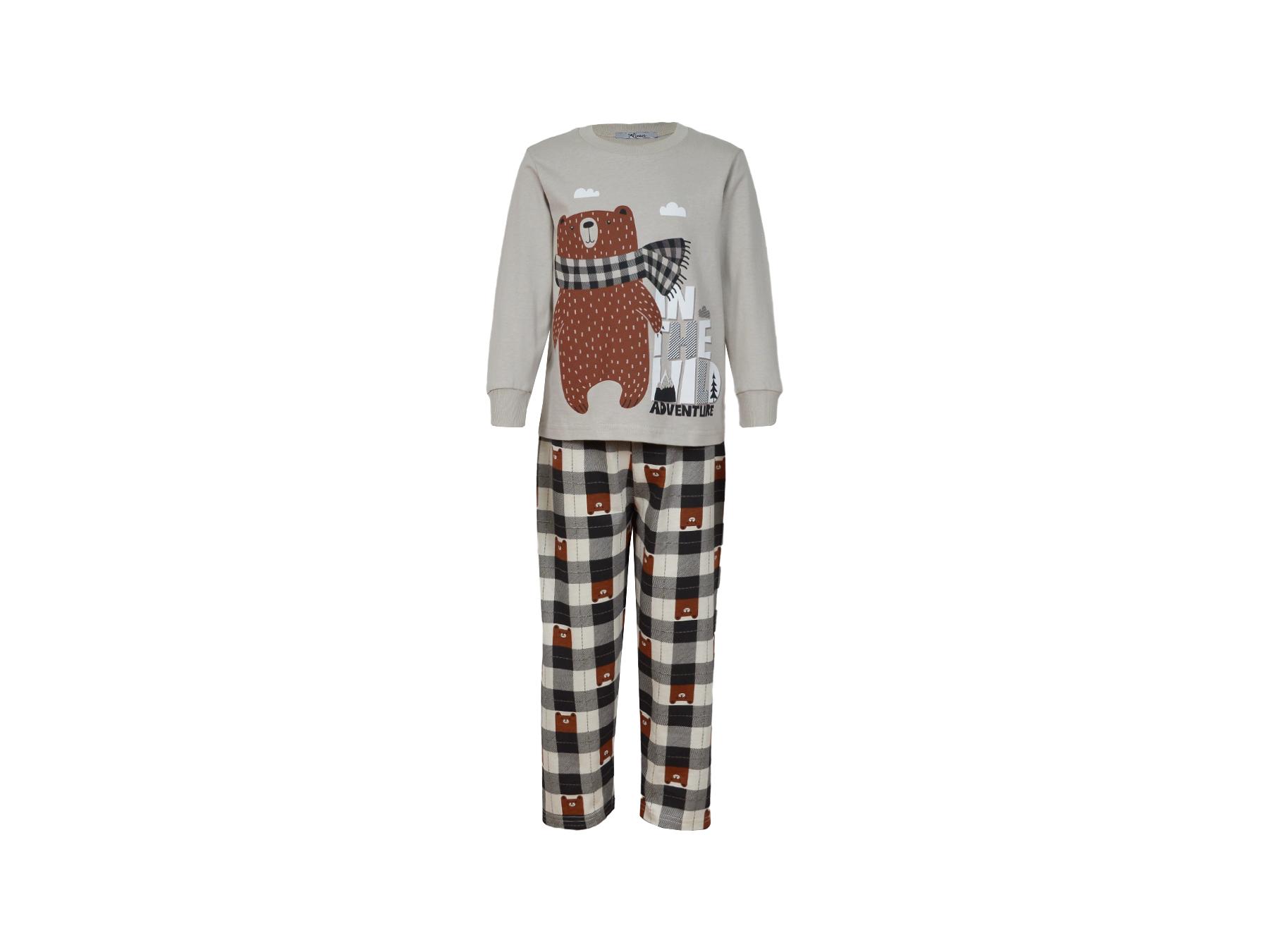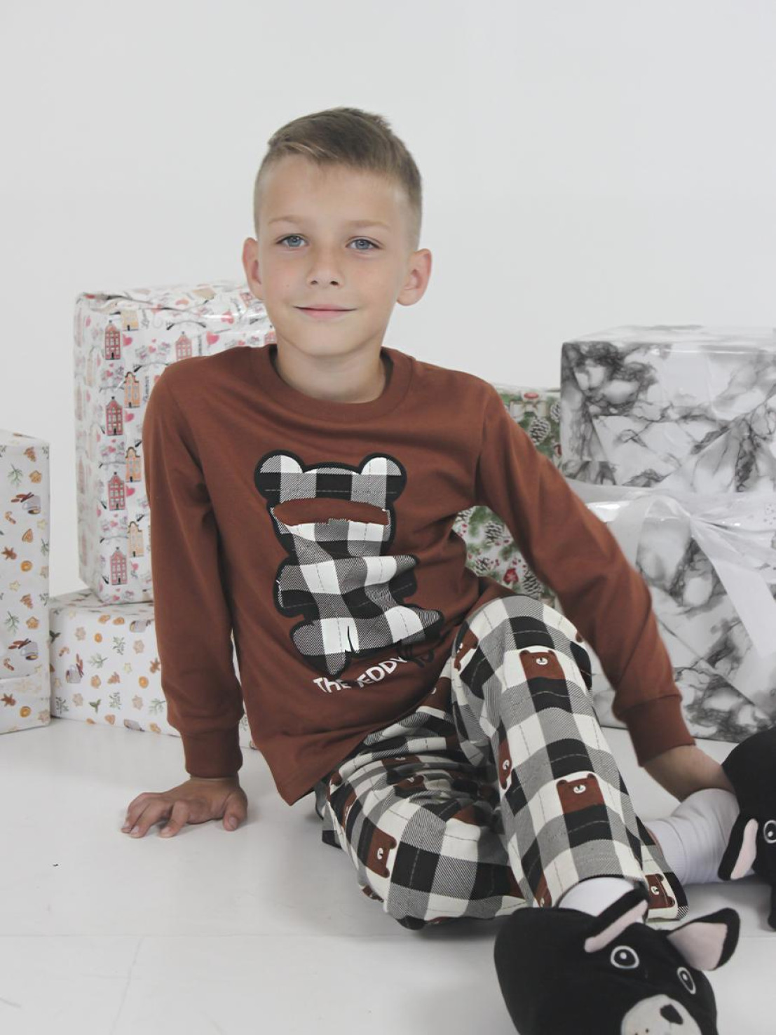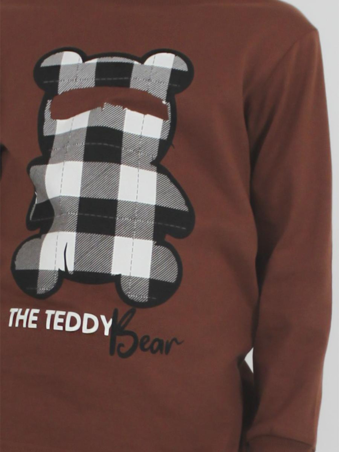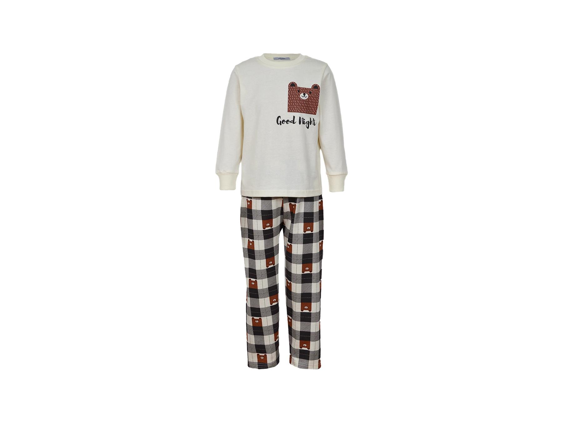 Кулирное полотно:(гладь+набивка):100% х/б. Фуфайка-прямая,рукав втачной,длинный на манжете из ластика.Печать на переде.Горловина обработана ластиком. Брюки-длинные прямые,верхний срез подшит с резинкой.
