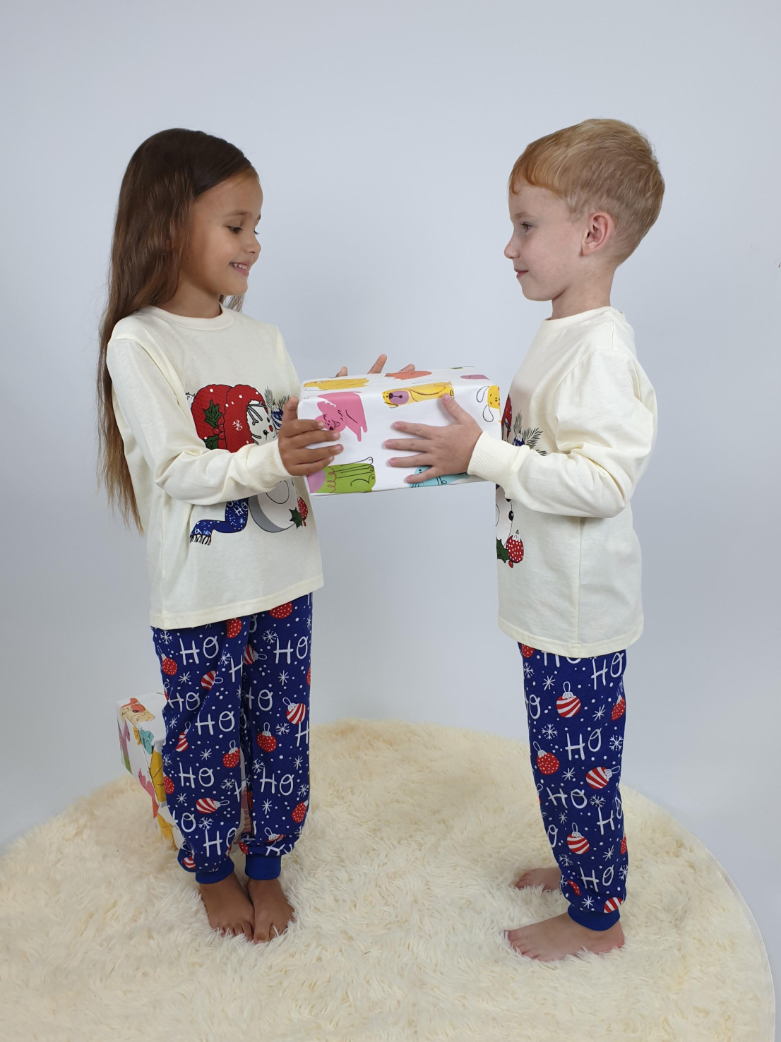 Кулирное полотно:100% х/б. Фуфайка-прямая,рукав втачной,длинный на манжете из ластика.Печать на переде.Горловина обработана ластиком. Брюки-длинные прямые,верхний срез подшит с резинкой.