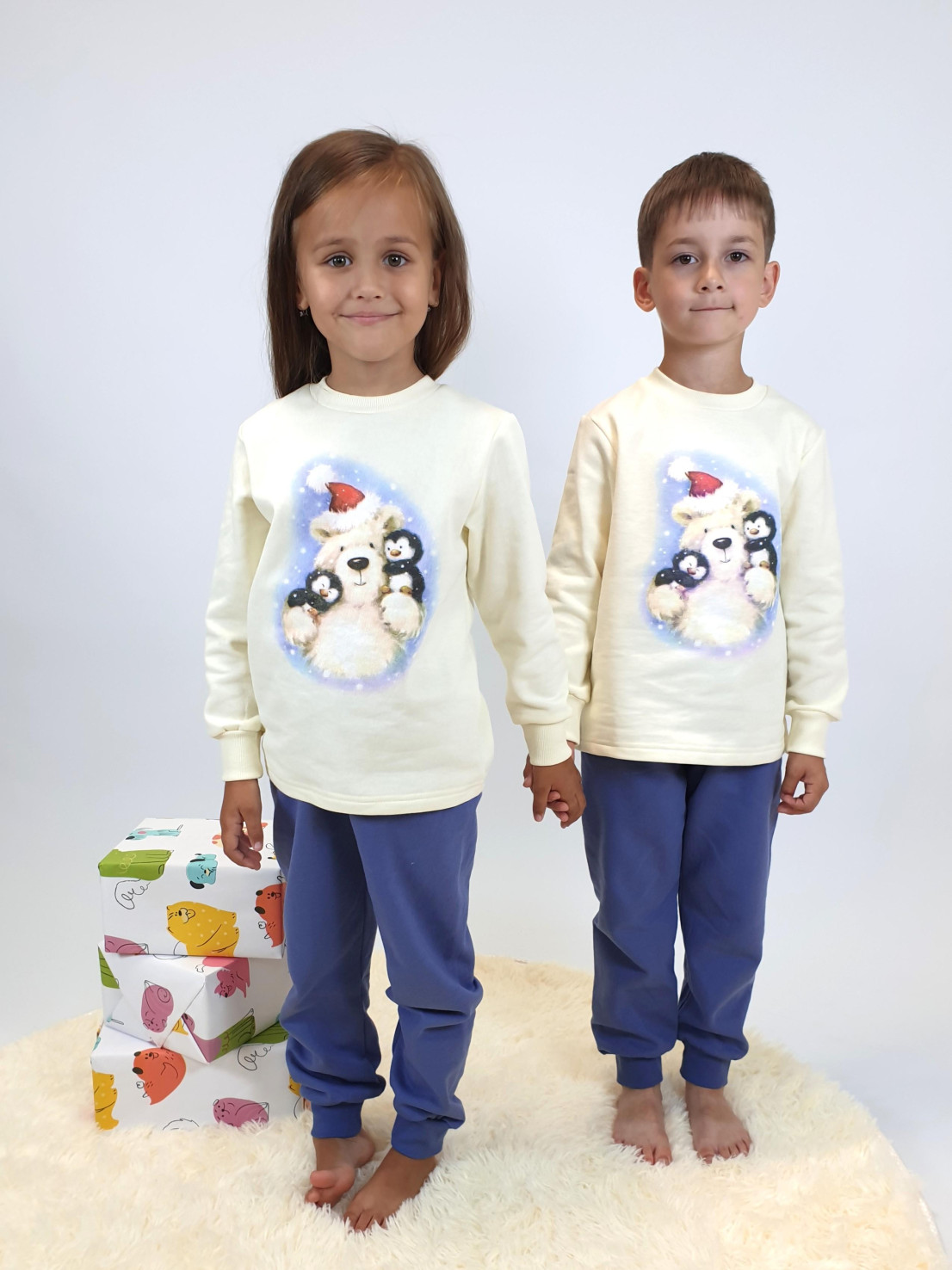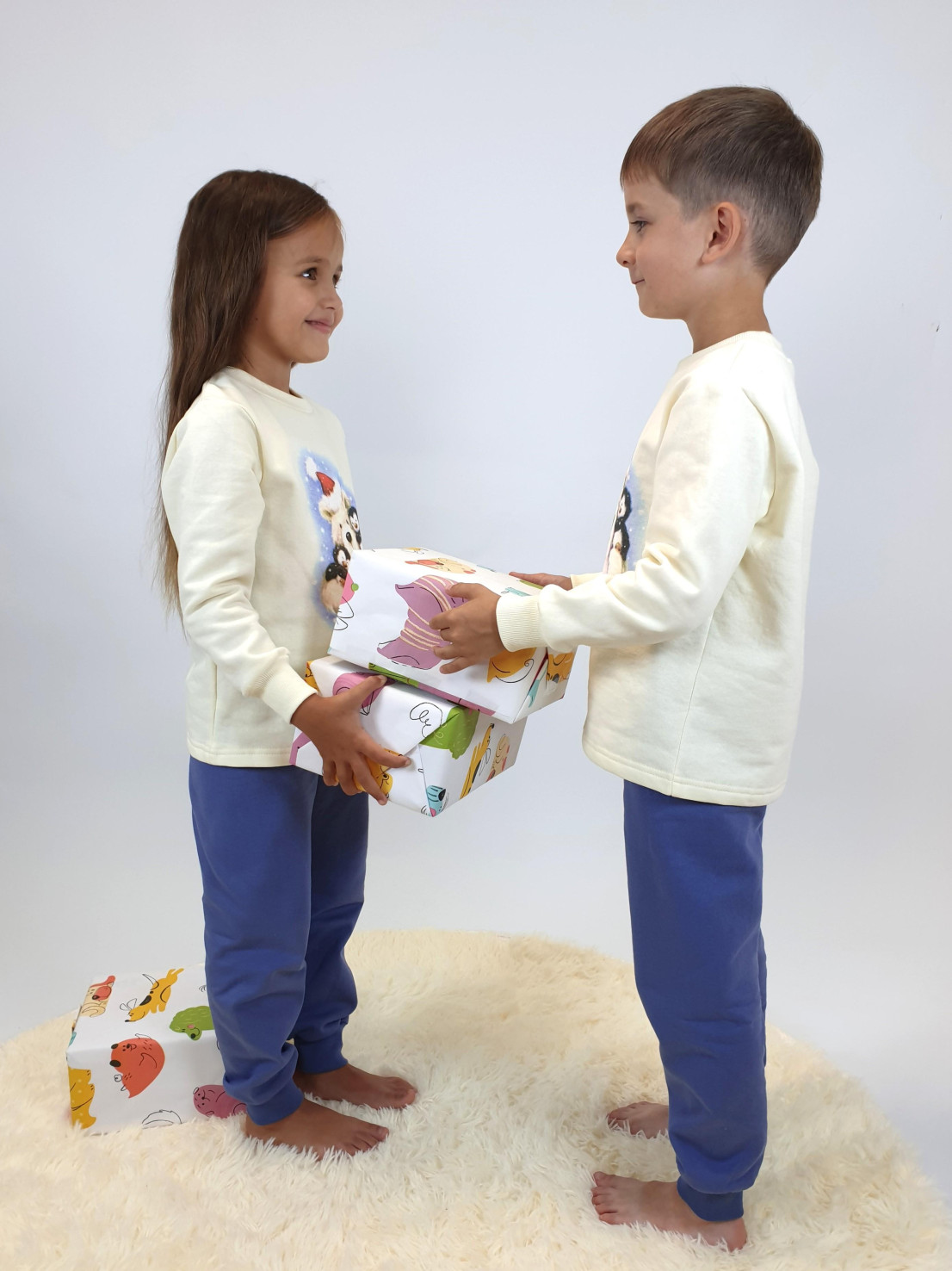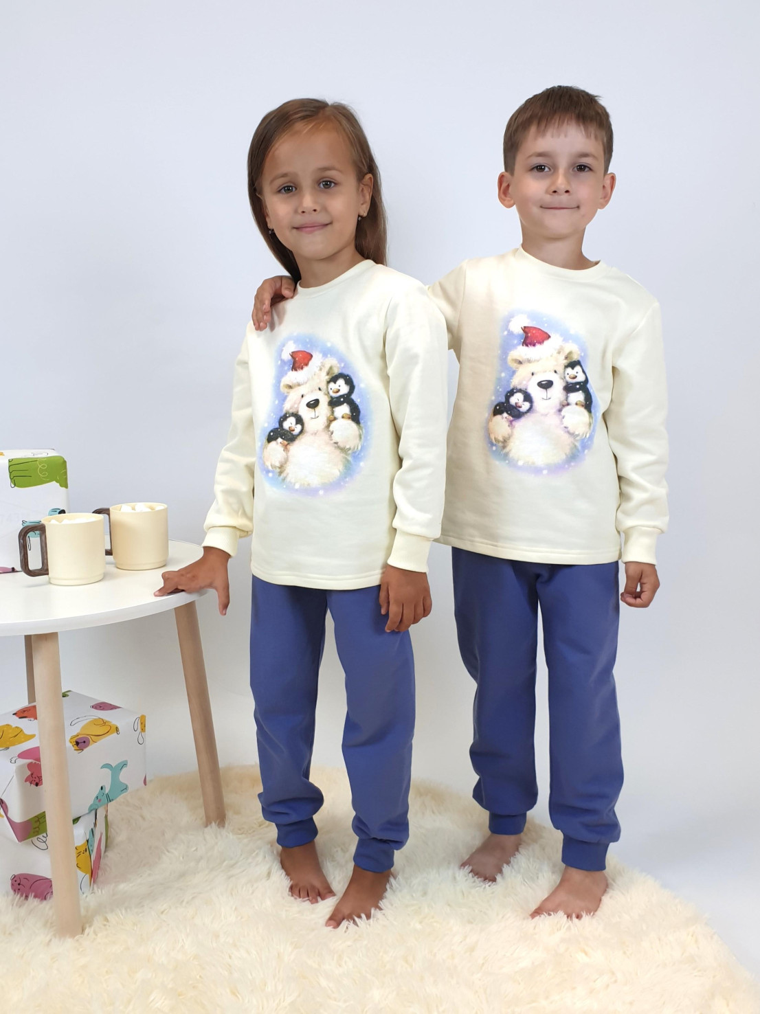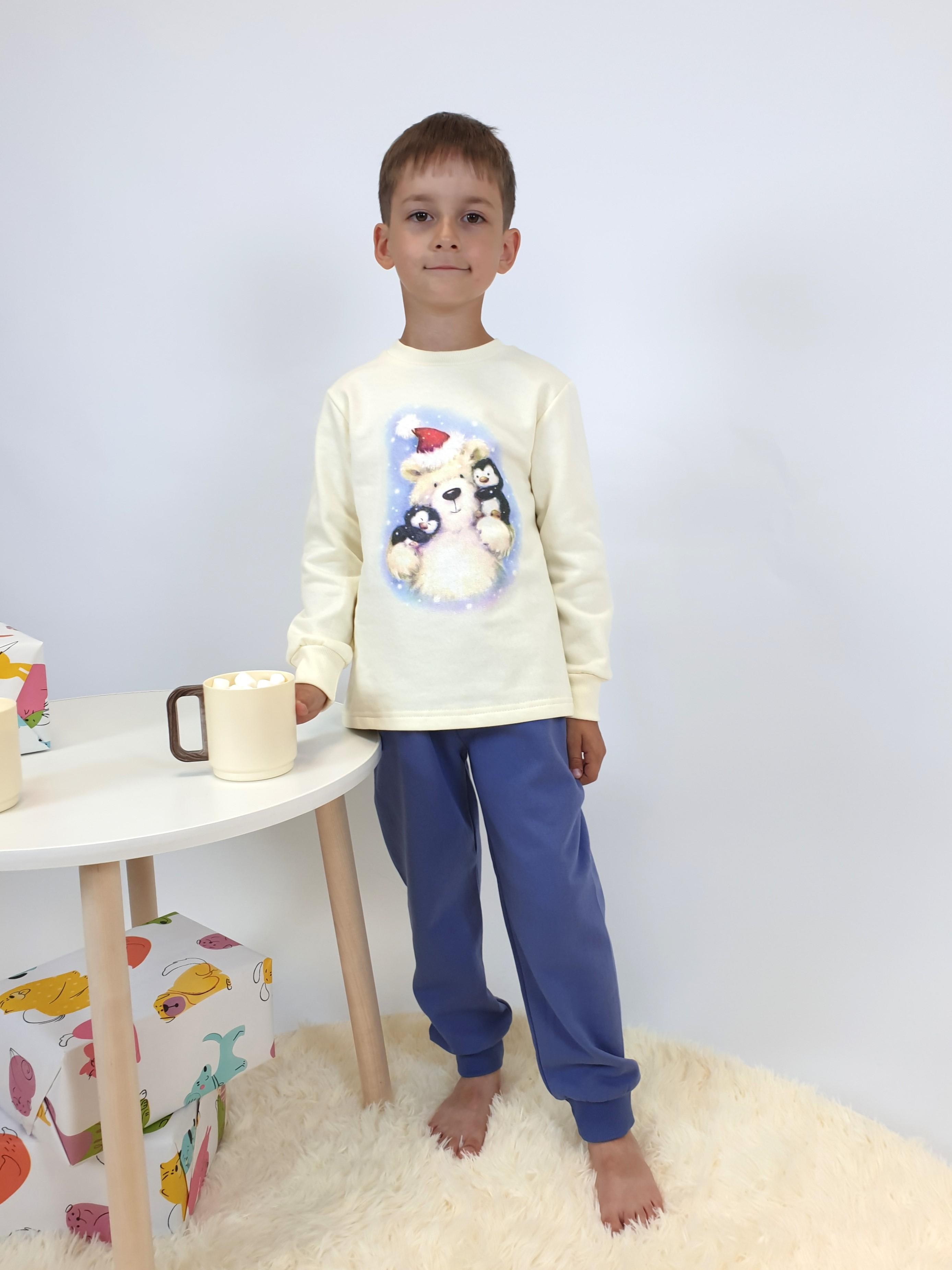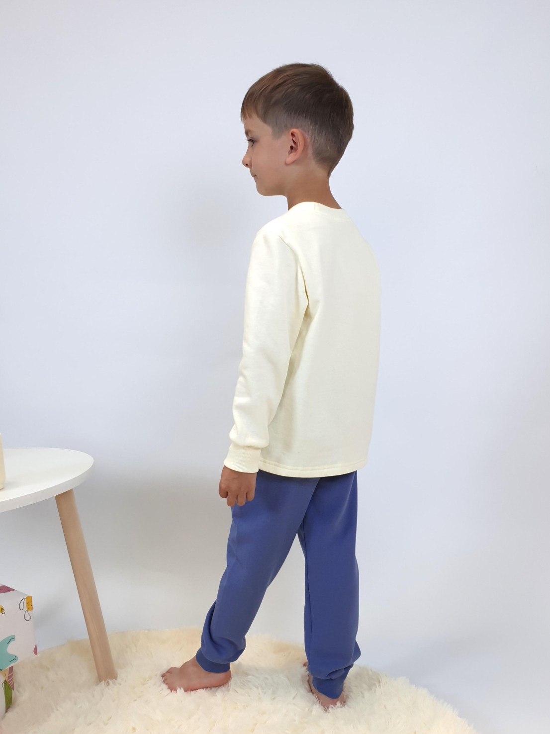 Футер:100%х/б. Фуфайка-прямая,рукав втачной,длинный на манжете из ластика.Горловина обработана ластиком.Печать на переде.Брюки-длинные на манжете из ластика.Верхний срез подшит с резинкой.