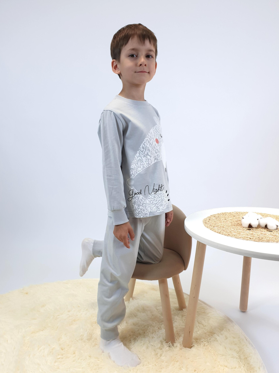 Кулирное полотно:100% х/б. Фуфайка-прямая,рукав втачной,длинный на манжете из ластика.Печать на переде.Горловина обработана ластиком. Брюки-длинные на манжете внизу,верхний срез подшит с резинкой.