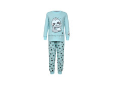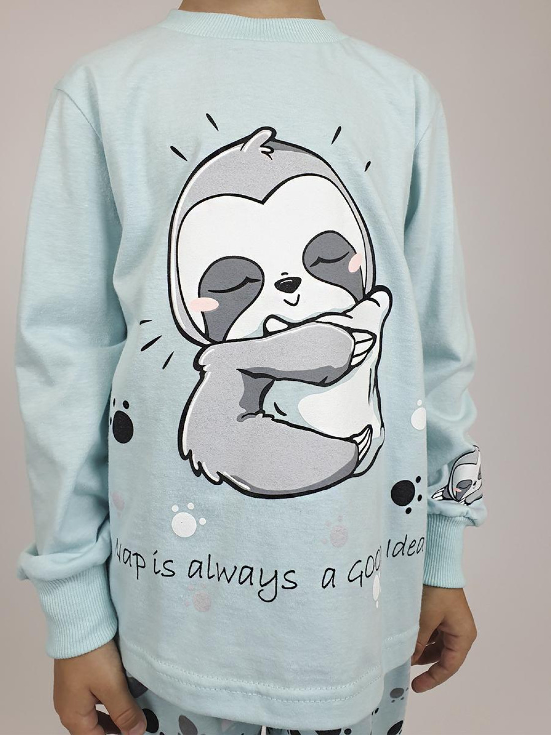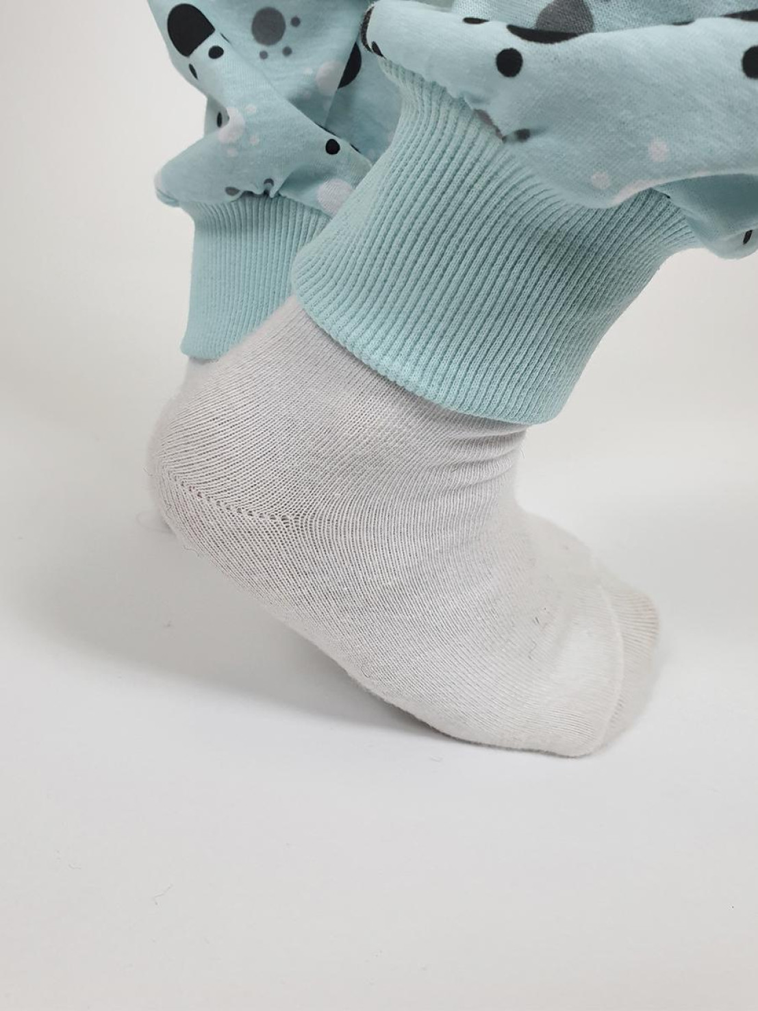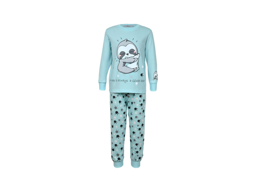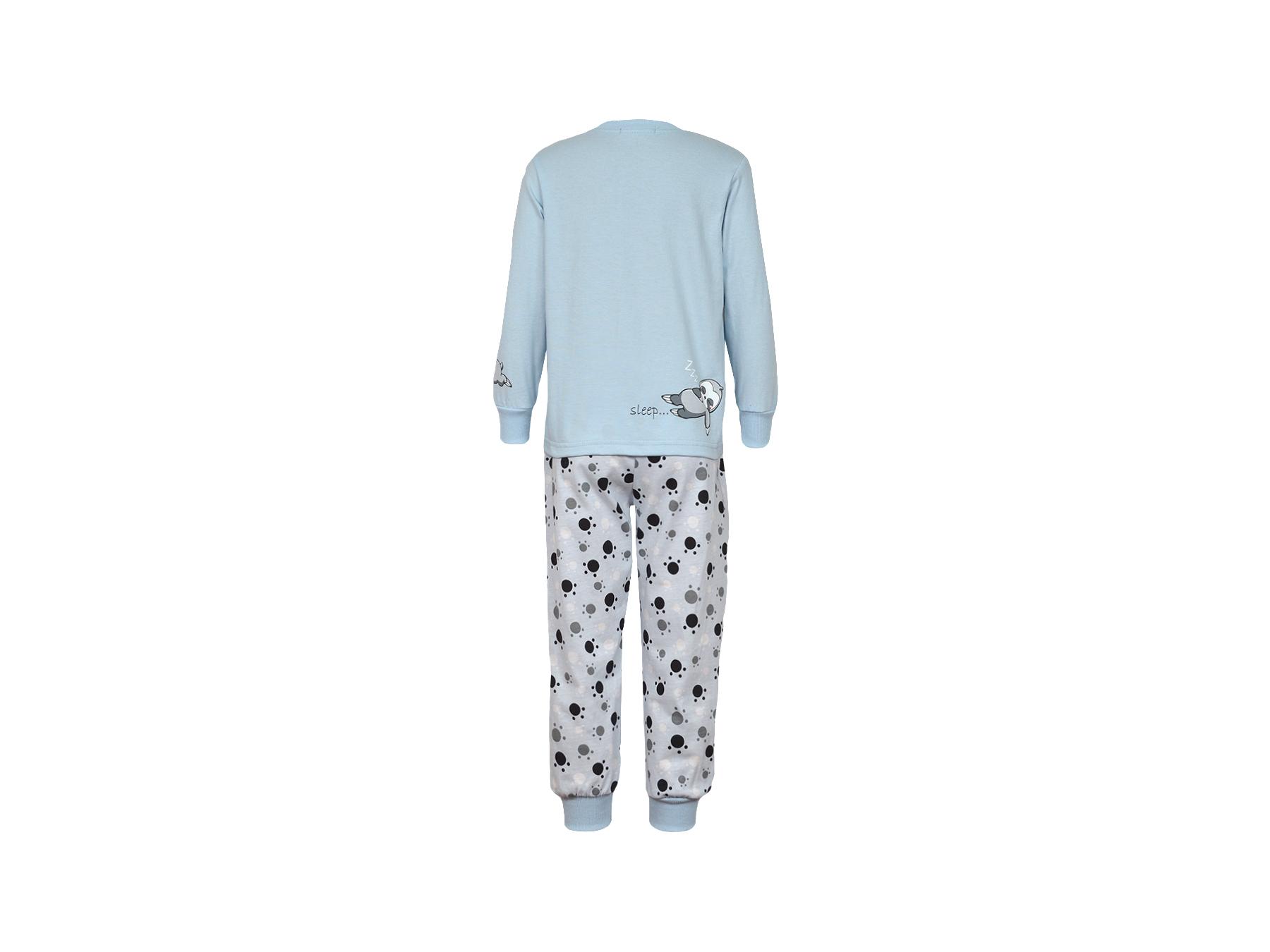 Кулирное полотно:100%х/б. Фуфайка-прямая,рукав втачной,длинный на манжете из ластика.Горловина обработана ластиком.Печать на переде,спинке и левом рукаве внизу. Брюки-длинные на манжете из ластика.Верхний срез подшит с резинкой.