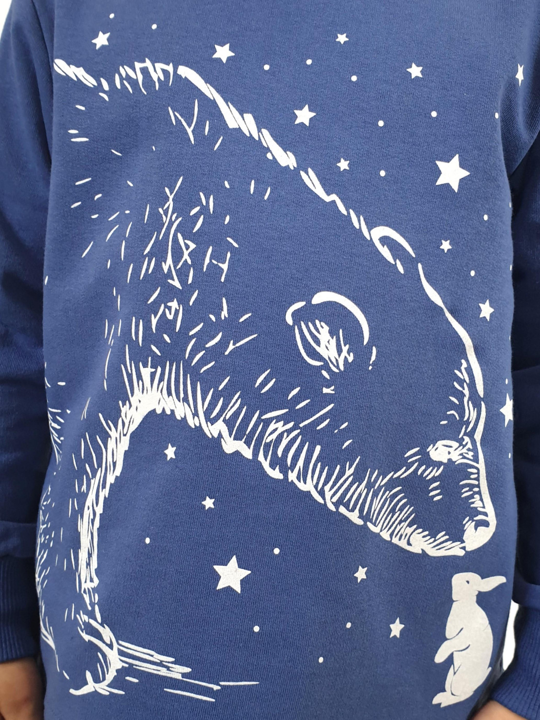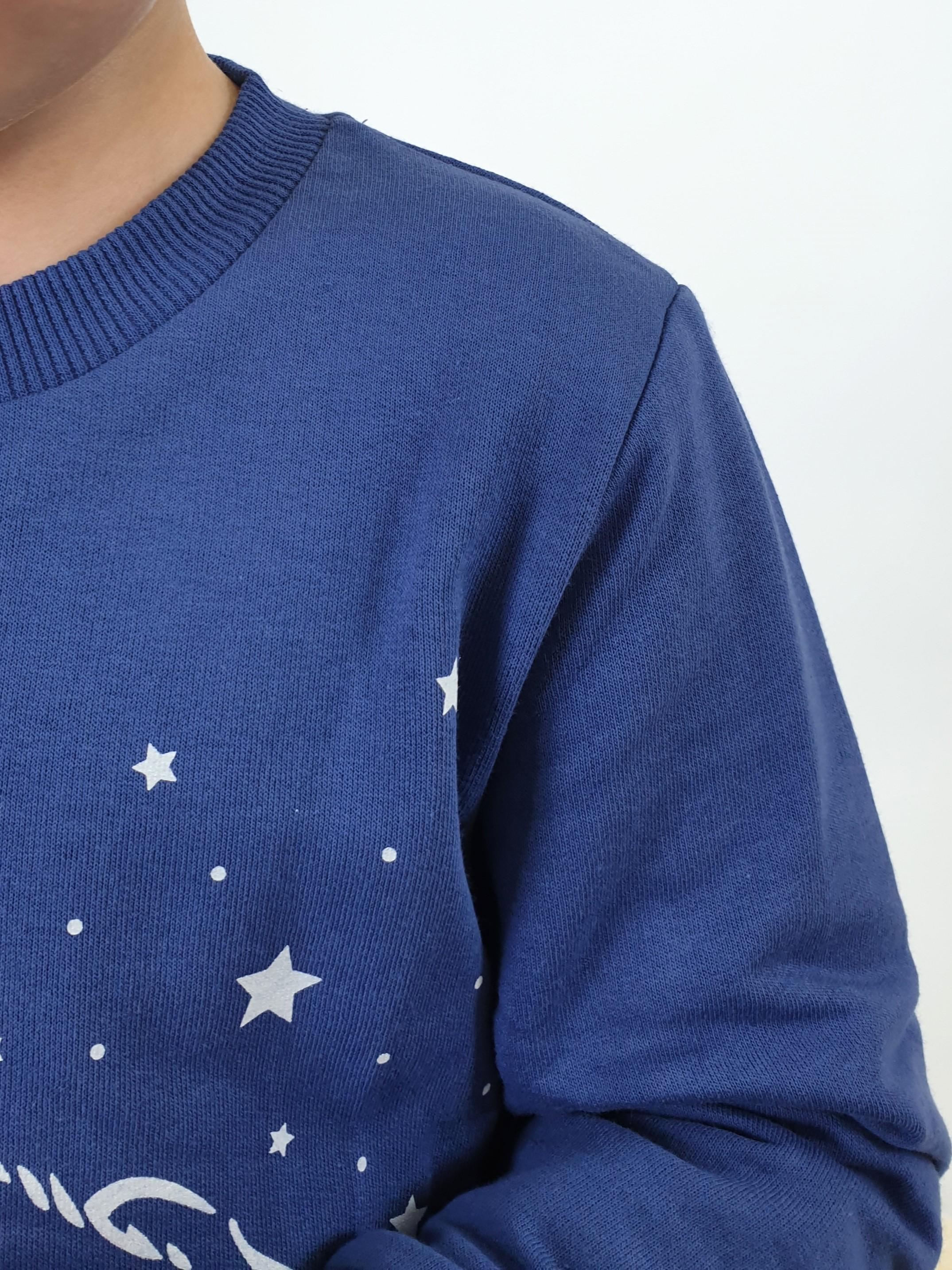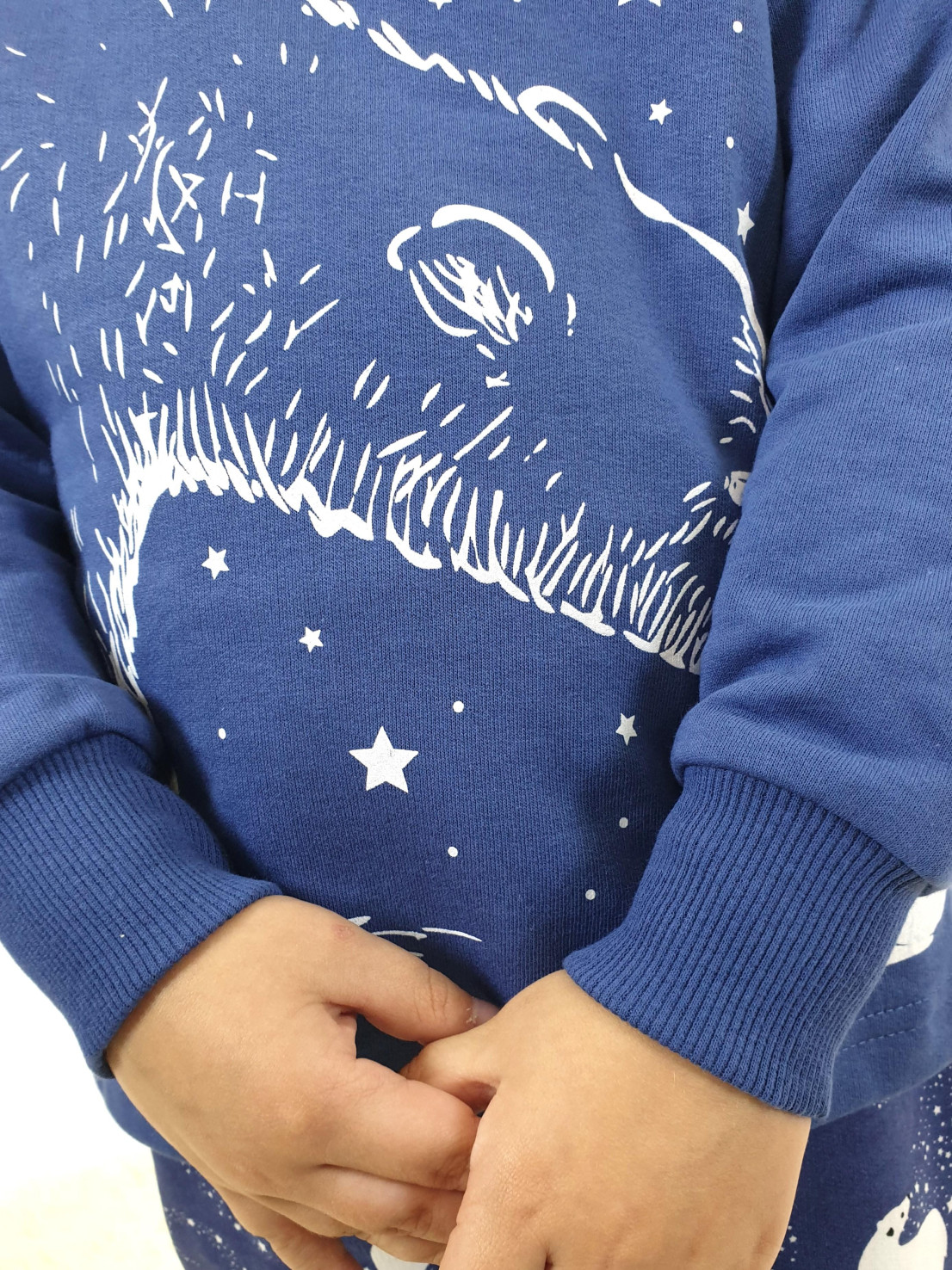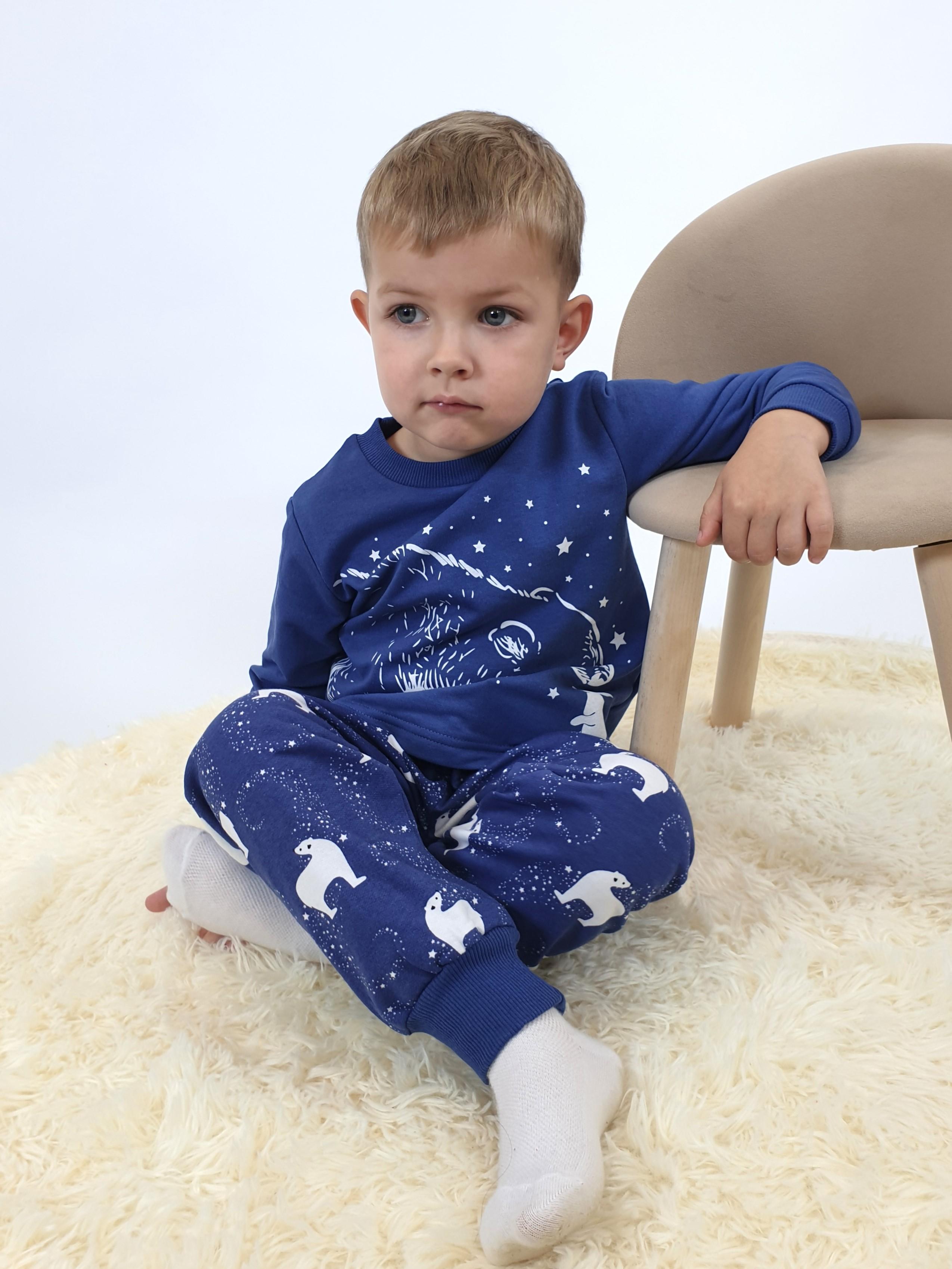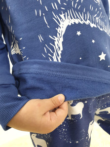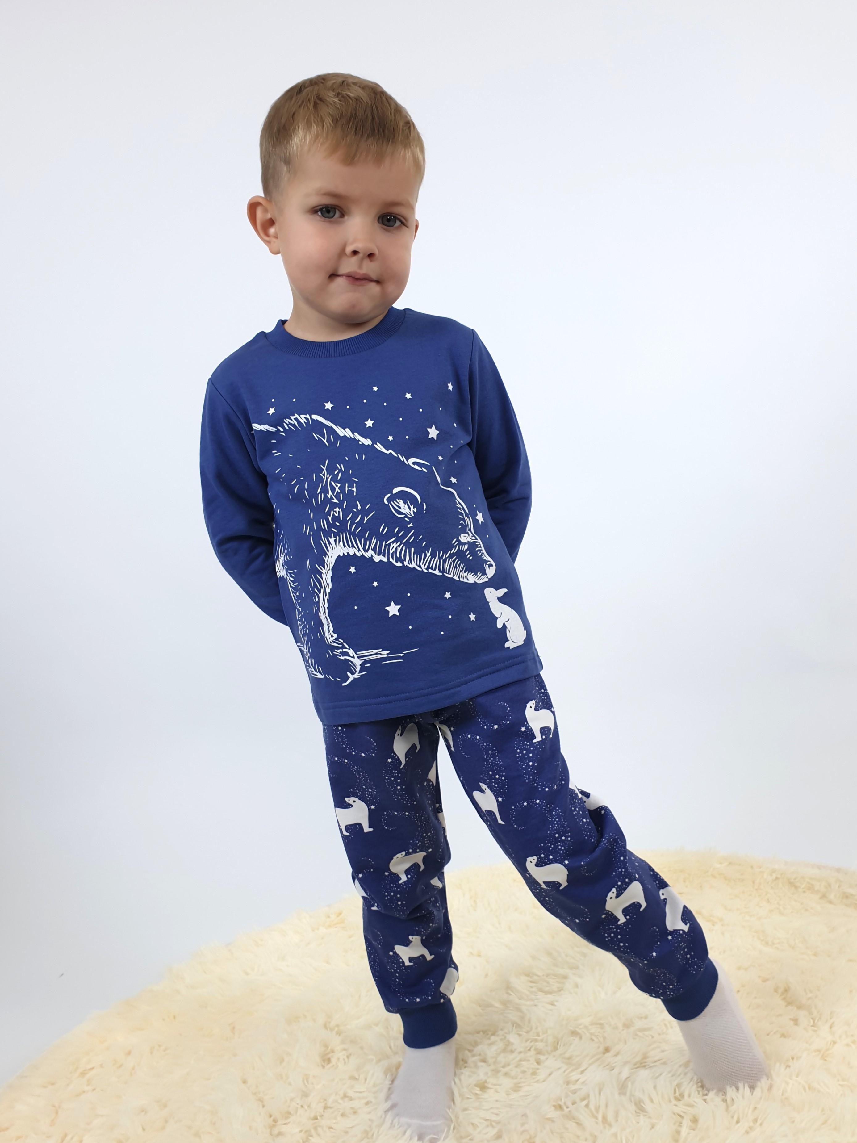 Пижама. Футер:100% х/б. Фуфайка-прямая.Рукав втачной,длинный на манжете из ластика.Горловина обработана ластиком.Печать на переде. Брюки -длинные на манжете из ластика.Верхний срез подшит с резинкой.